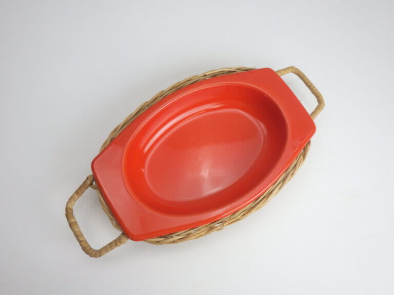 | アメリカで買い付けました。 ビンテージのエナメル製グラタン皿です。 ラタンのトレイ付きなので、オーブン調理後トレイに乗せてそのまま食卓へ出すことが出来ます。 また、ちょっとした料理を乗せて盛り付け皿としても活躍してくれそう。 キャンプで料理を楽しみたい方にもおすすめのアイテムです。 |