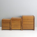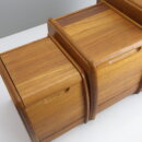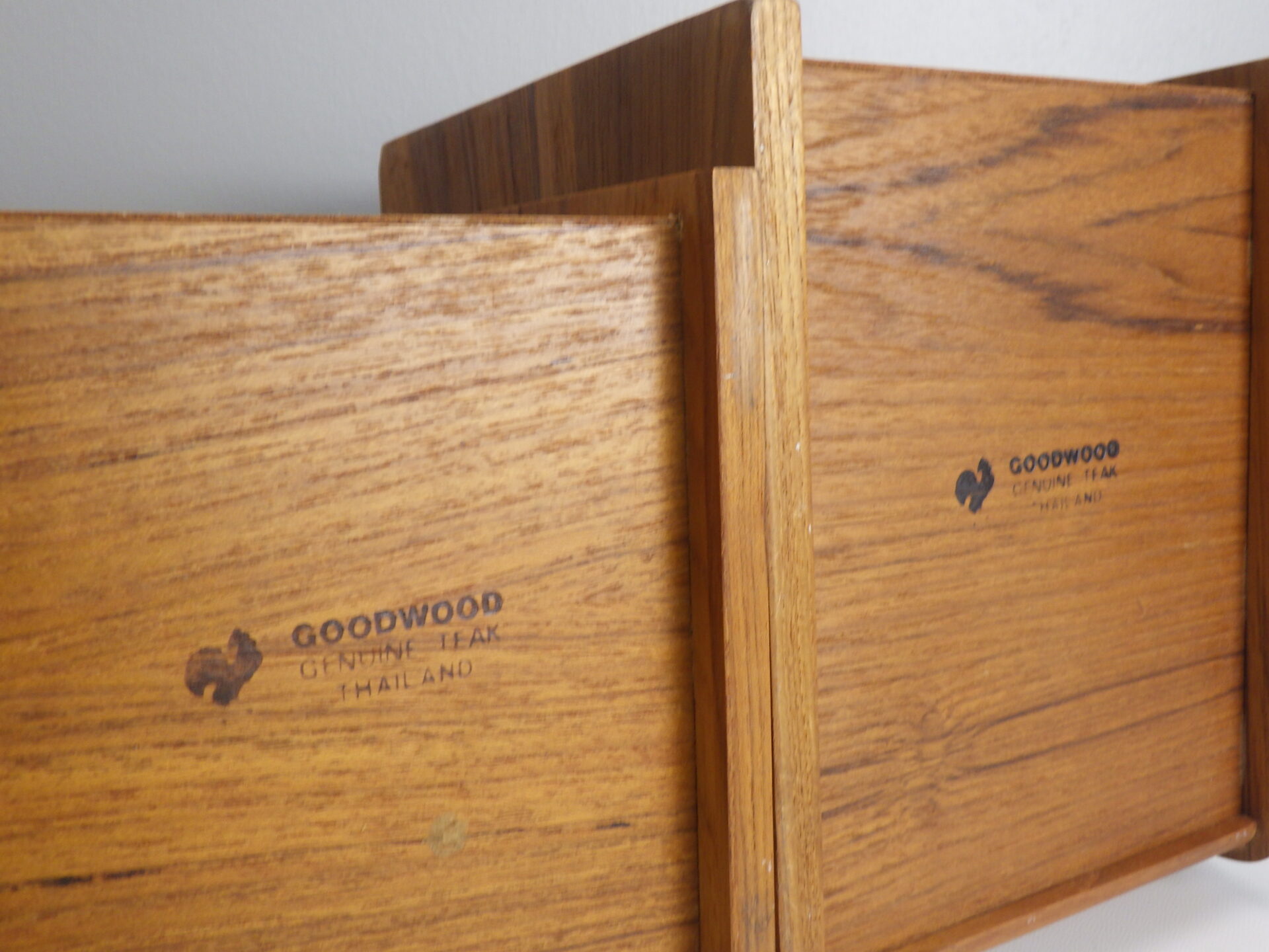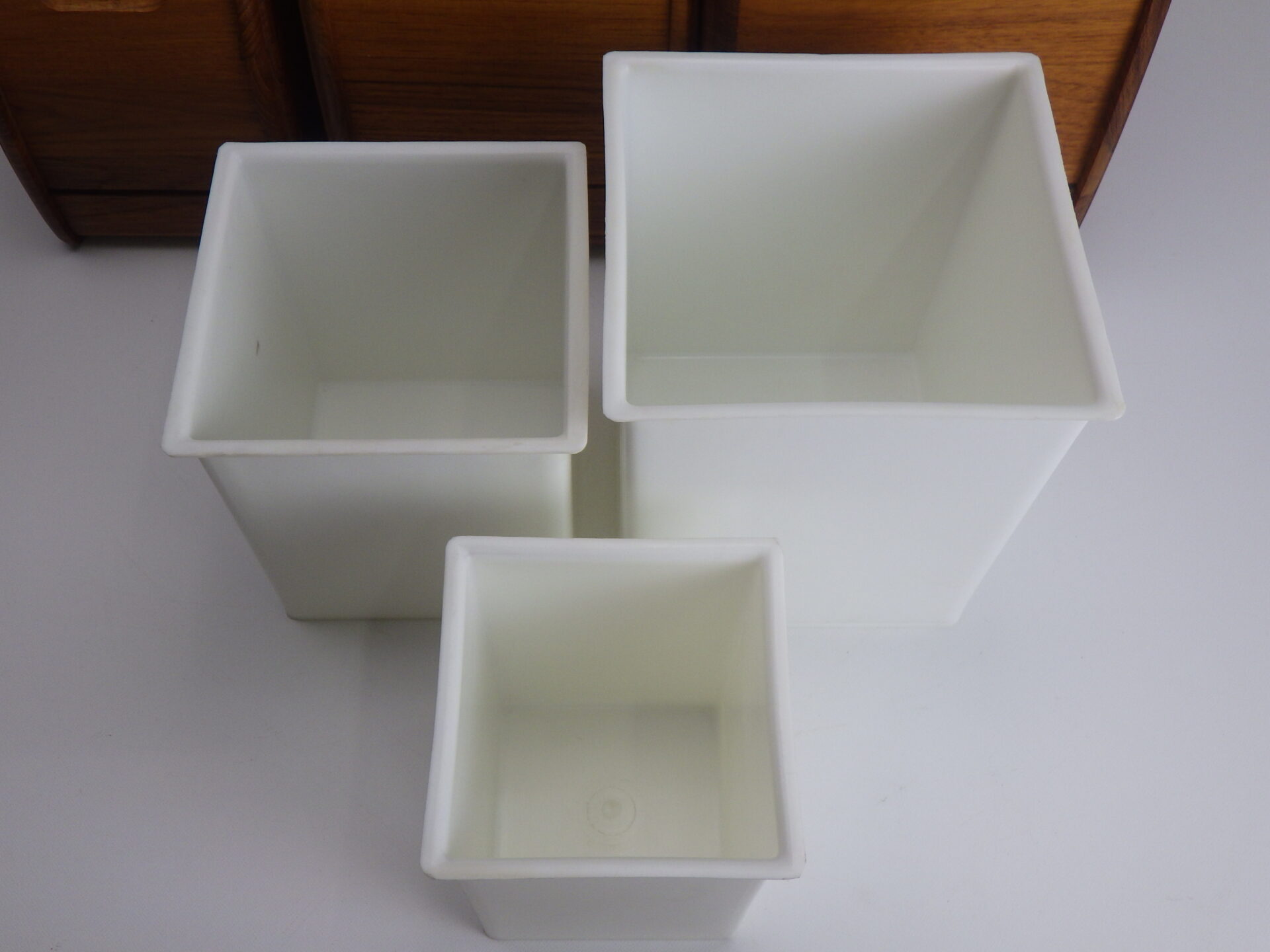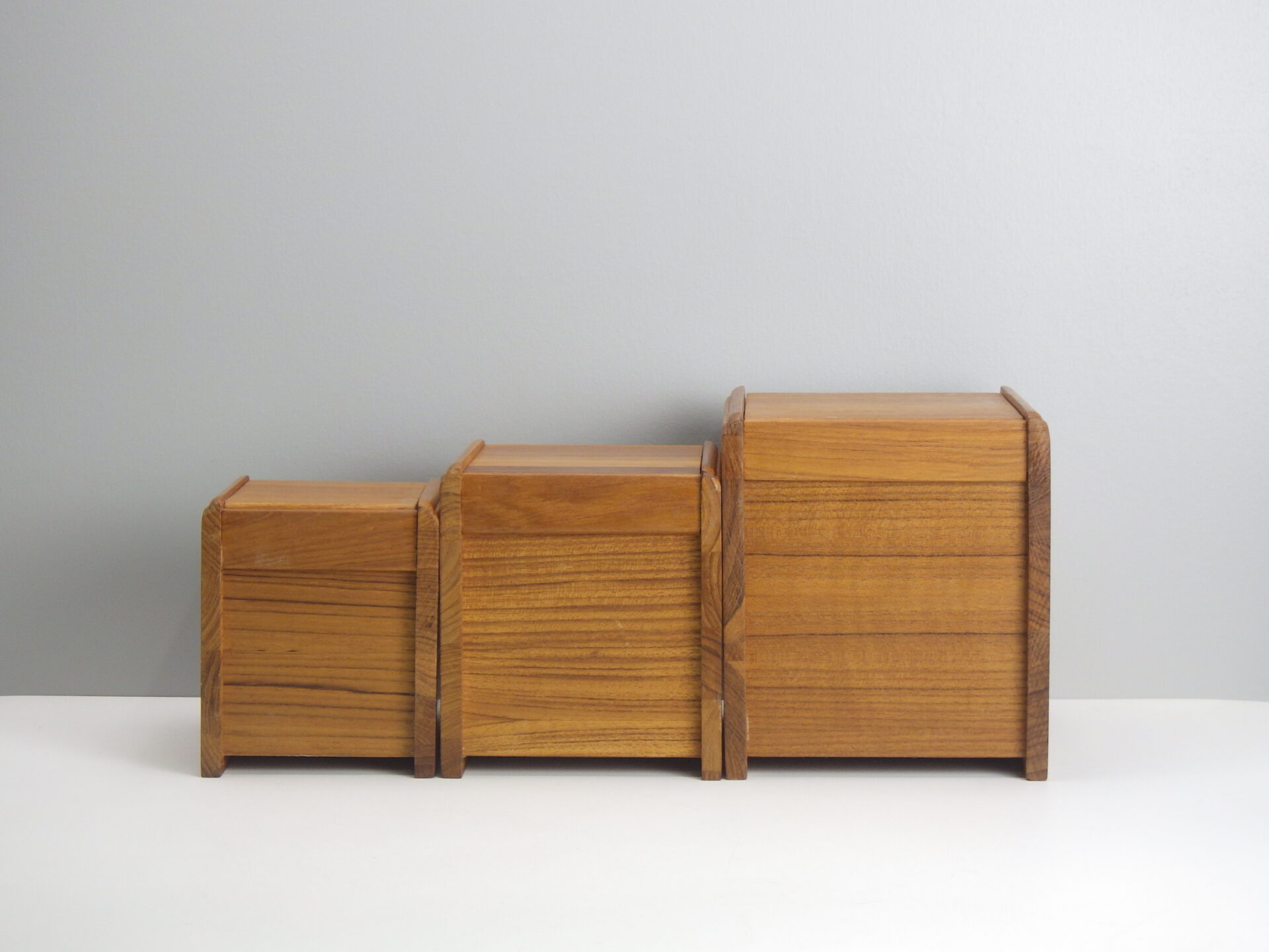 | アメリカで買い付けました、木製のキャニスター3点セットです。 チーク材ならではの温かで上質な雰囲気が、キッチンを彩ってくれること間違いなしですね。 キッチン以外の場所でも物入として、オブジェとしても活躍してくれそうな佇まいです。 内部はプラスチック製で取り外し可能です。洗えるので清潔面でも安心ですね。 |