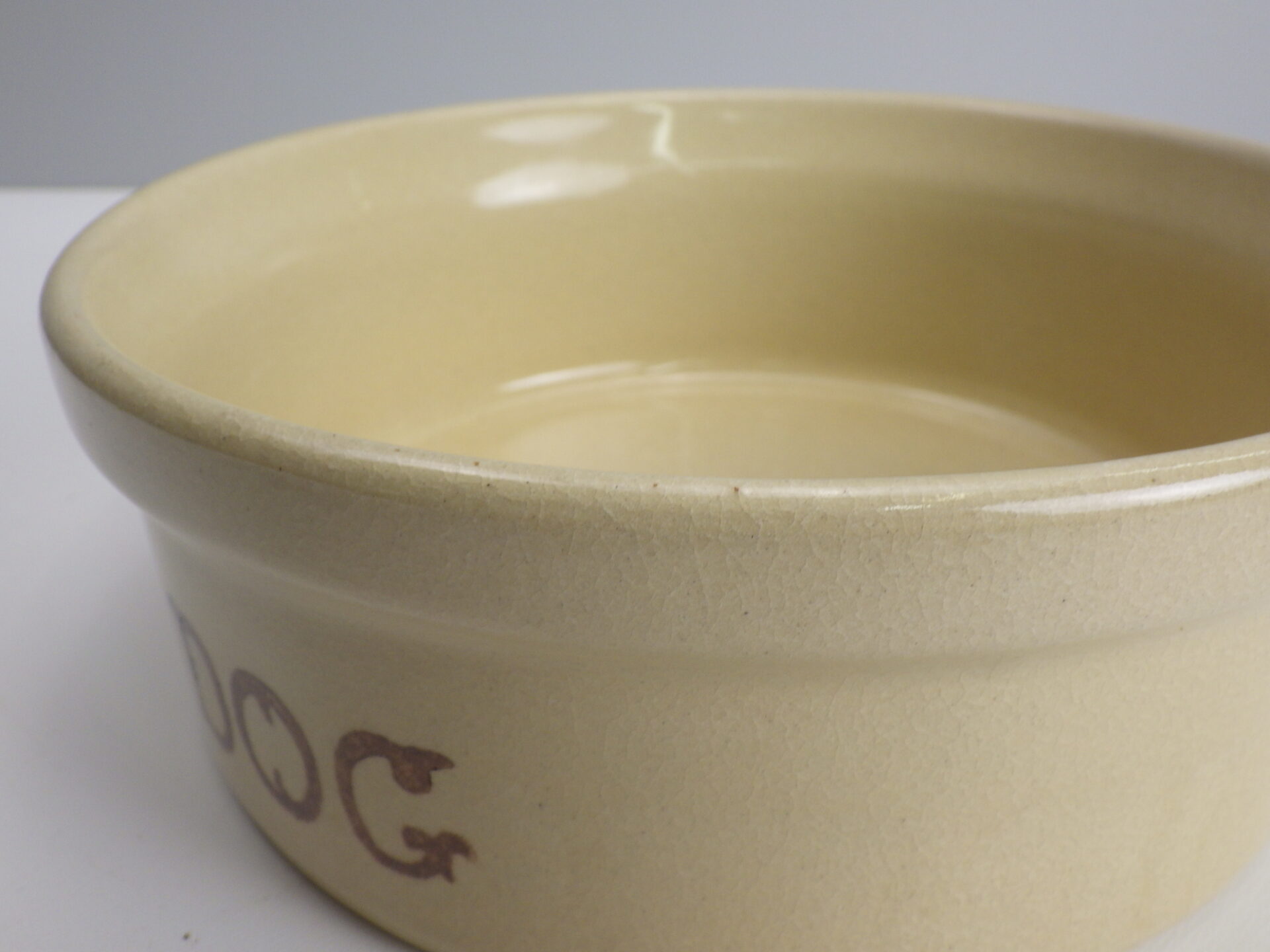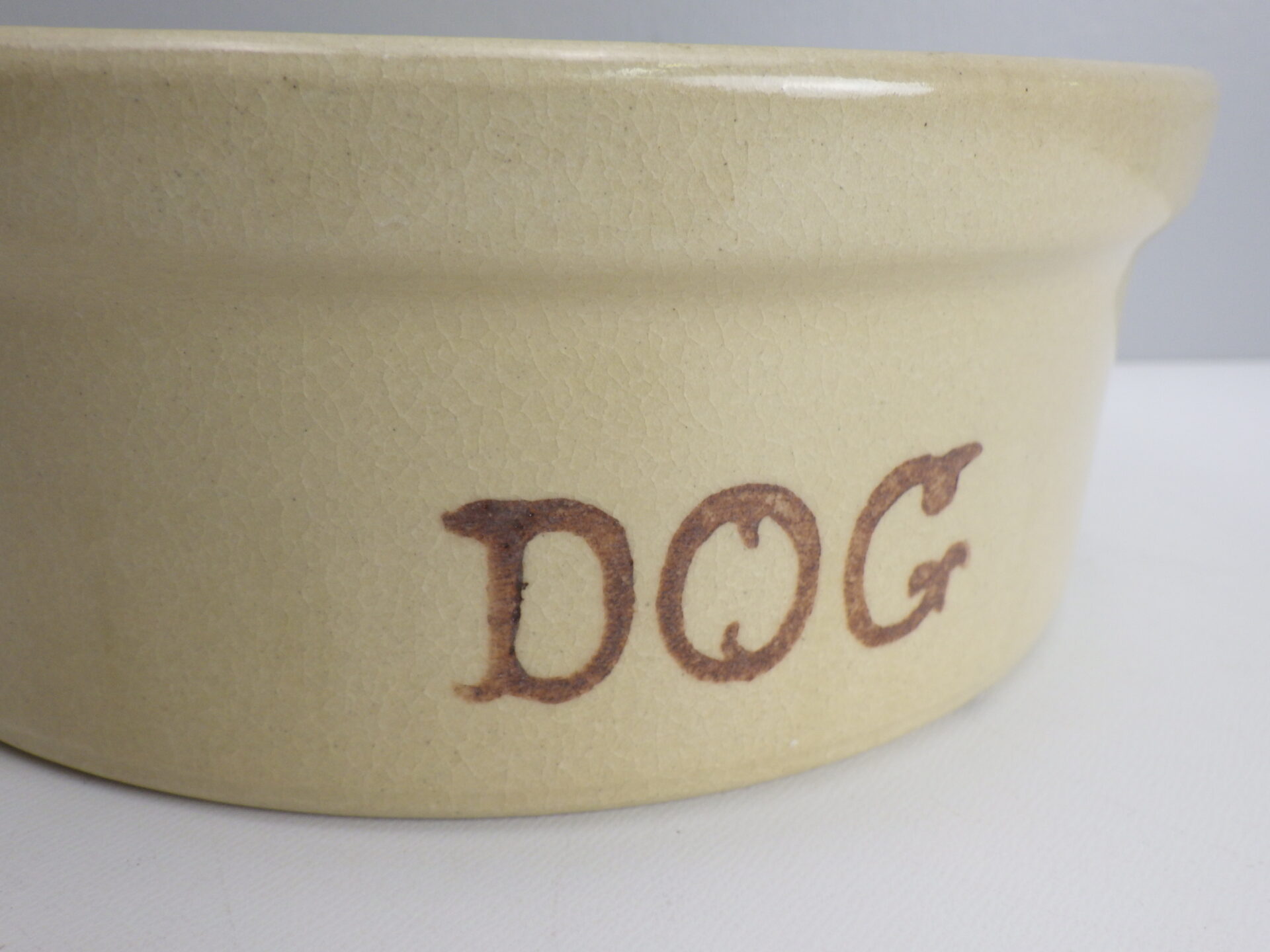 | オハイオ州ローズビルの「R.R.P.Co」のフードボウルです。 表面のDOGの文字が可愛らしいですね。 大型犬向きの大振りサイズです。 重さもしっかりあるので安心してご使用いただけると思います。 |