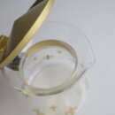 | パイレックス製のビバレッジサーバー(ワンカップ用ティーポット)です。 パイレックスブランドが誕生した当初はこのようなクリアガラス製品のみの展開でした。 ゴールドの絵柄入りで側面には「PYREX」のロゴもプリントされています。 日常のちょっとしたティータイムにいかがですか? |