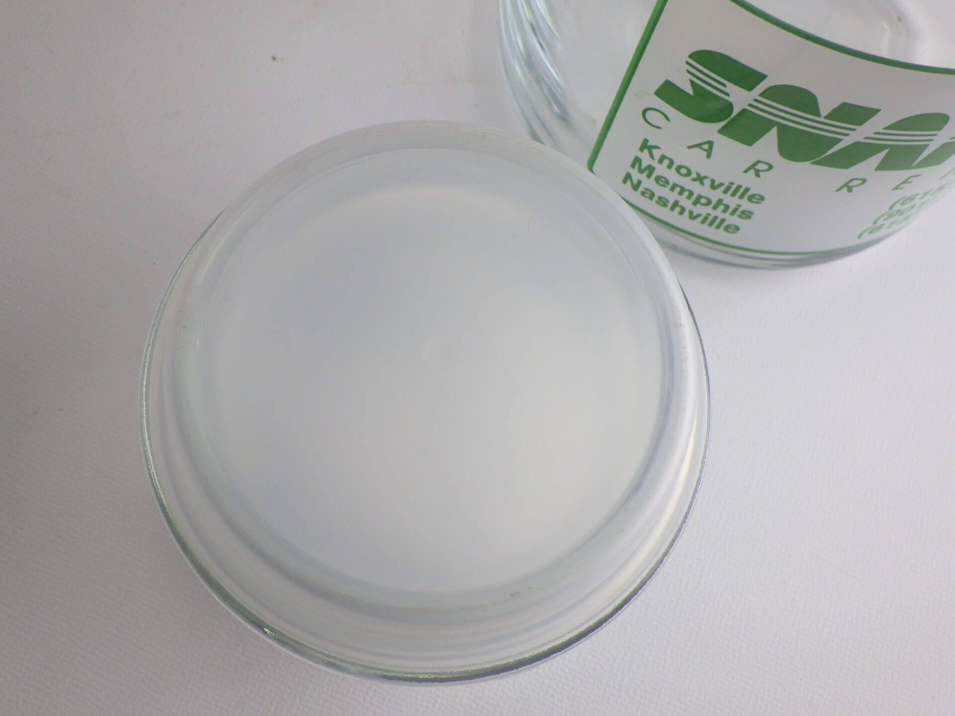 | ノックスビル、メンフィス、ナッシュビルにそれぞれ店舗を持ったカーレンタル会社のプロモーション用キャンディジャーのようです。 蓋もしっかり閉まるので、コーヒー豆などの保存容器としてもおすすめです。 |