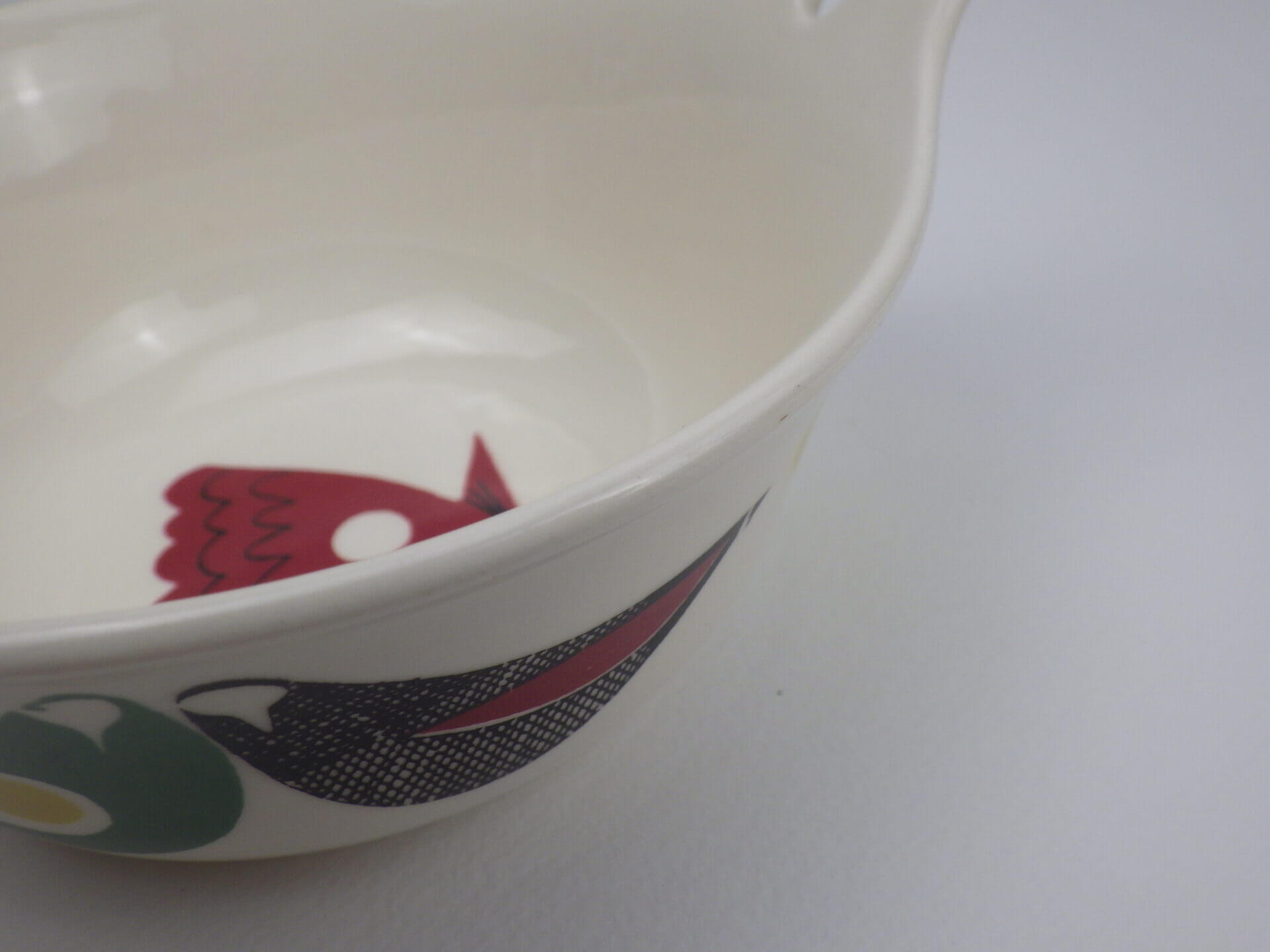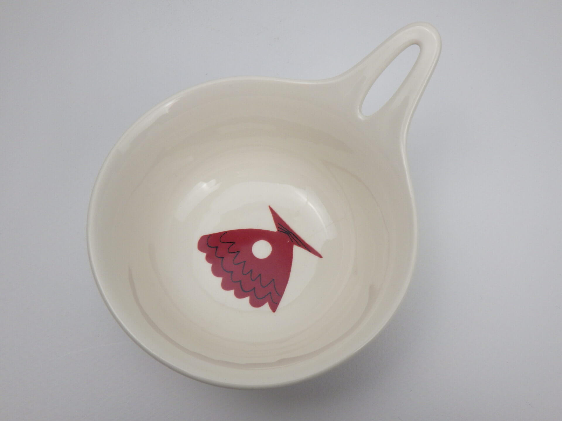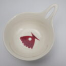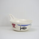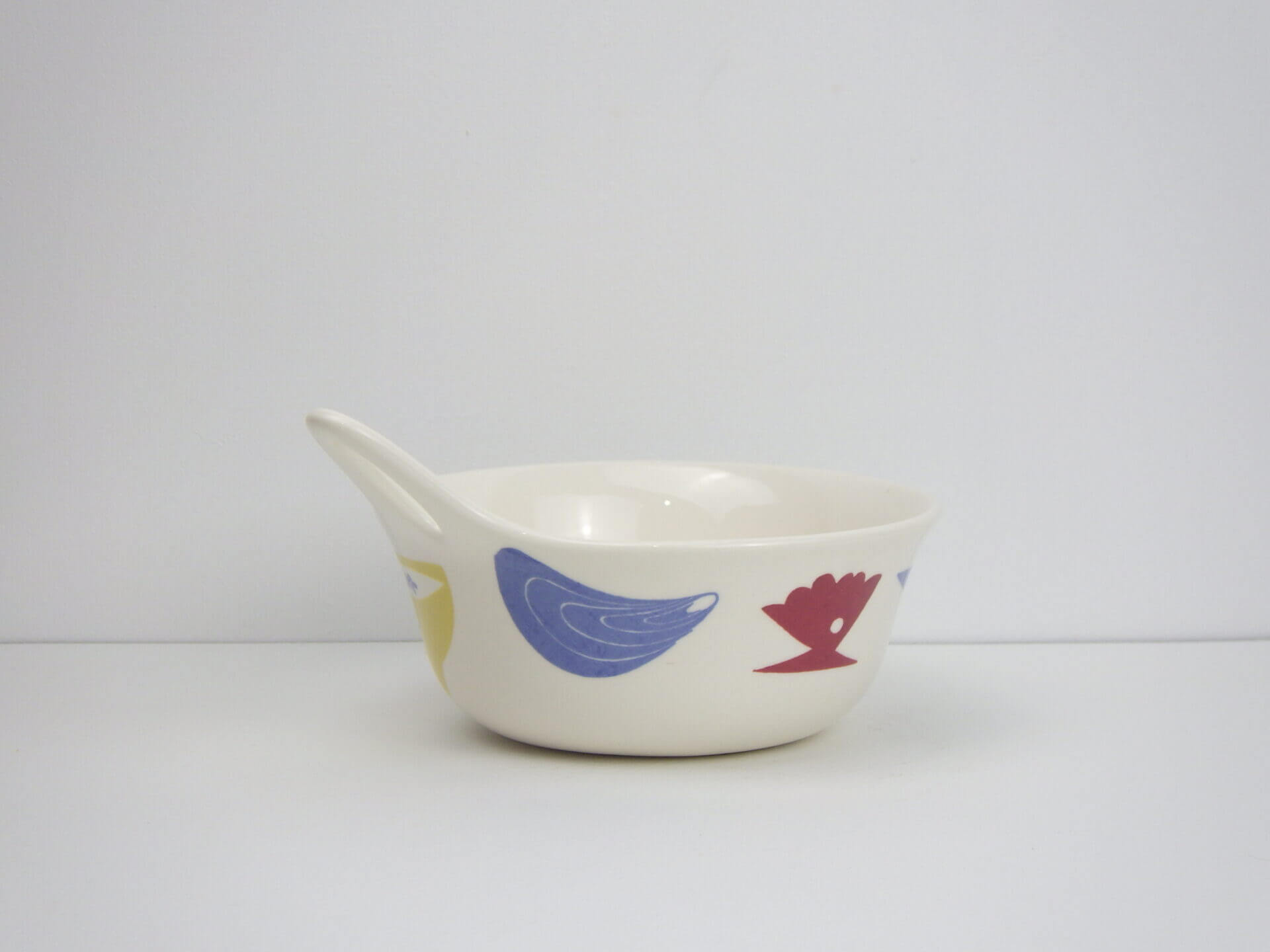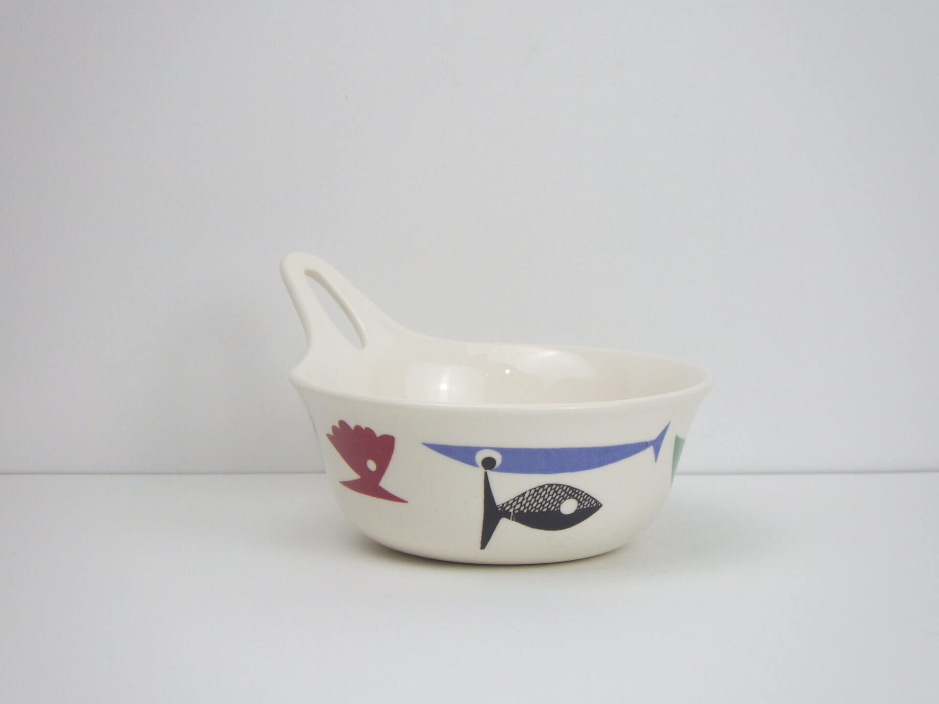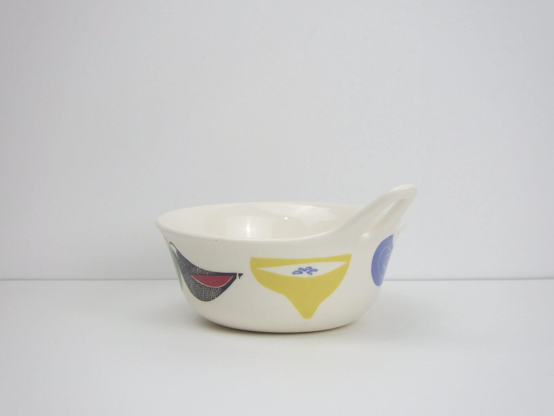 | ヨーロッパで買い付けました。 フィッギオのハンドル付きボウルです。 こちらはHermann Bongardデザイン。 側面にぐるりと一周様々な食材がプリントされていて、どの面から見ても可愛らしいアイテムです。 サラダや鍋物の取り皿として活躍してくれそうな使いやすいサイズ感です。 |