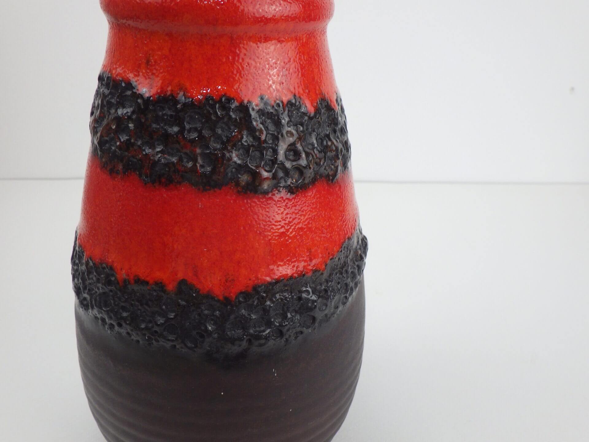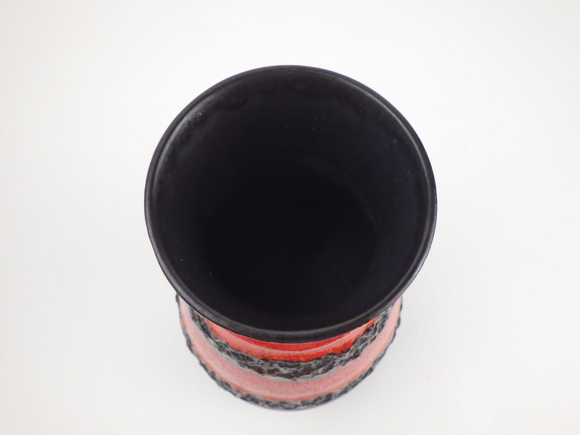 | 1950年~70年代に主に旧西ドイツで作られた「Fat Lava」と呼ばれるビンテージ花器です。 Fat Lavaは肥えた溶岩を意味し、流れ出る溶岩のような表情、色合い、ゴツゴツとした溶岩石のようなテクスチャーのものが多く存在します。 この時代のドイツ製陶器の多くは、職人による手作業で製作されていた為、全く同じものが他に存在しないところも魅力の一つかもしれません。 近年では日本でもコレクターズアイテムとして注目されています。 ミッドセンチュリー家具とも相性抜群ですね。 こちらは赤ベースに黒くゴツゴツしたテクスチャーがいかにも溶岩らしい、力強い一品ですね。 |