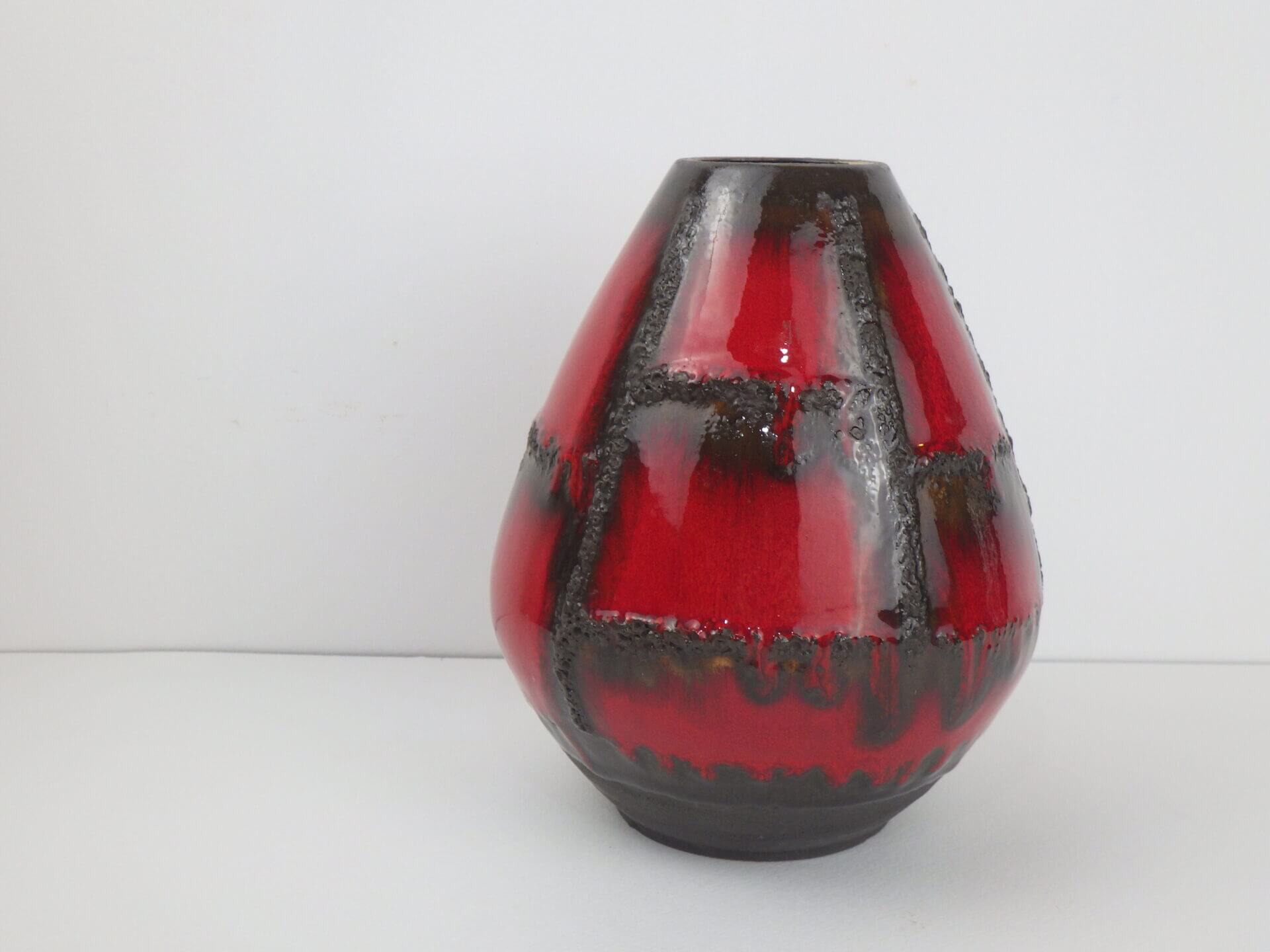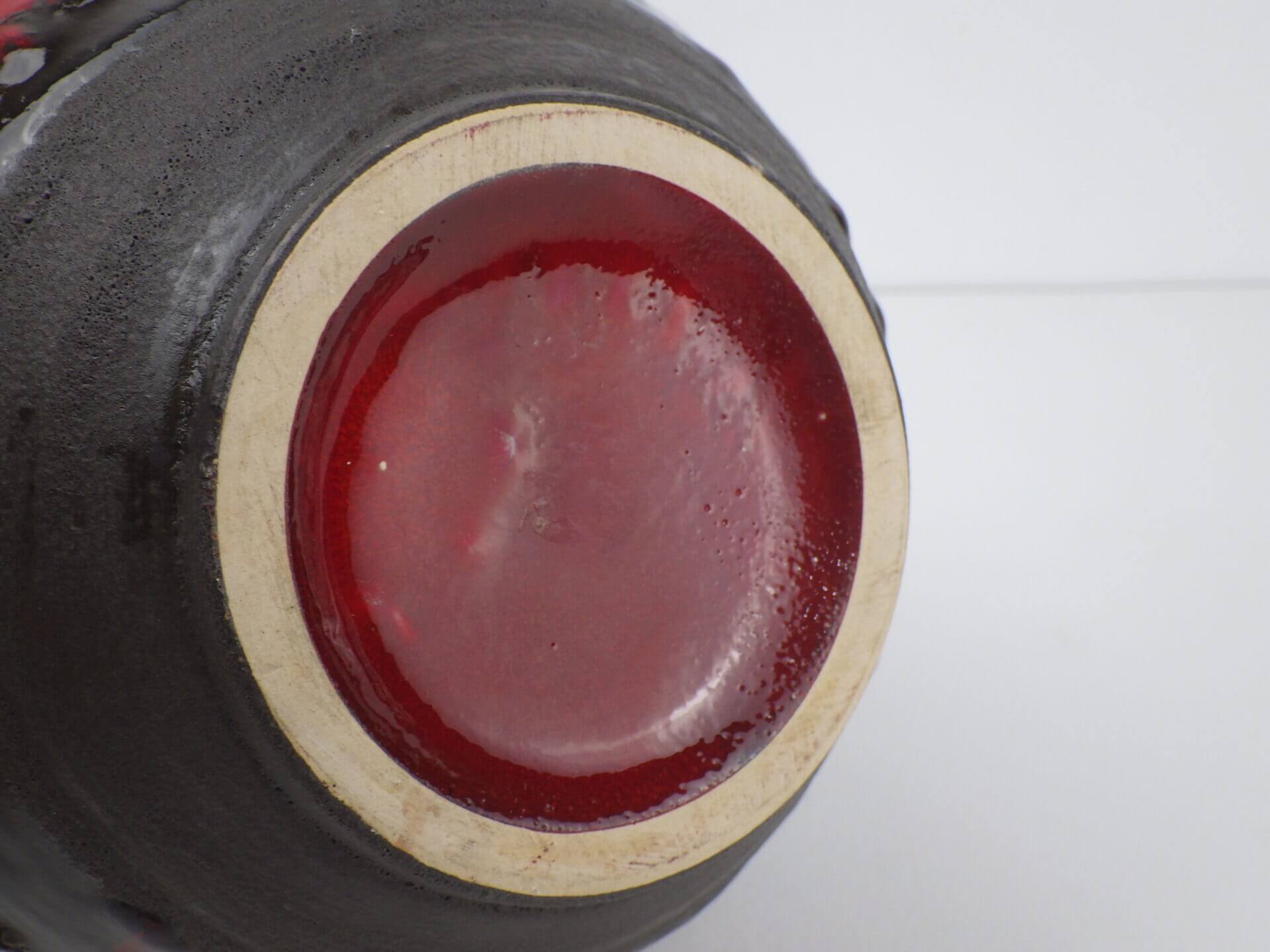 | 1950年~70年代に主に旧西ドイツで作られた「Fat Lava」と呼ばれるビンテージ花器です。 Fat Lavaは肥えた溶岩を意味し、流れ出る溶岩のような表情、色合い、ゴツゴツとした溶岩石のようなテクスチャーのものが多く存在します。 この時代のドイツ製陶器の多くは、職人による手作業で製作されていた為、全く同じものが他に存在しないところも魅力の一つかもしれません。 近年では日本でもコレクターズアイテムとして注目されています。 ミッドセンチュリー家具とも相性抜群ですね。 こちらは赤ベースに黒くゴツゴツしたテクスチャーがいかにも溶岩らしい、力強い一品ですね。 |