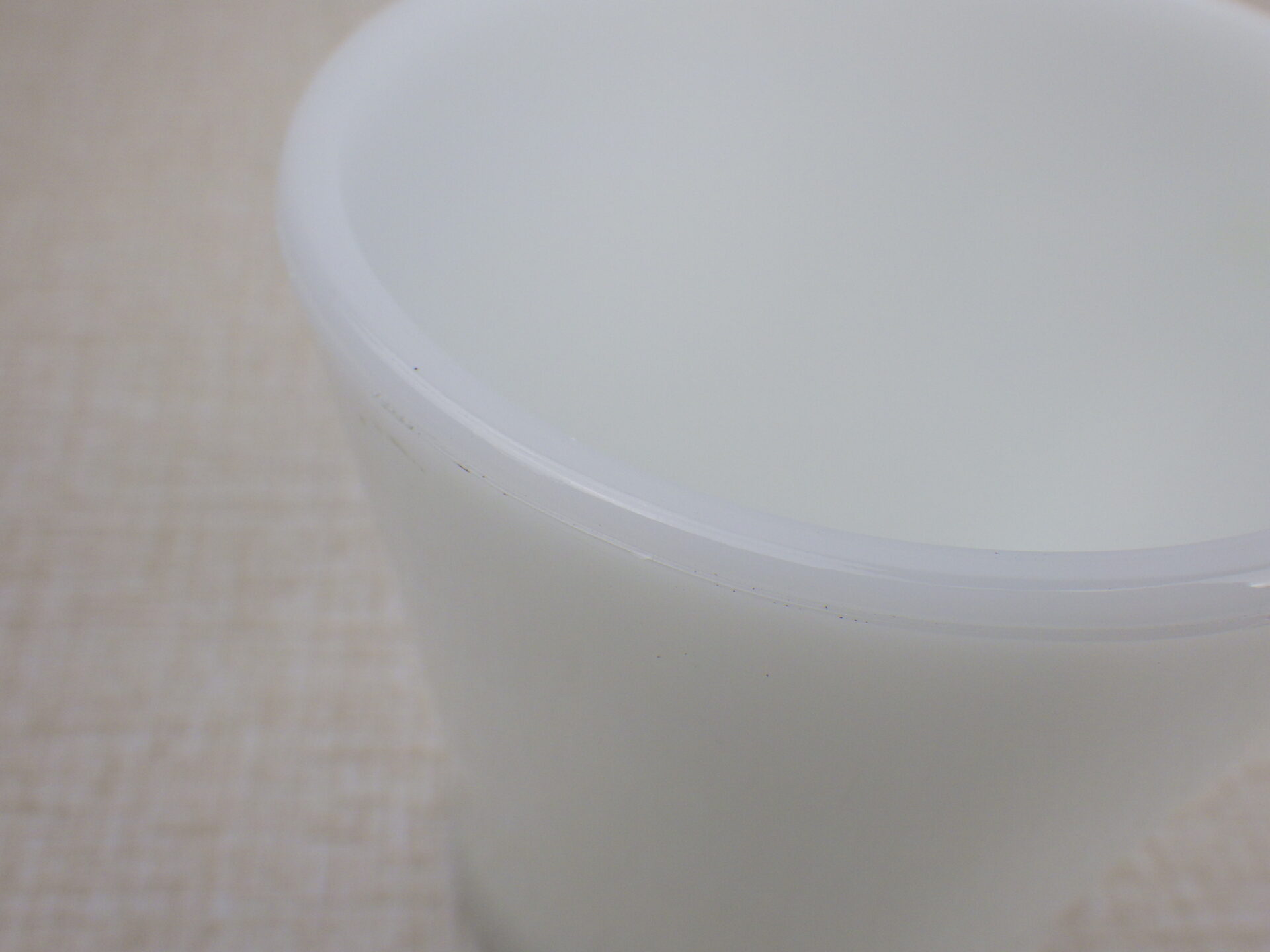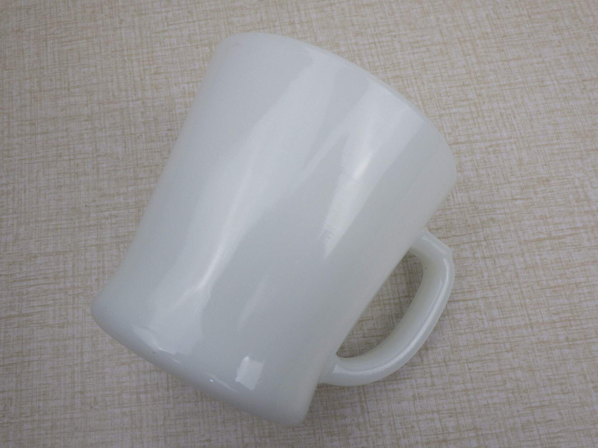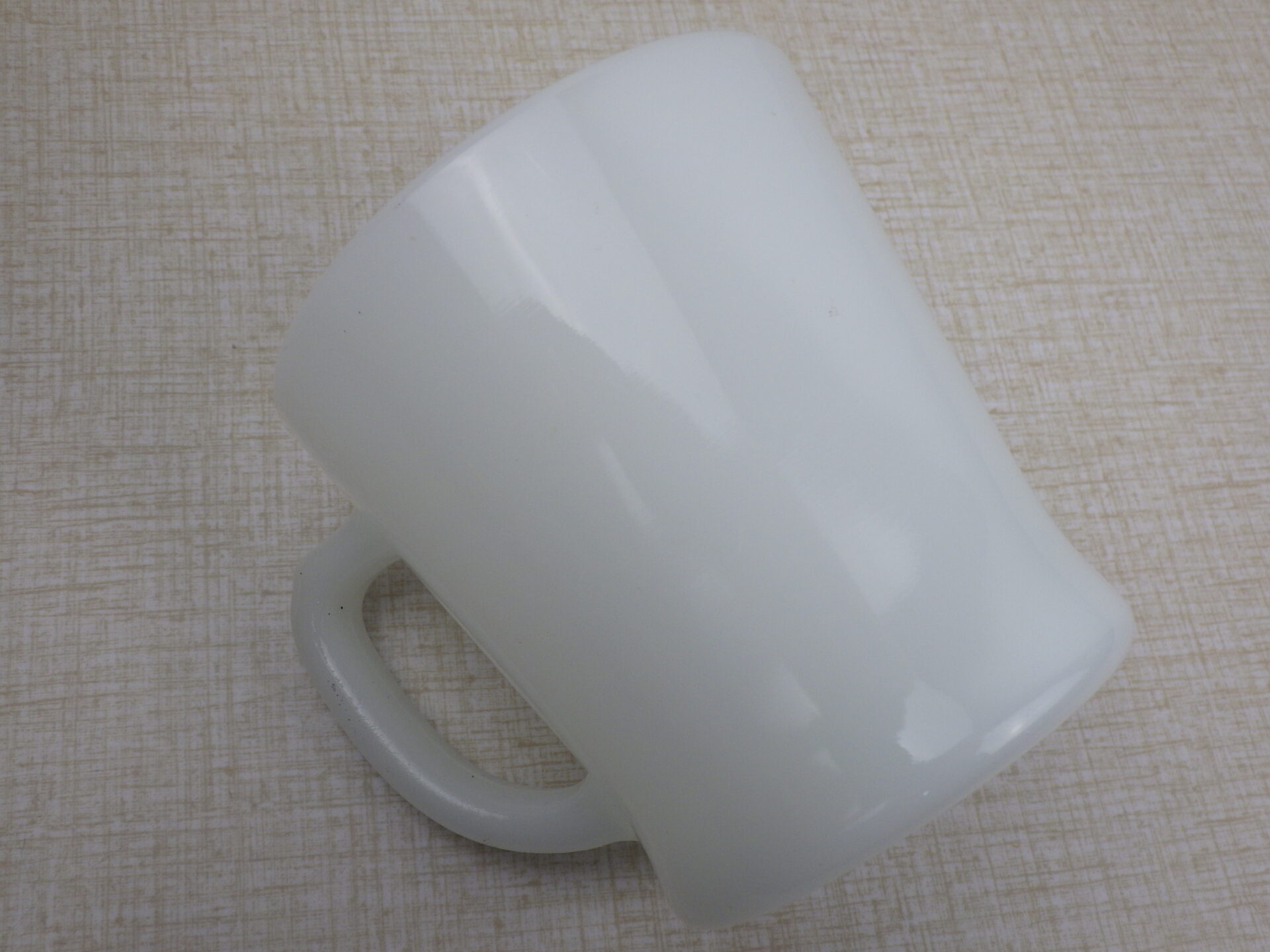 | condition | ミルクガラス特有の製造時よりのヘアライン、劣化線などあります。 ボトム、側面、ハンドル、リムにごくわずかな薄い着色があります。 側面に製造時よりのバブル痕が見られます。 リムに製造時よりの凹凸があります。 その他ご使用に影響があるダメージはなく、ツヤもあり良い状態です。 不明な点や追加画像の必要な場合は、お気軽にお問い合わせ下さい。 |