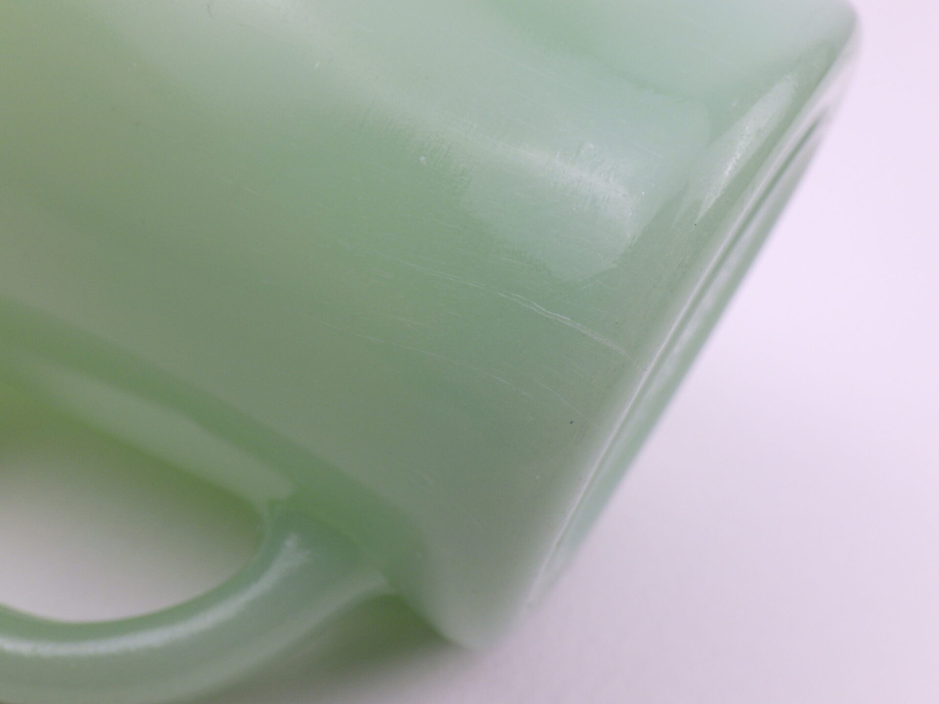 | condition | リム、側面、ボトム、ハンドルに薄い着色があります。 リム、ボトムにわずかなスレがあります。 リムに製造時よりの凹凸、小さなぶつかり痕があります。 ミルクガラス特有の製造時よりのヘアライン、劣化線、練りムラなどありますが、ご使用に影響のあるダメージはありません。 ツヤもあり良い状態です。 不明な点や追加画像の必要な場合は、お気軽にお問い合わせ下さい。 |