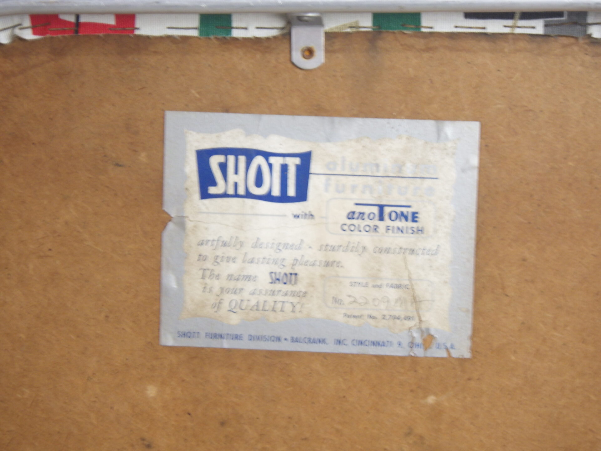 | SHOTTチェアは、「Balcrank Inc.」によって1940’s~オハイオ州シンシナティで製造されていました。 こちらの会社は後にかの有名なハミルトンスコッチに売却されたようですが、アルミ製家具を多く世に送り出しました。 こちらのチェアももれなくアルミフレームで、軽くて丈夫なため、庭先やアウトドアに持ち出すことも気軽に出来ます。 もちろんダイニングやリビングに置いてもお部屋のアクセントになるデザインです。 |