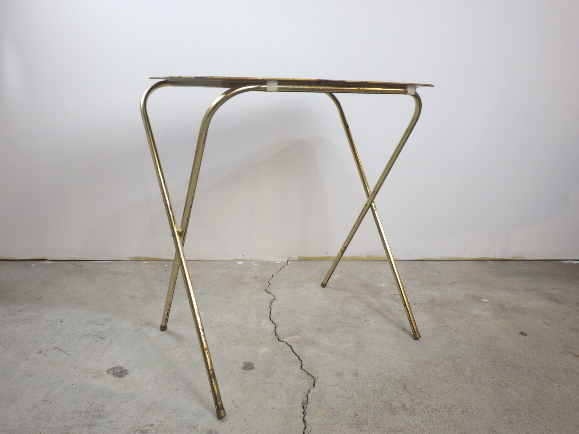 | アメリカで買い付けました。 テレビを見るときに食事や飲み物などを置く、折り畳み式のテーブルです。 1950年代頃から使用されるようになりました。 軽くてコンパクトなので、キャンプなどのアウトドアの際にサイドテーブルにしたり、ちょっとした台として使用するのにもおススメです。 |