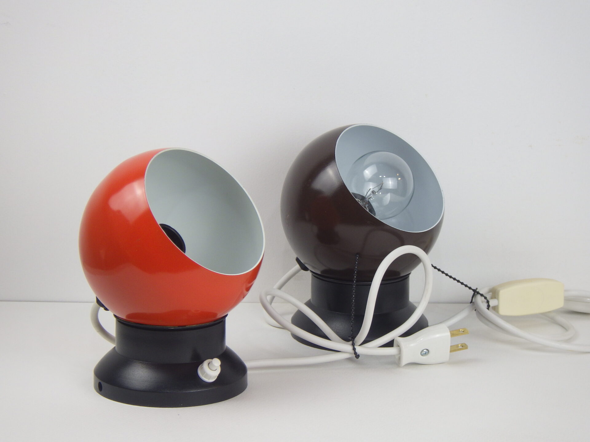 | ヨーロッパで買い付けました。 コロンとしたフォルムが可愛らしいボール型ランプです。 こちらはE.S.Horn(E.S.ホーン)製。1952年に創業し、60~70年代にかけて急成長をとげた企業です。 こちらの最大の特徴は、ホルダーにマグネットが付いており、磁気でシェードをホルダーに固定するという点。 テーブルランプとしてはもちろんのこと、ホルダーの中心にネジ穴がついているため、壁に取り付けウォールランプとしてもご使用いただけます。 また、ホルダーから外して吊り下げればペンダントライトにも変身する優れもの。 磁器でホルダーにくっついているため、シェードの角度を簡単に変えることが出来るのもグッド。 小ぶりなのでわずかなスペースにもさりげなく取り入れられますし、スペースエイジ感たっぷりなユニークなデザインなのでお部屋のアクセントにもなり、おすすめしています。 (電球サイズ E14 LED電球対応) |