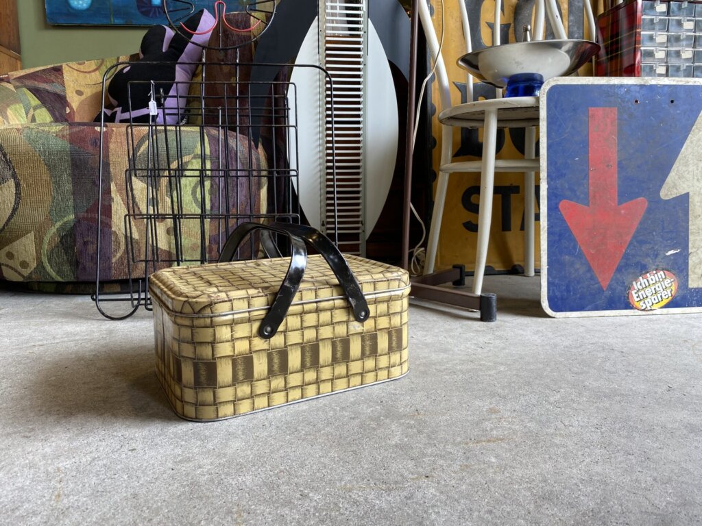 ティン缶バスケットはご自宅での収納や、ちょっとしたピクニック、キャンプなどにも持ち出せる優れもの!