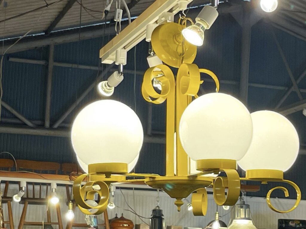 伝統的なシャンデリアの雰囲気も残しつつ、ポップなイエローとまん丸の五つのシェードが可愛らしい雰囲気も演出してくれるゴージャスなシャンデリア。