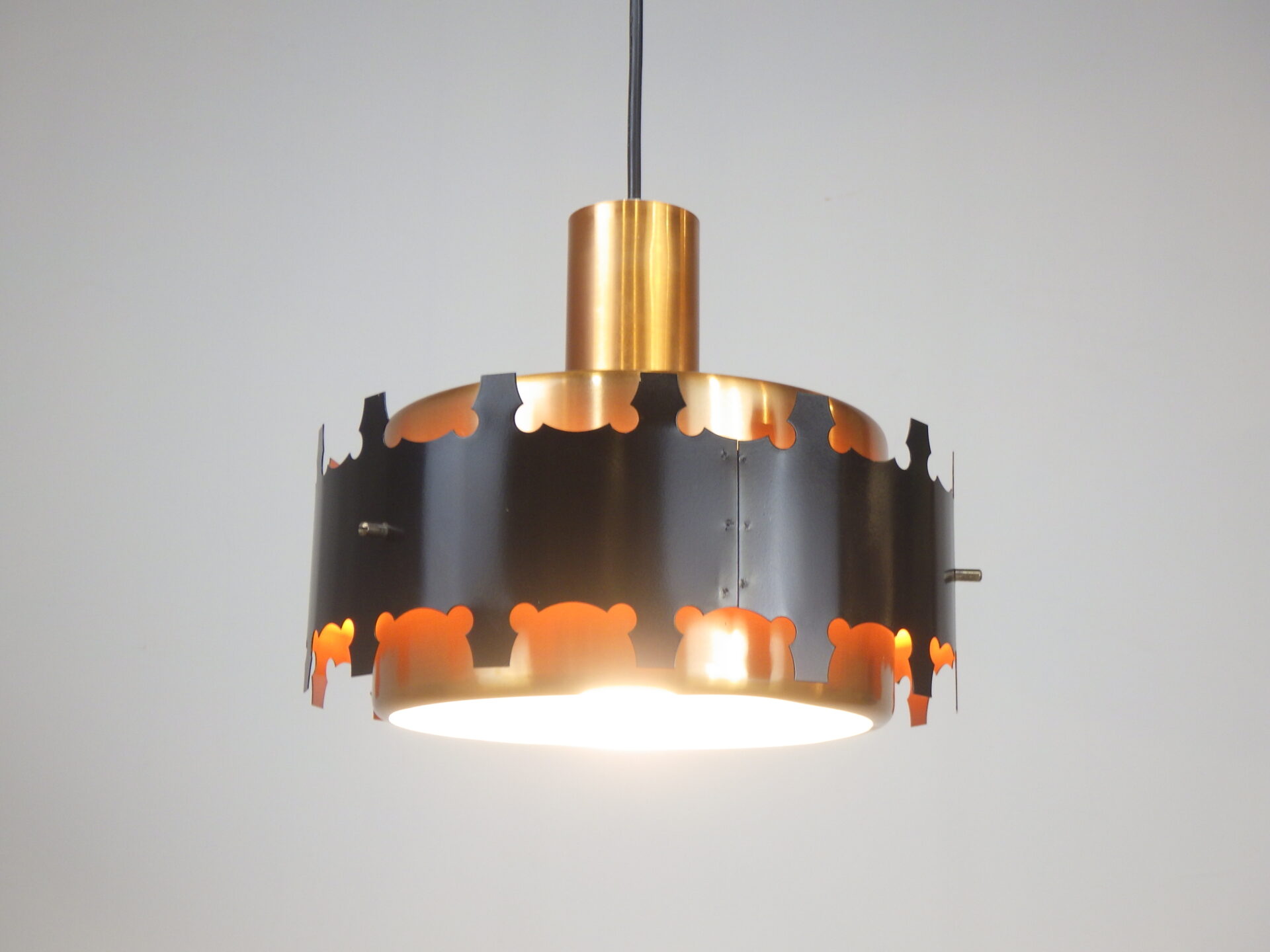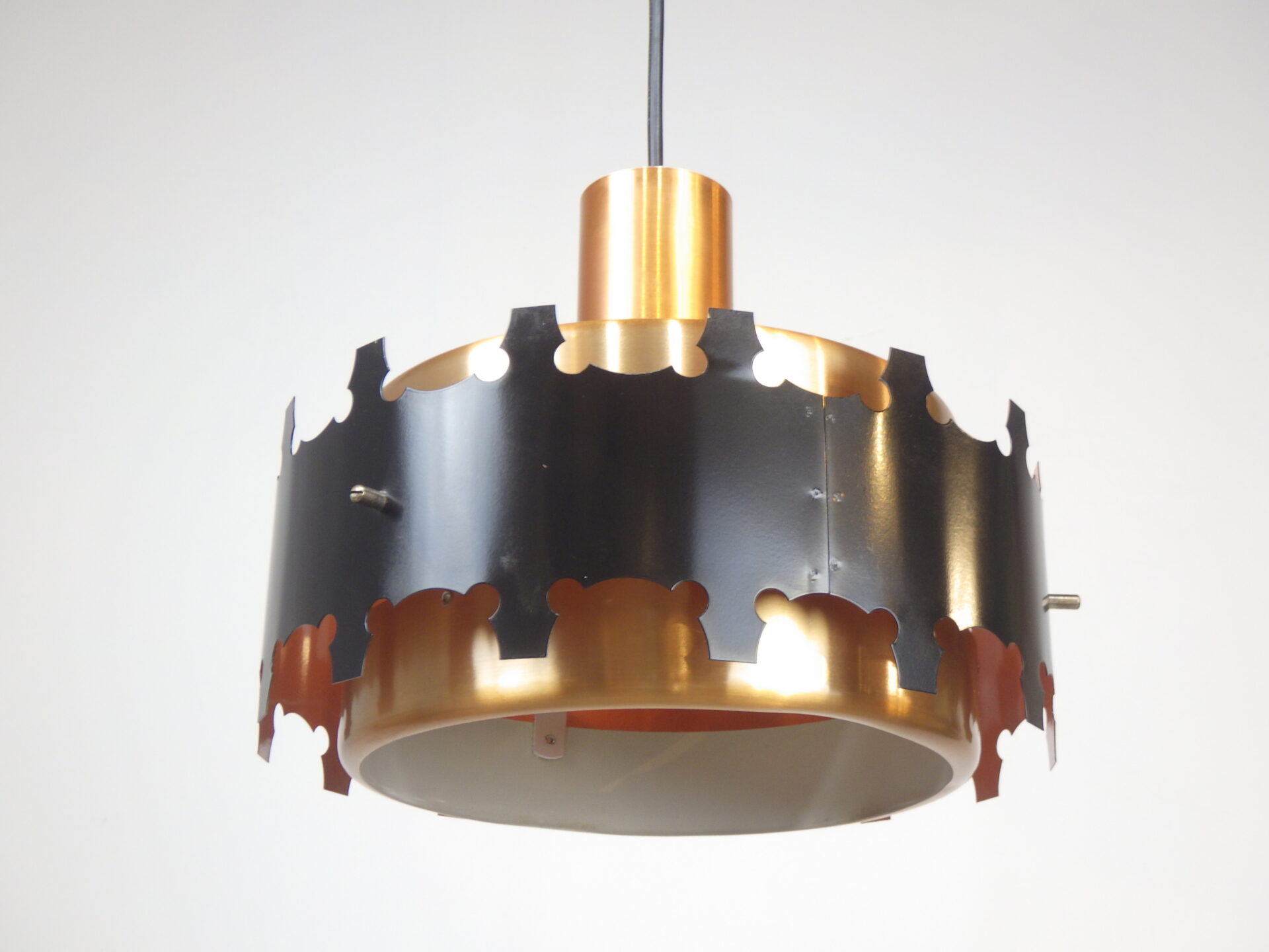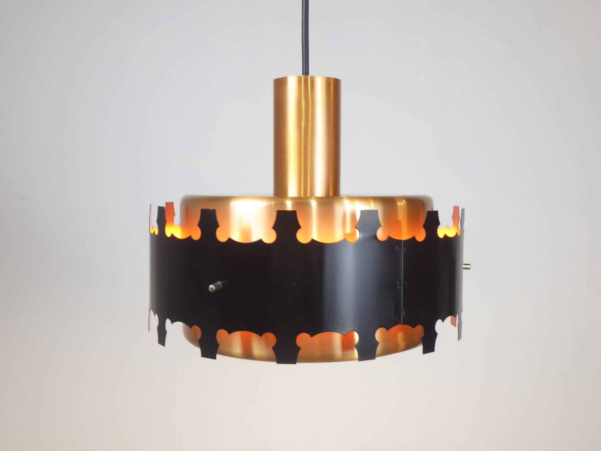 | ヨーロッパで買い付けました。 Werner SchouがCoronell Electro社の為にデザインしたデンマーク製のペンダントランプです。 外側のカッパー色をぐるりと取り囲むブラックの板が反射板にもなっており、内側から漏れる灯りが反射してボディそのものも光って見えます。 ダイニングに吊るせばモダンな雰囲気になりますし、寝室やリビングでサブ照明として良い雰囲気でお使いいただけるアイテムです。 お部屋のアクセントに、また店舗什器としても活躍してくれそうですね。 |