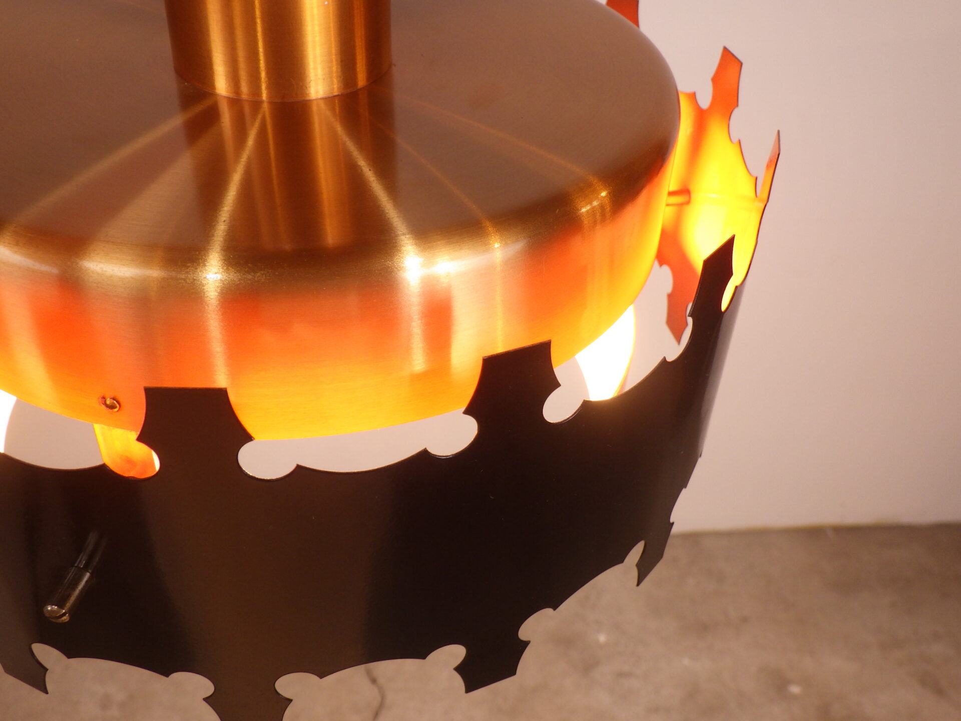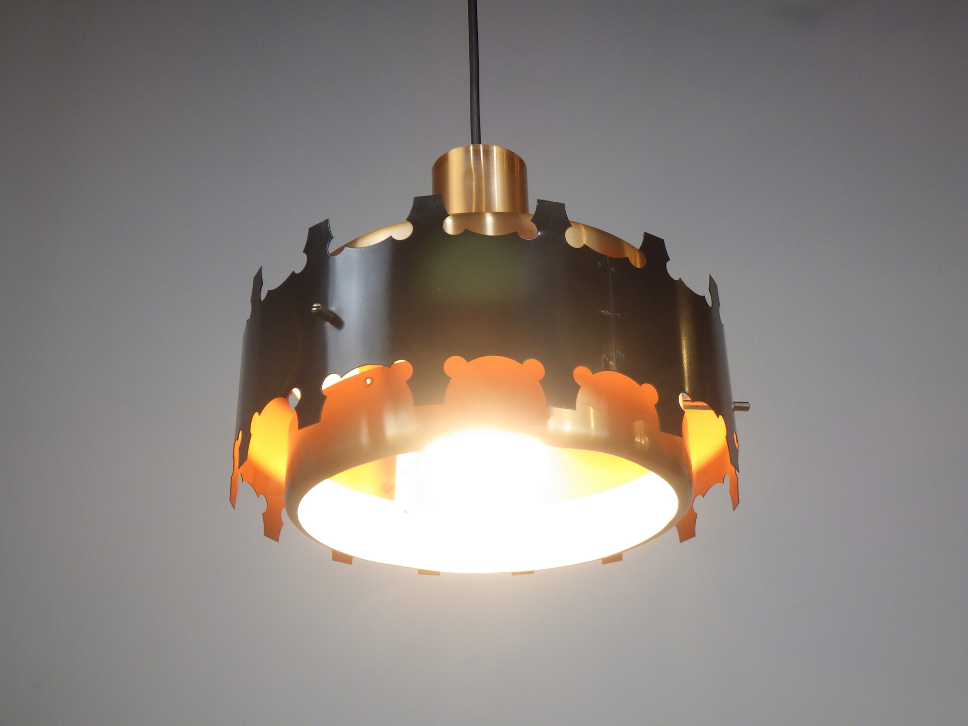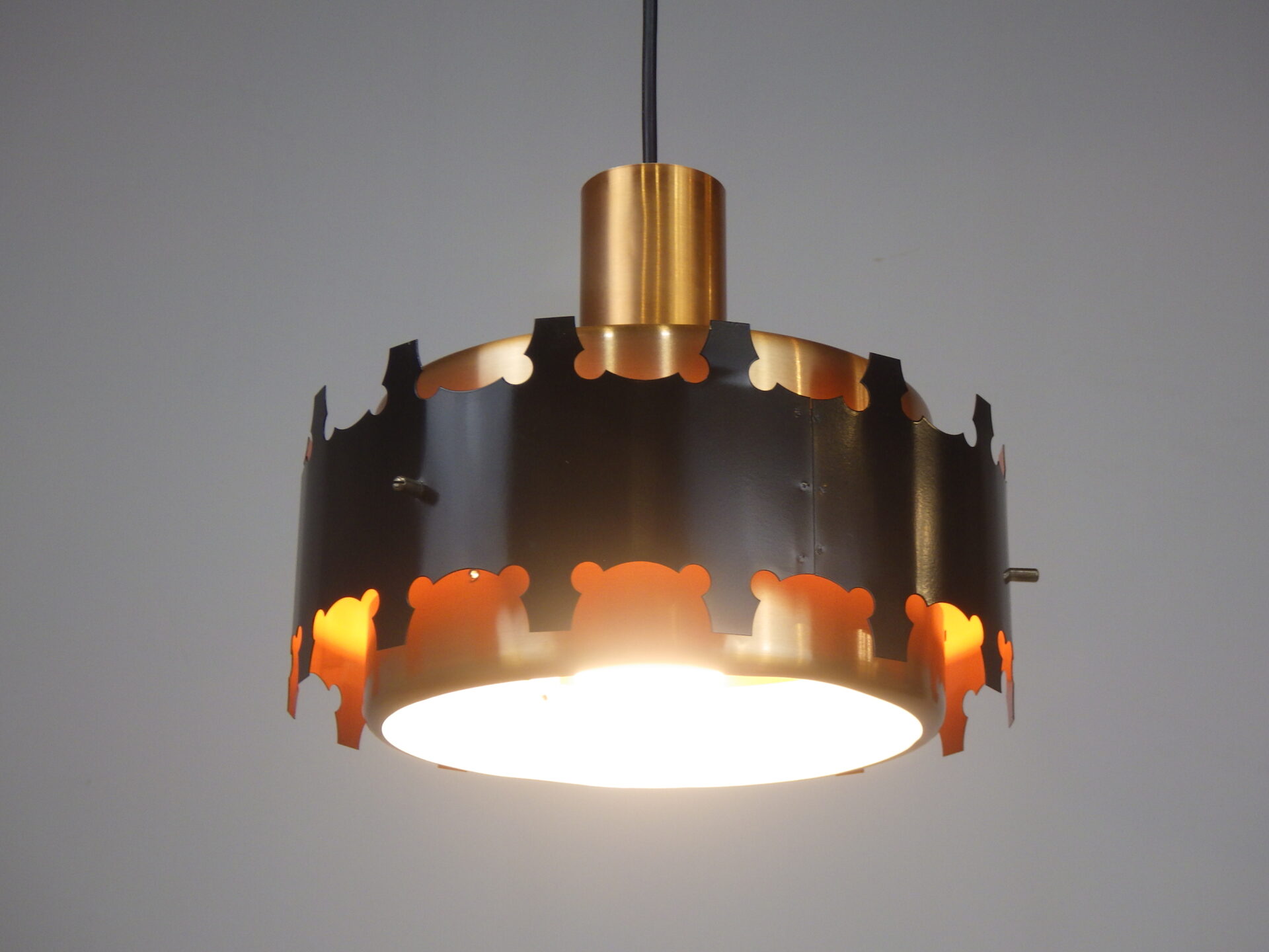 | ヨーロッパで買い付けました。 Werner SchouがCoronell Electro社の為にデザインしたデンマーク製のペンダントランプです。 外側のカッパー色をぐるりと取り囲むブラックの板が反射板にもなっており、内側から漏れる灯りが反射してボディそのものも光って見えます。 ダイニングに吊るせばモダンな雰囲気になりますし、寝室やリビングでサブ照明として良い雰囲気でお使いいただけるアイテムです。 お部屋のアクセントに、また店舗什器としても活躍してくれそうですね。 |