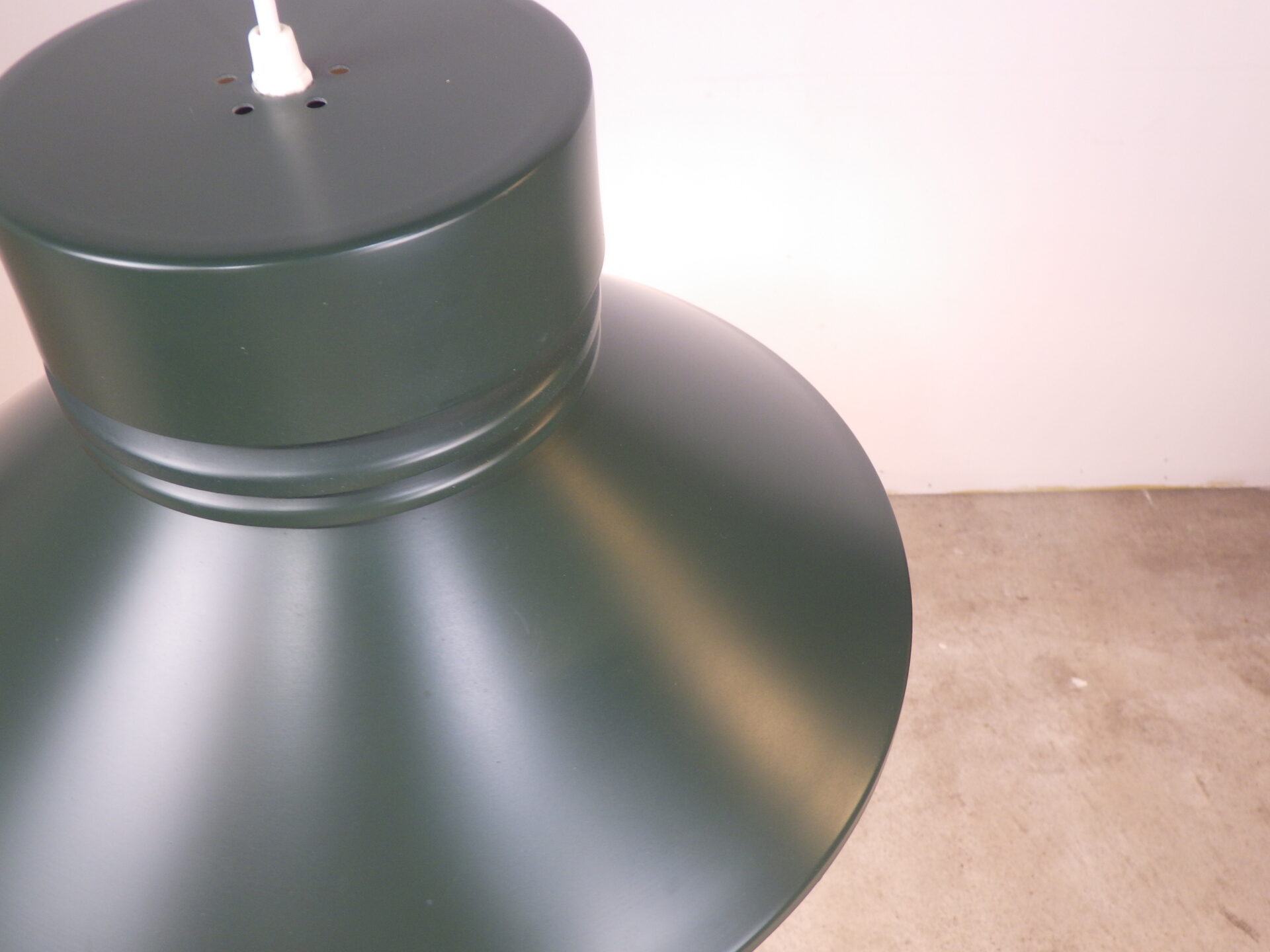 | ヨーロッパで買い付けました。 ビンテージのペンダントランプです。 インダストリアルな雰囲気と、スペースエイジ的な雰囲気とを併せ持つ、シンプルながら印象的なデザイン。 深めの落ち着いたグリーンがどのような空間にも溶け込みやすく、おすすめしています。 |