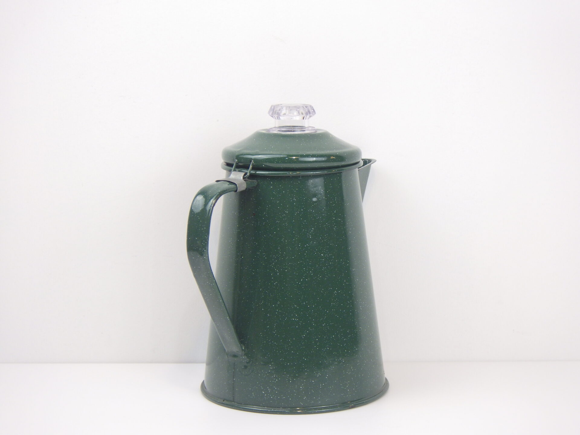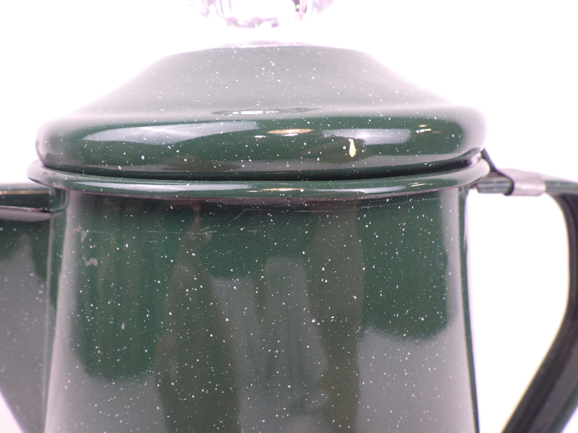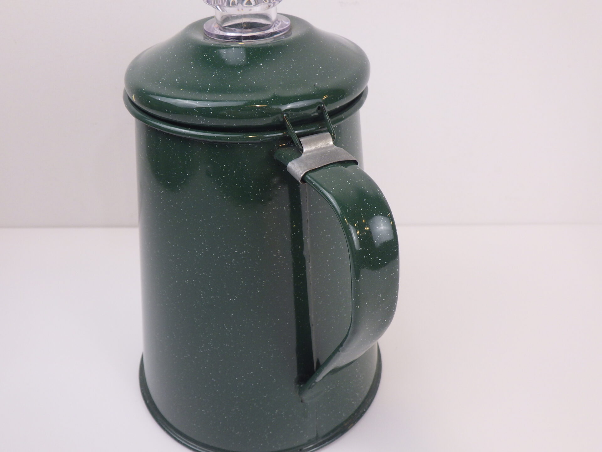 | アメリカで買い付けました。 ビンテージのエナメルケトルです。 元はパーコレーターだったと思われます。 グリーンのベースに白い塗料を飛ばしたペイントが宇宙っぽい雰囲気で人気です。 自宅使いだけでなく、キャンプなどアウトドアに持ち出すのにおすすめなアイテムです。 |