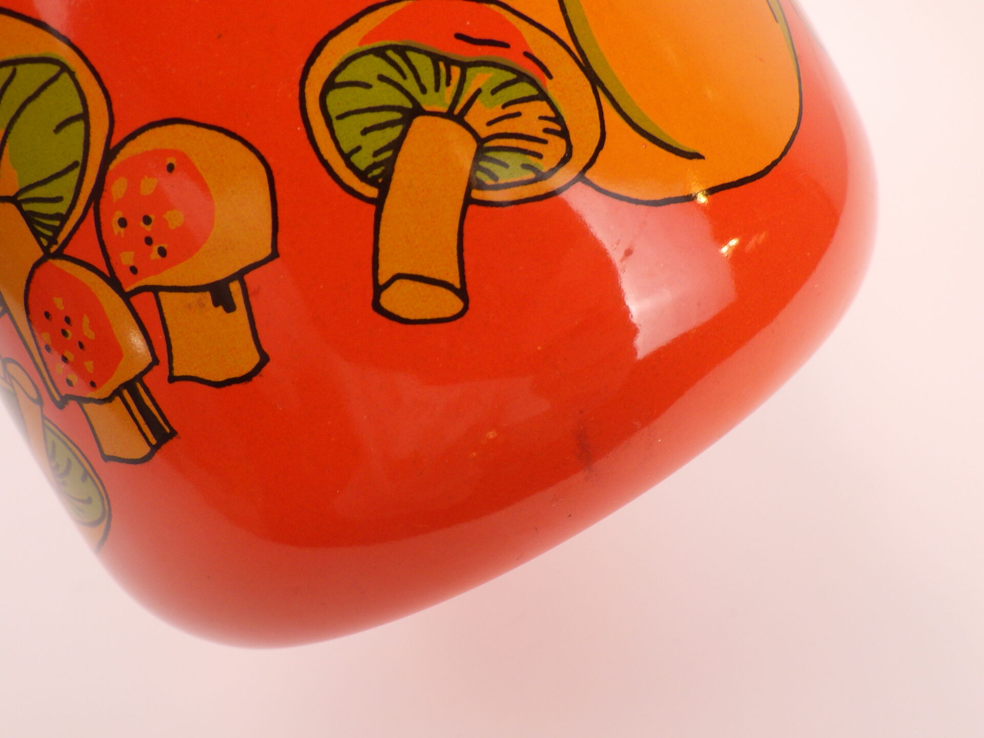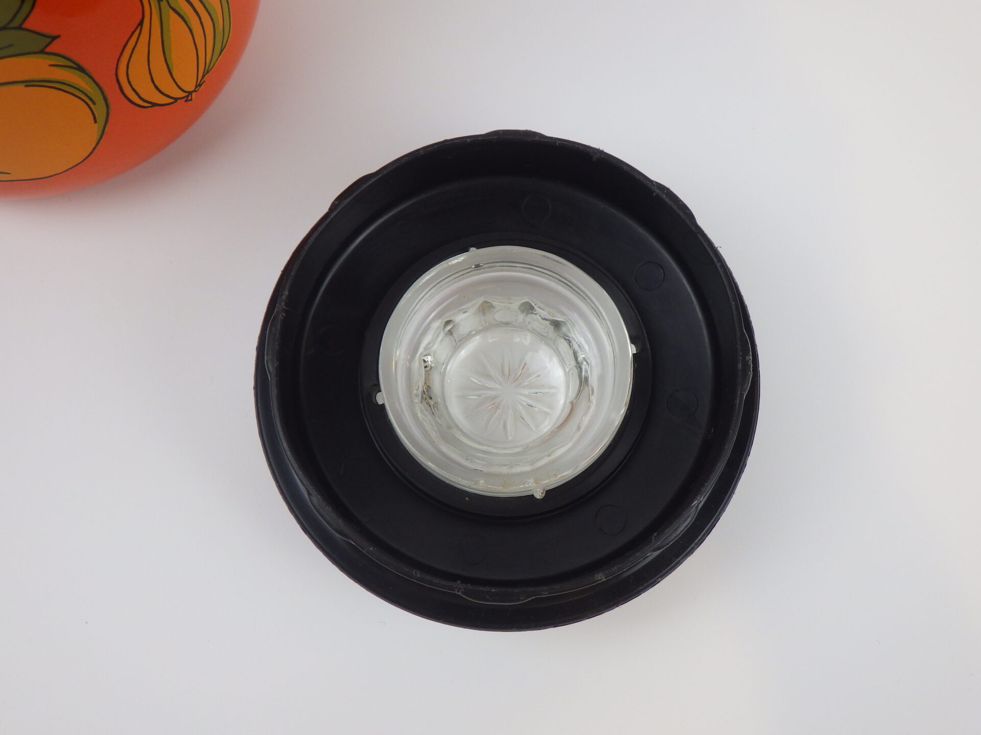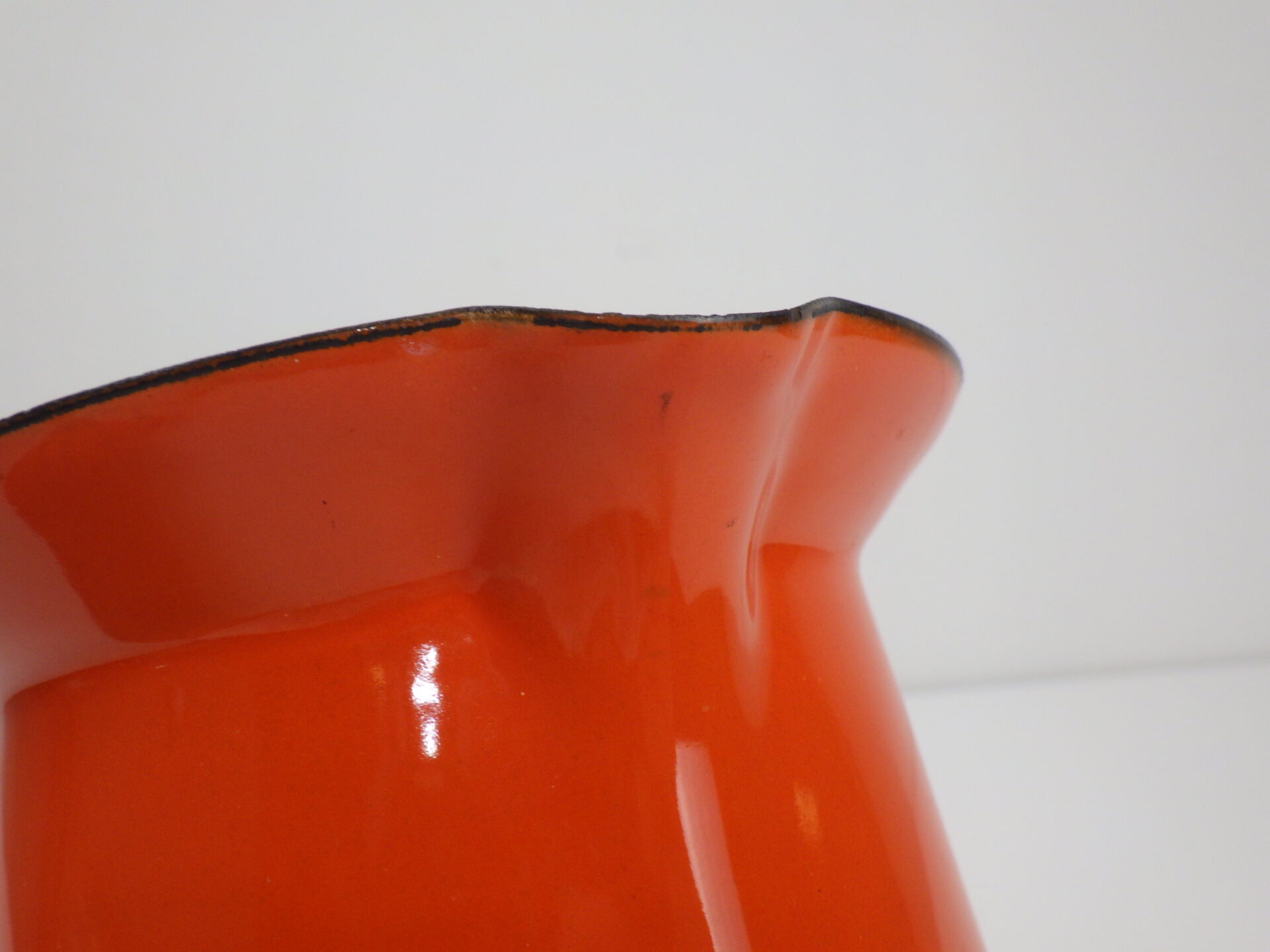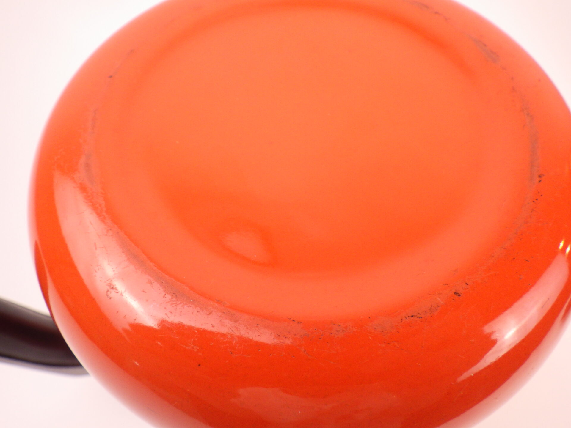 | アメリカで買い付けました。 ビンテージのエナメルパーコレーターです。 鮮やかなオレンジのボディに、野菜やマッシュルームがアクセントとして描かれているレトロなアイテム。 中を抜いてピッチャーとしてご使用も可能です。 キャンプなどに持ち出すのにも良いサイズ感です。 (写真では分かりづらいですが、蓋はプラスチック製です) |