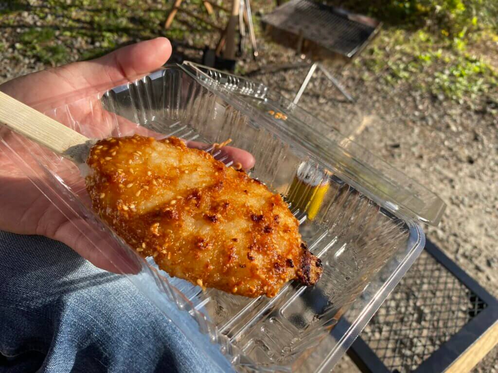 「この辺では一番美味しい」とキャンプ場の方にオススメされた五平餅もいただきました。