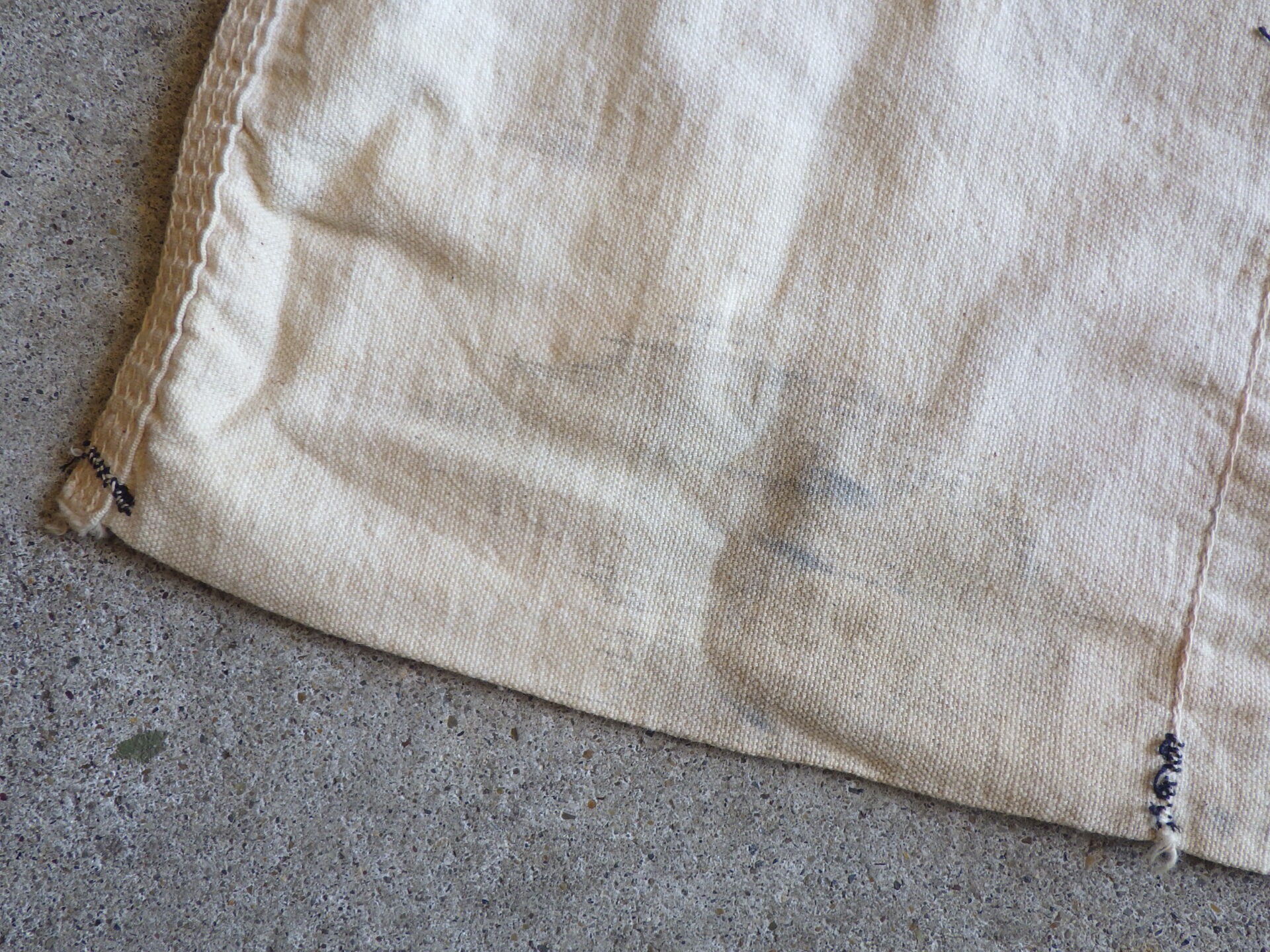 | アメリカで買い付けしたビンテージのワークエプロンです。 アドバタイジング(宣伝用)エプロンとして製造されたもので、材木屋や工務店のロゴや連絡先などがプリントされています。 こちらは「FOXCRAFT HOMES」のロゴ入り。 シュールなキツネのキャラクターと、赤黒のカラーリングが目を惹く一枚です。 エプロンとしてもお使いいただけますが、ウォールポケットのように壁に掛けたり、紐を縛ってサコッシュのように肩掛けにしても良い雰囲気です。 |