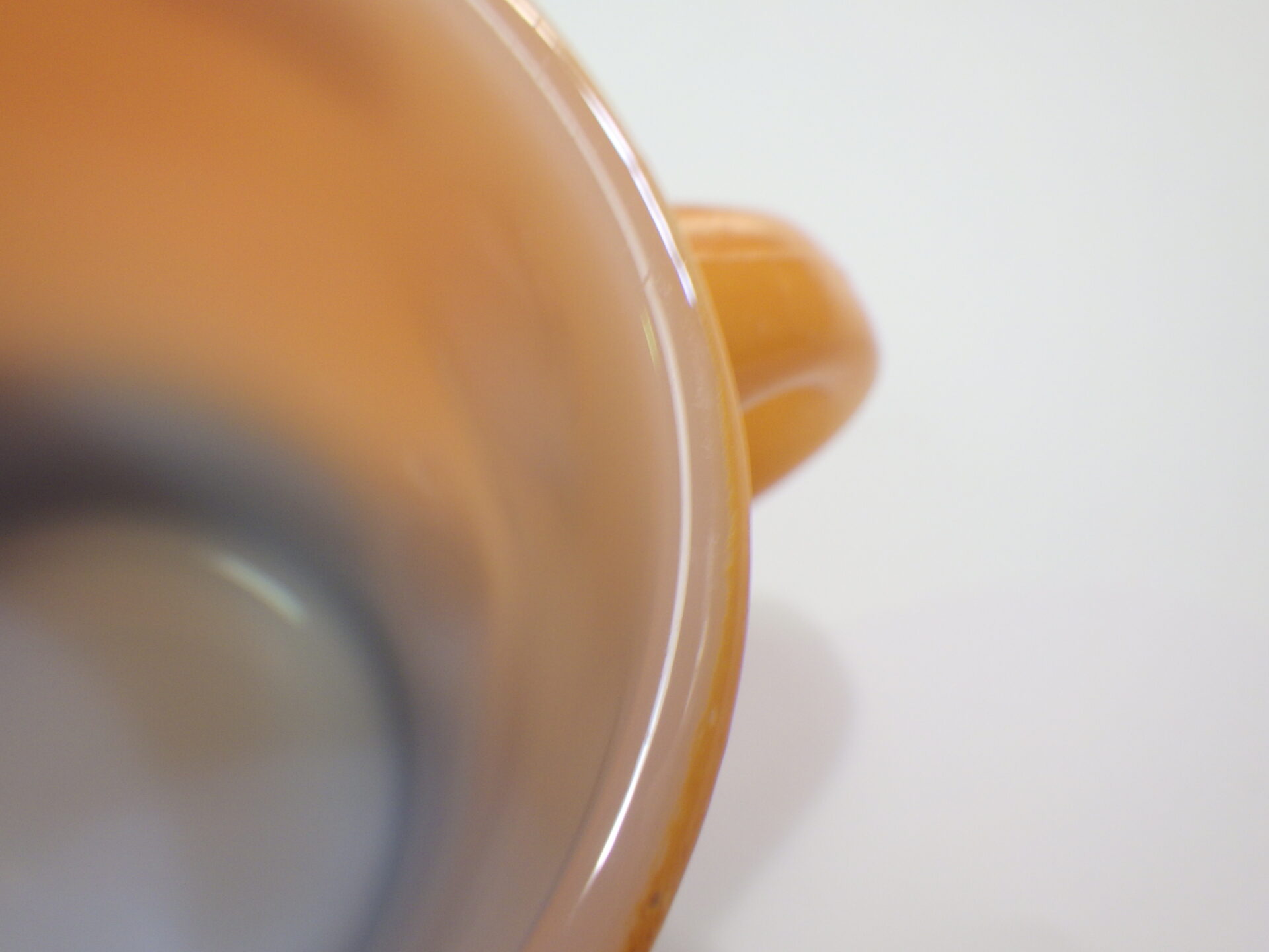 | スタッキング(積み重ね)出来るタイプのマグです。 こちらはその中でもハンドルが丸い形をしている「Cハンドル」「ラウンドハンドル」のタイプです。 当時、アメリカの一般家庭で使用されていたものなので、比較的お手頃価格で気兼ねなく使っていただけます。 飾って良し、使って良しのアイテムです。 |