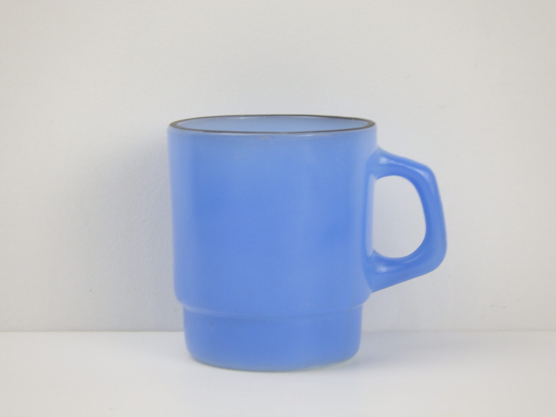 | スタッキング(積み重ね)出来るタイプのマグです。 こちらはリムにブラックペイントが施された「BOLD COLORS」シリーズのものです。 当時、アメリカの一般家庭で使用されていたものなので、比較的お手頃価格で気兼ねなく使っていただけます。 飾って良し、使って良しのアイテムです。 |