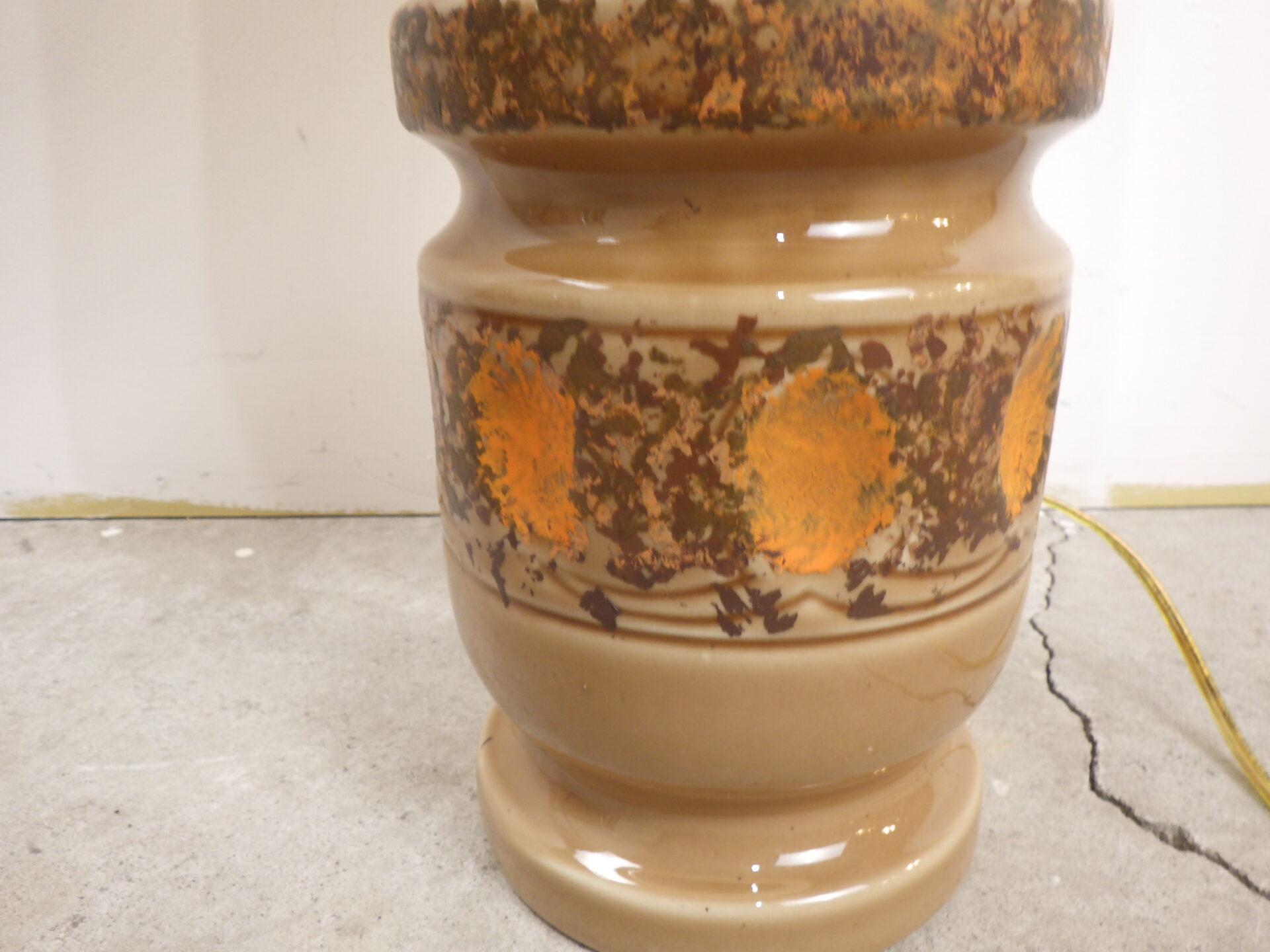 | アメリカで買い付けました。 オレンジ、ブラウン、ゴールドの塗料でダイナミックにハンドペイントされたポタリーに、上部は雰囲気の良いウッドの支柱が合わせられたベースが印象的なテーブルランプ。 シェードは細い糸のような繊維が幾重にも重なり模様を描き出しています。 ゴールドの縁取りが良いアクセントとなっていますね。 高さがあるのでフロアランプの様に床に置いても良さそうです。 間接照明としての役割だけでなく、インテリアとしての存在感を如何なく発揮してくれるアイテムですね。 ソケット部分のスイッチでON/OFFが切り替えられます。 (電球の口金サイズ:E26 LED対応) |