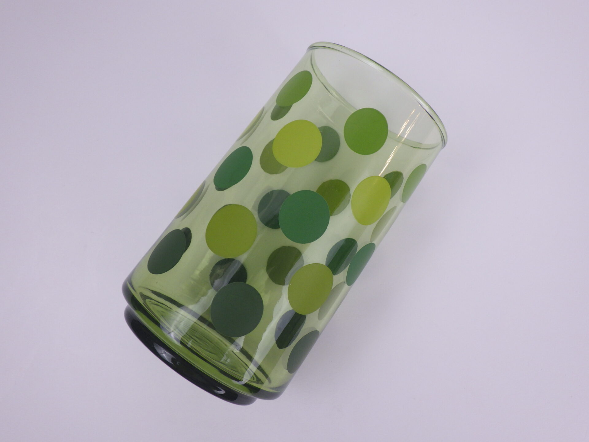 どこかレトロな雰囲気が漂うグリーンのポルカドットのビンテージグラスです。