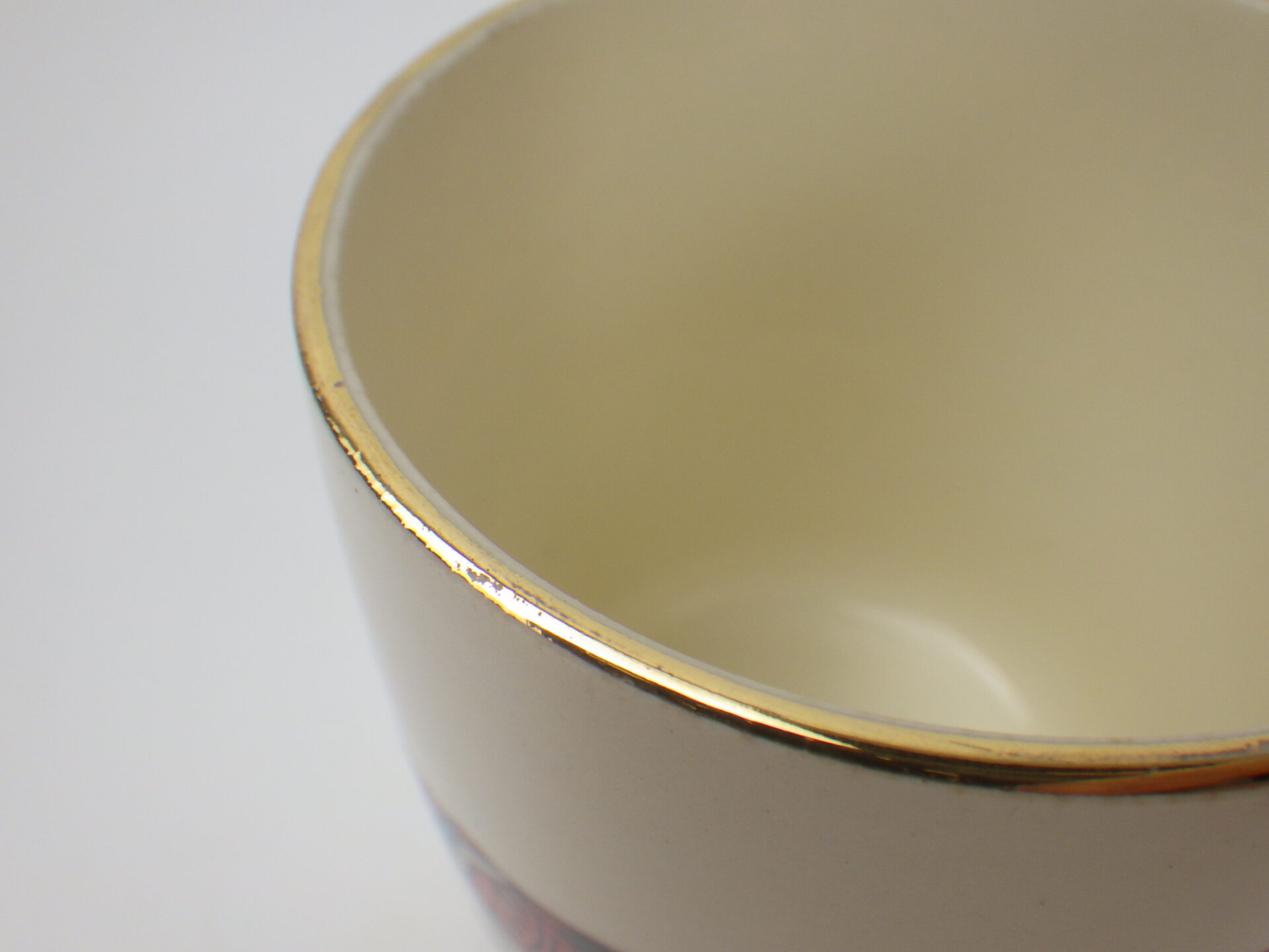 | condition | 製造時よりの表面の凹凸があります。 経年による小キズ、使用感、着色などありますが、ご使用に影響のあるダメージはなく、ビンテージらしい良い雰囲気です。 プリントはリムにわずかなロスがありますが、側面のプリントはツヤもあり綺麗な状態です。 不明な点や追加画像の必要な場合は、お気軽にお問い合わせ下さい。 |