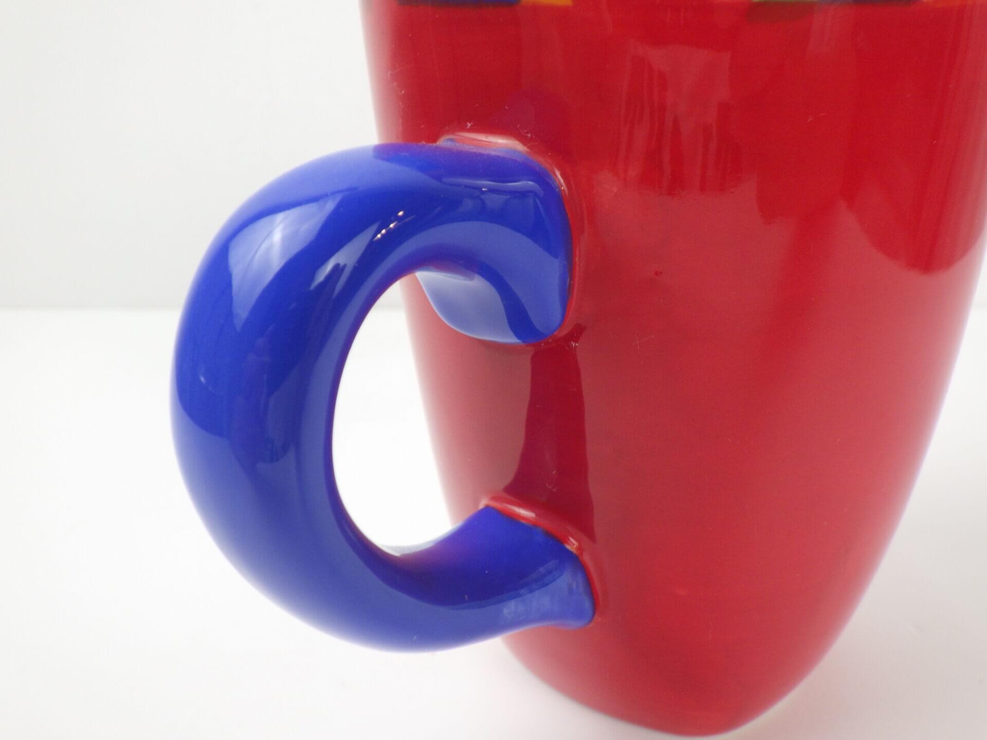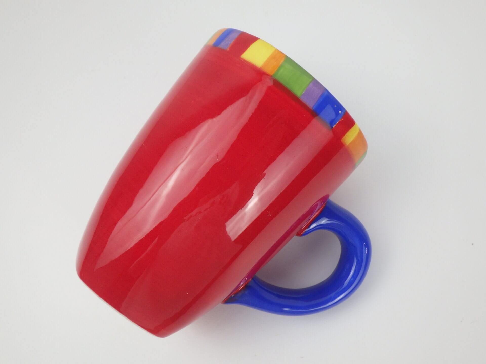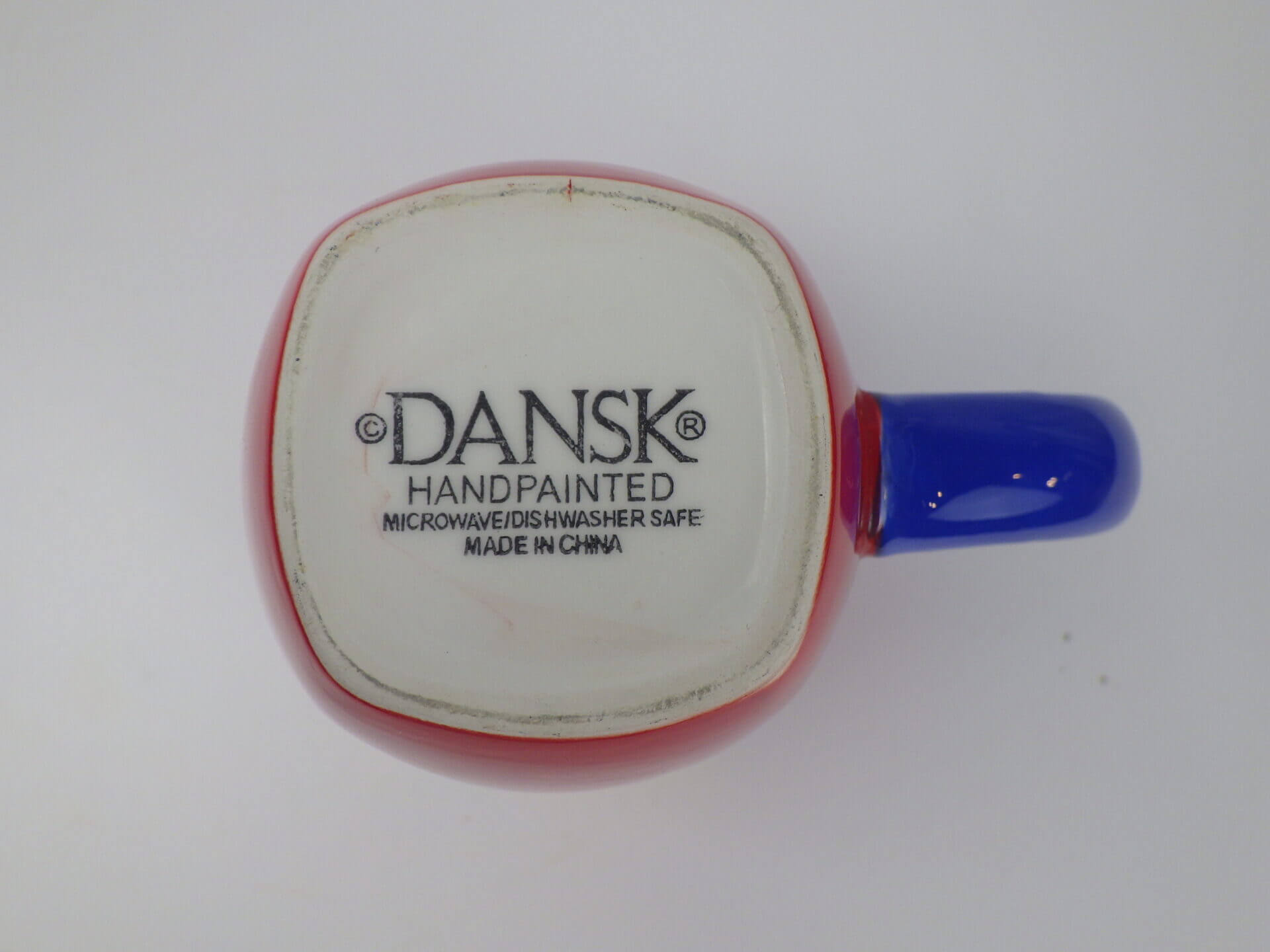 | アメリカで買い付けました。 ハンドペイントで着色が施されたダンスク社の陶器マグです。 ポップな色合いが大変可愛いアイテムです。 コーヒーマグとしてはもちろんのこと、トールサイズなので氷を入れてコールドドリンクを飲んだり、ペン立てなどにしてインテリアのアクセントとしてご使用されても良さそう。 ハンドルも大き目なので持ちやすく、普段使いにおすすめしています。 |