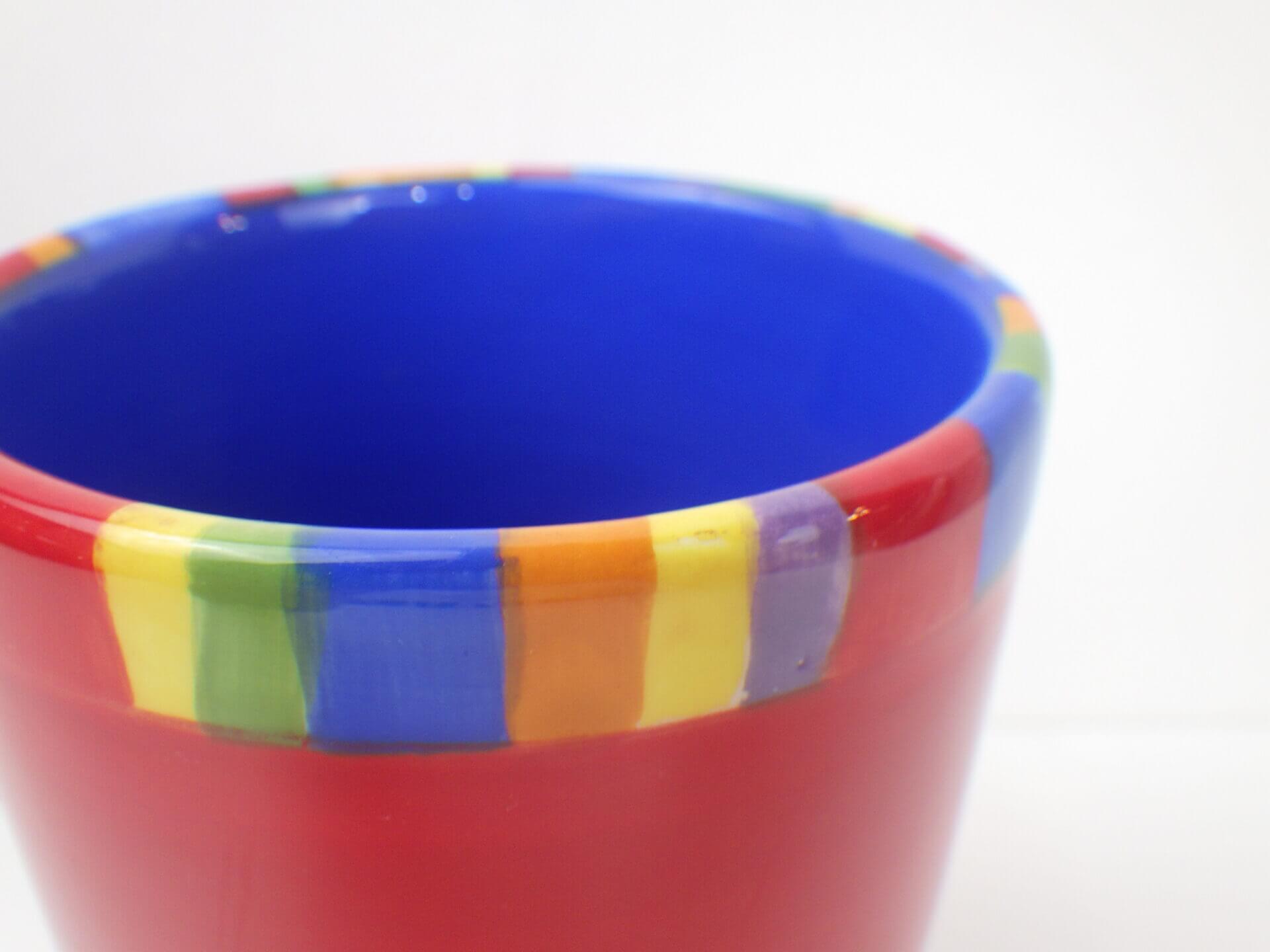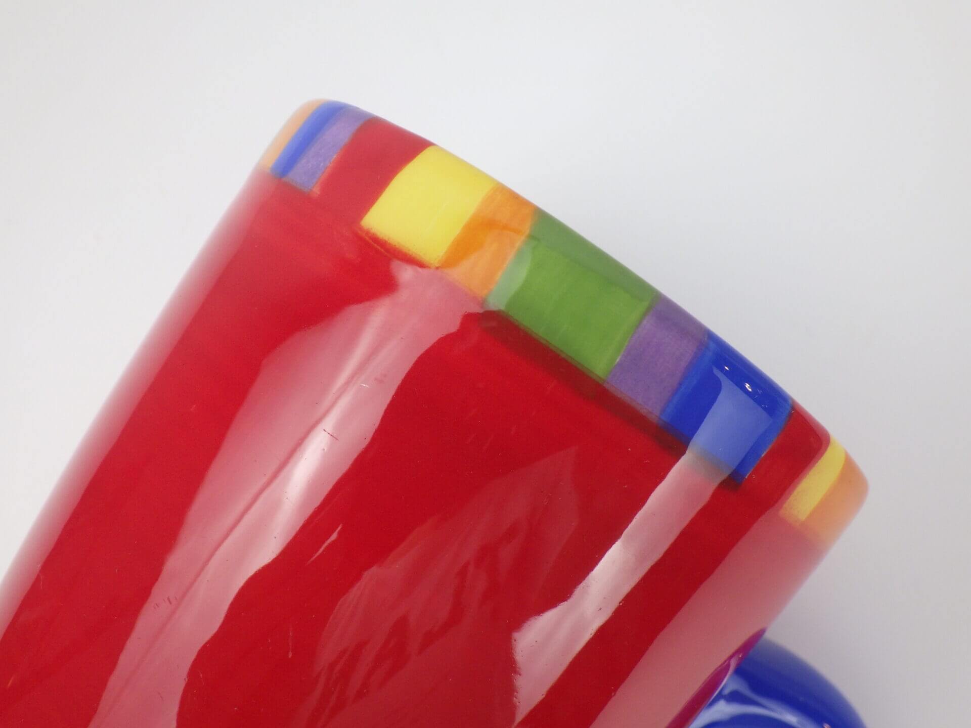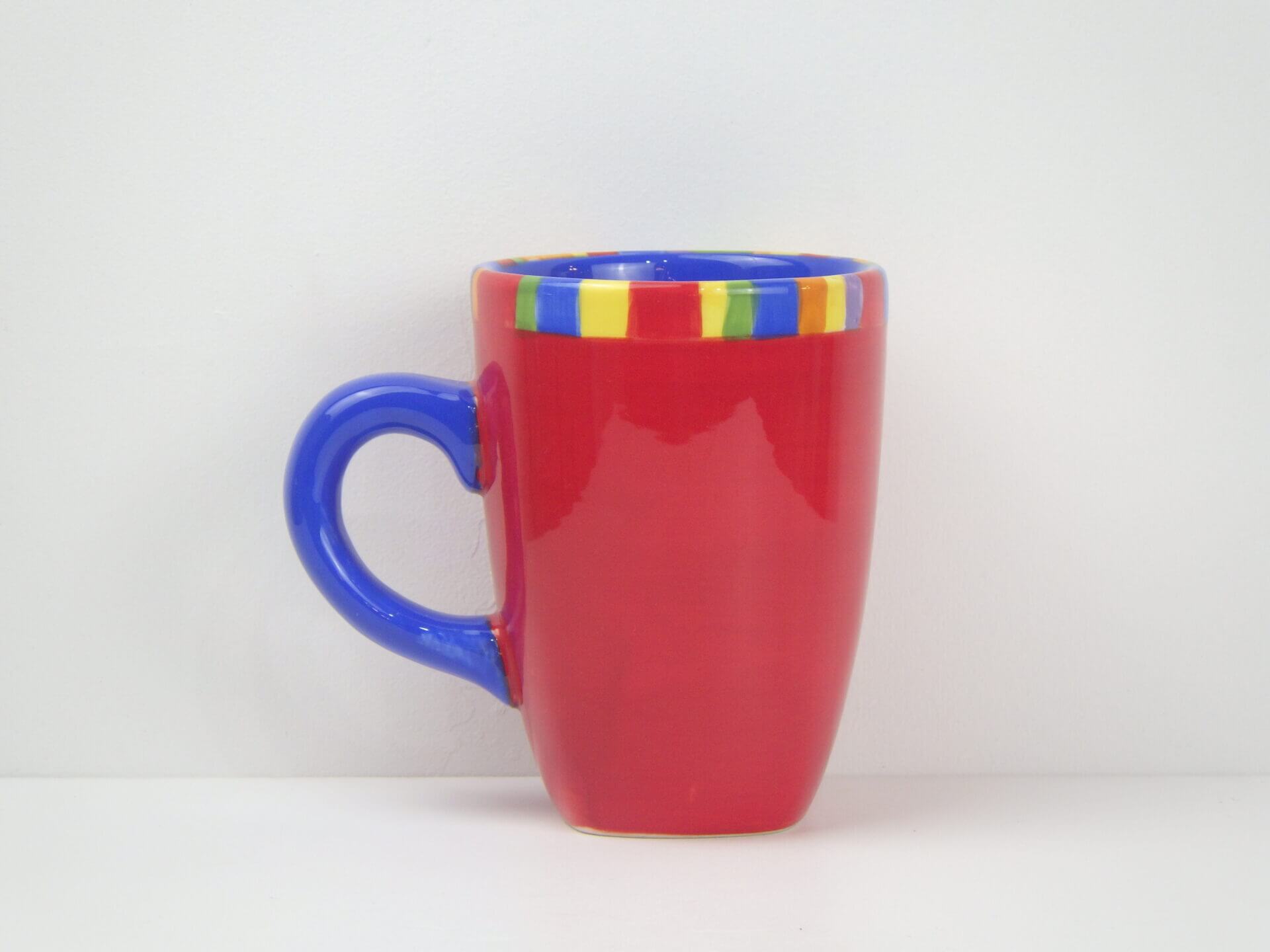 | アメリカで買い付けました。 ハンドペイントで着色が施されたダンスク社の陶器マグです。 ポップな色合いが大変可愛いアイテムです。 コーヒーマグとしてはもちろんのこと、トールサイズなので氷を入れてコールドドリンクを飲んだり、ペン立てなどにしてインテリアのアクセントとしてご使用されても良さそう。 ハンドルも大き目なので持ちやすく、普段使いにおすすめしています。 |