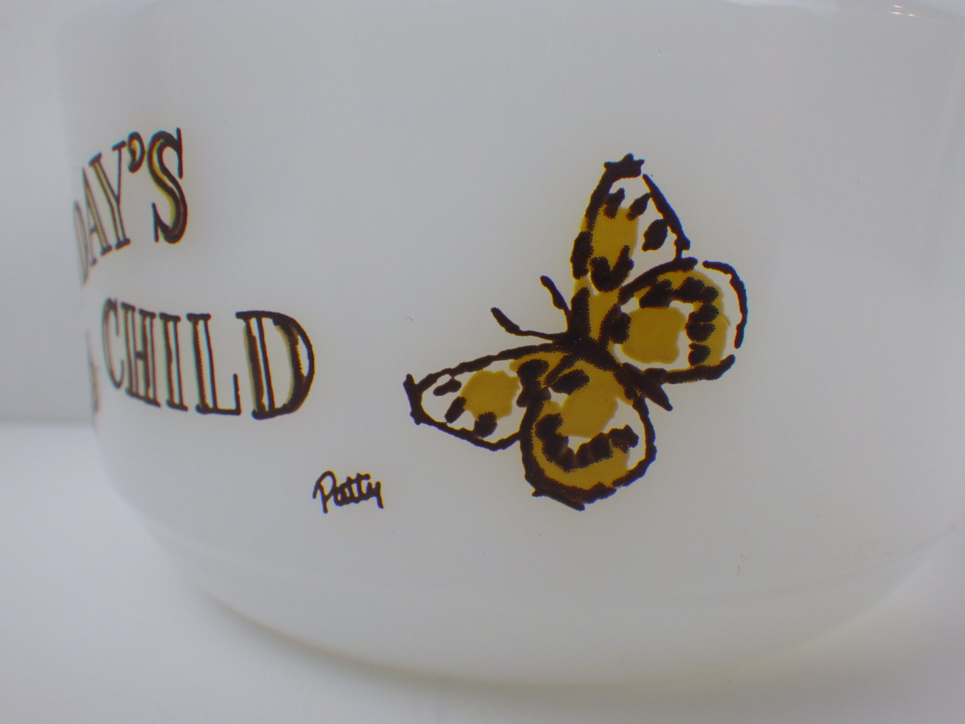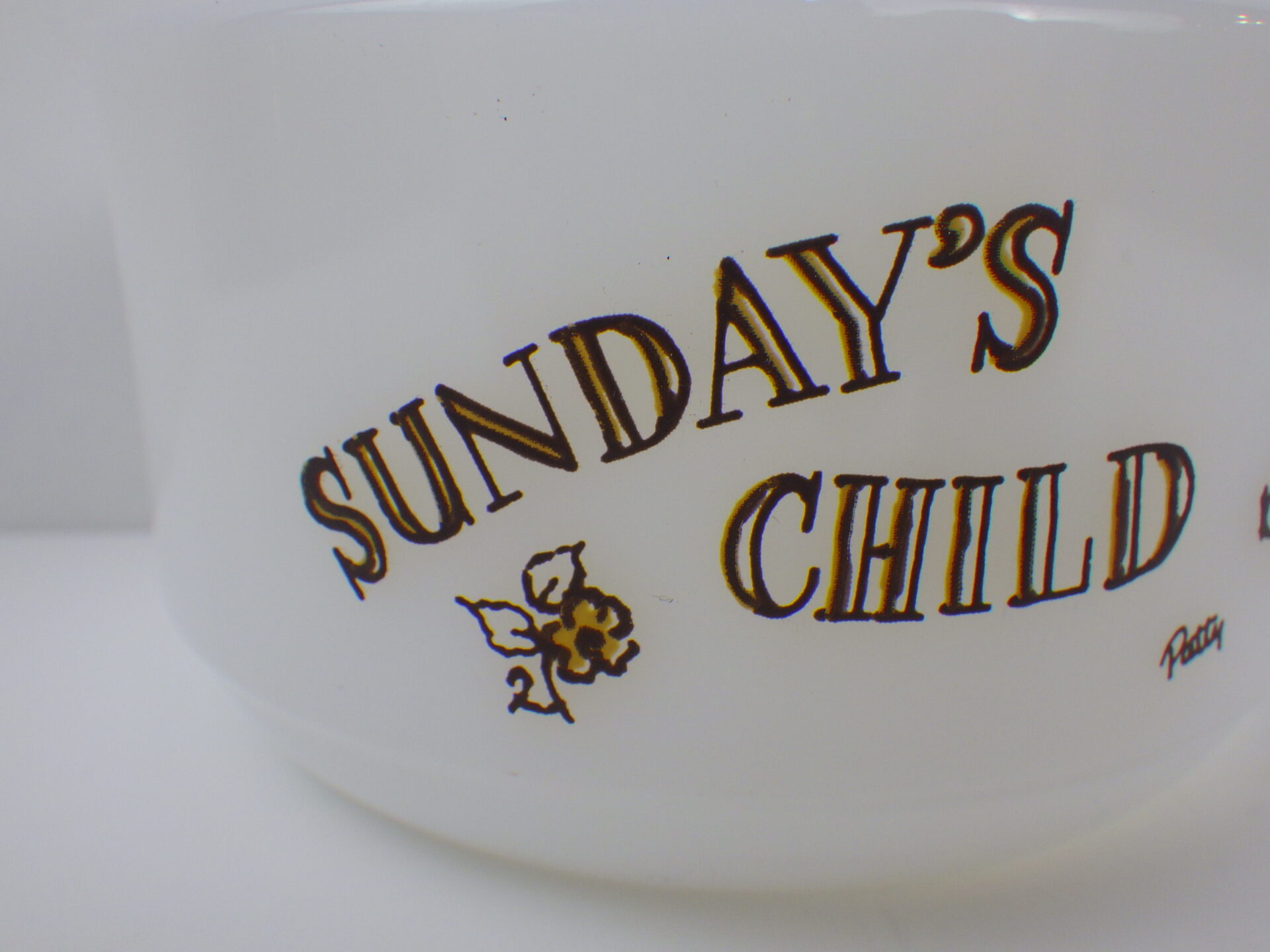 | アメリカで買い付けました、ファイヤーキングの「ウィークリー・チャイルド・シリーズ」の日曜日です。 イギリス発祥、英語圏ではお馴染みの「マザーグース」がテーマとなっています。(日本人にもお馴染み「キラキラ星」「ロンドン橋落ちた」などもマザーグースです) こちらのボウルは「日曜日(安息日)に生まれた子どもは美しく陽気で楽しい良い子」とプリントされています。 生まれた曜日占いというのは日本ではあまり馴染みがありませんが、日本でいう「血液型占い」「星座占い」に近い感覚なのかもしれません。 月曜日~日曜日、そしてバースデイの八種類ありますが、揃えたくなる可愛さです。 |