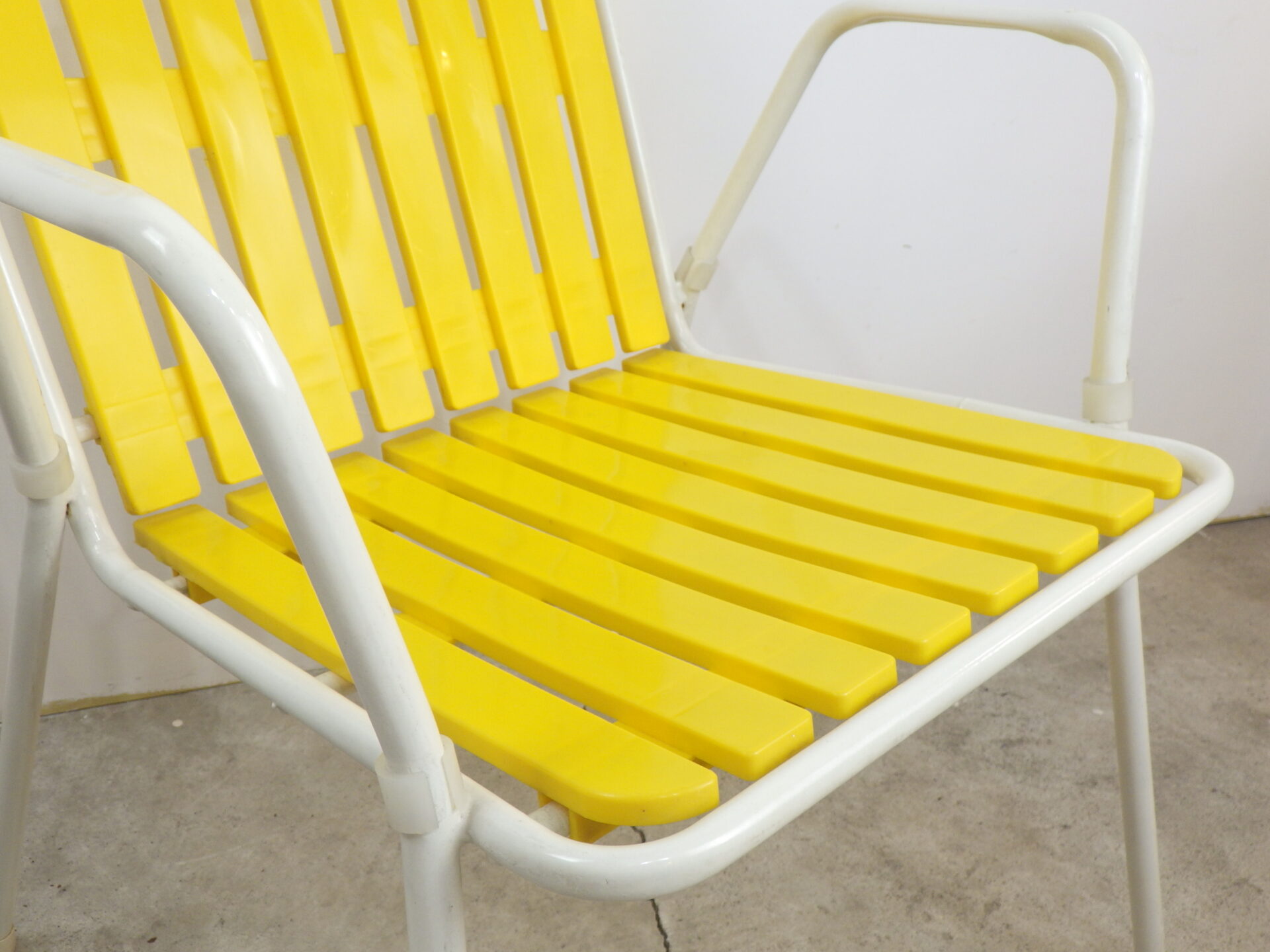 | アメリカで買い付けました。 イエローとホワイトの組み合わせがが可愛いビンテージチェアです。 明るい印象を与えてくれるチェアですので、お部屋に置けばこれだけで良いアクセントになってくれます。 また、スタッキング出来ますので、何客か余分に持っておいて、来客時にさっと出せて便利かも。 水洗いも可能なので、ウッドデッキや庭先で、ガーデンチェアとしてご使用いただいても良さそうです。 しっかりとしたサイズ感ですが、軽量なので女性でも楽々持ち運べますよ。 |