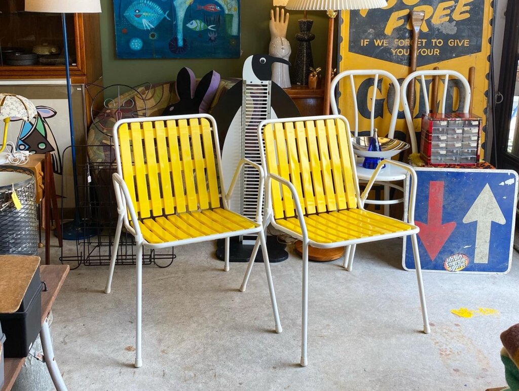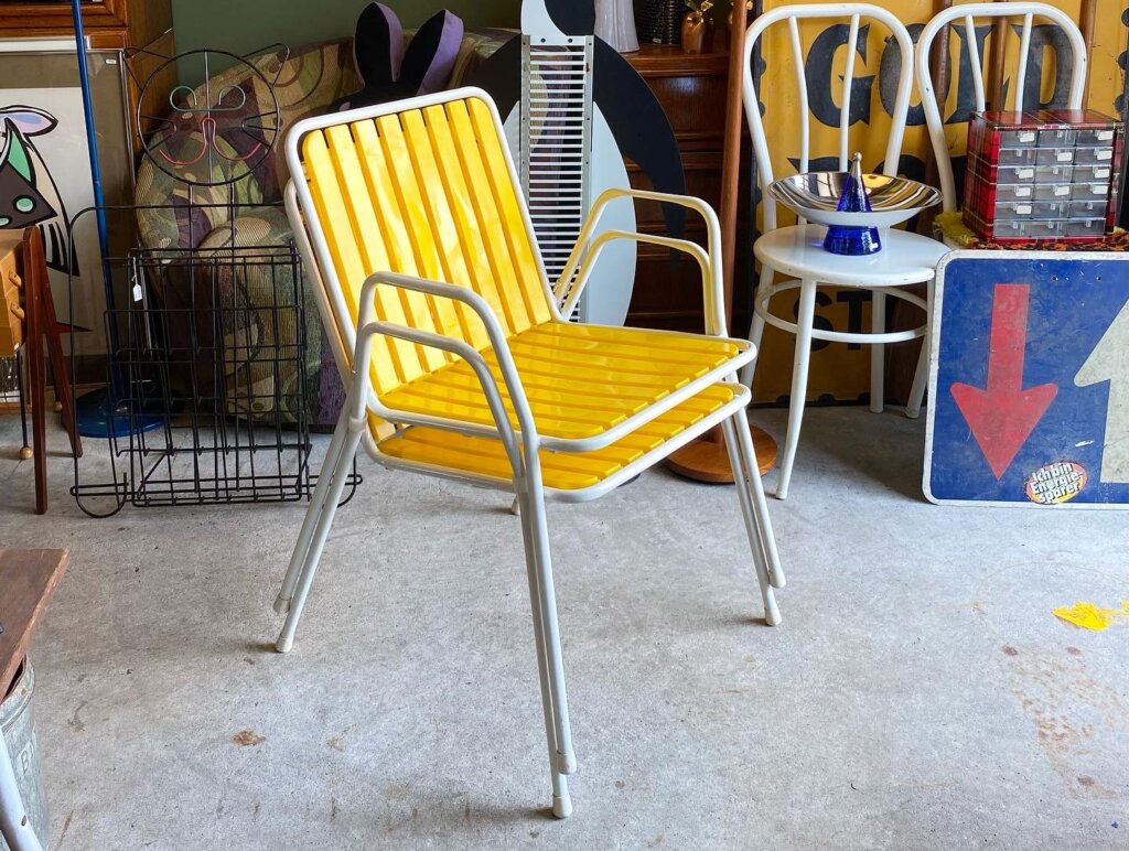 イエロー×ホワイトの可愛いアームチェアを掲載します。
