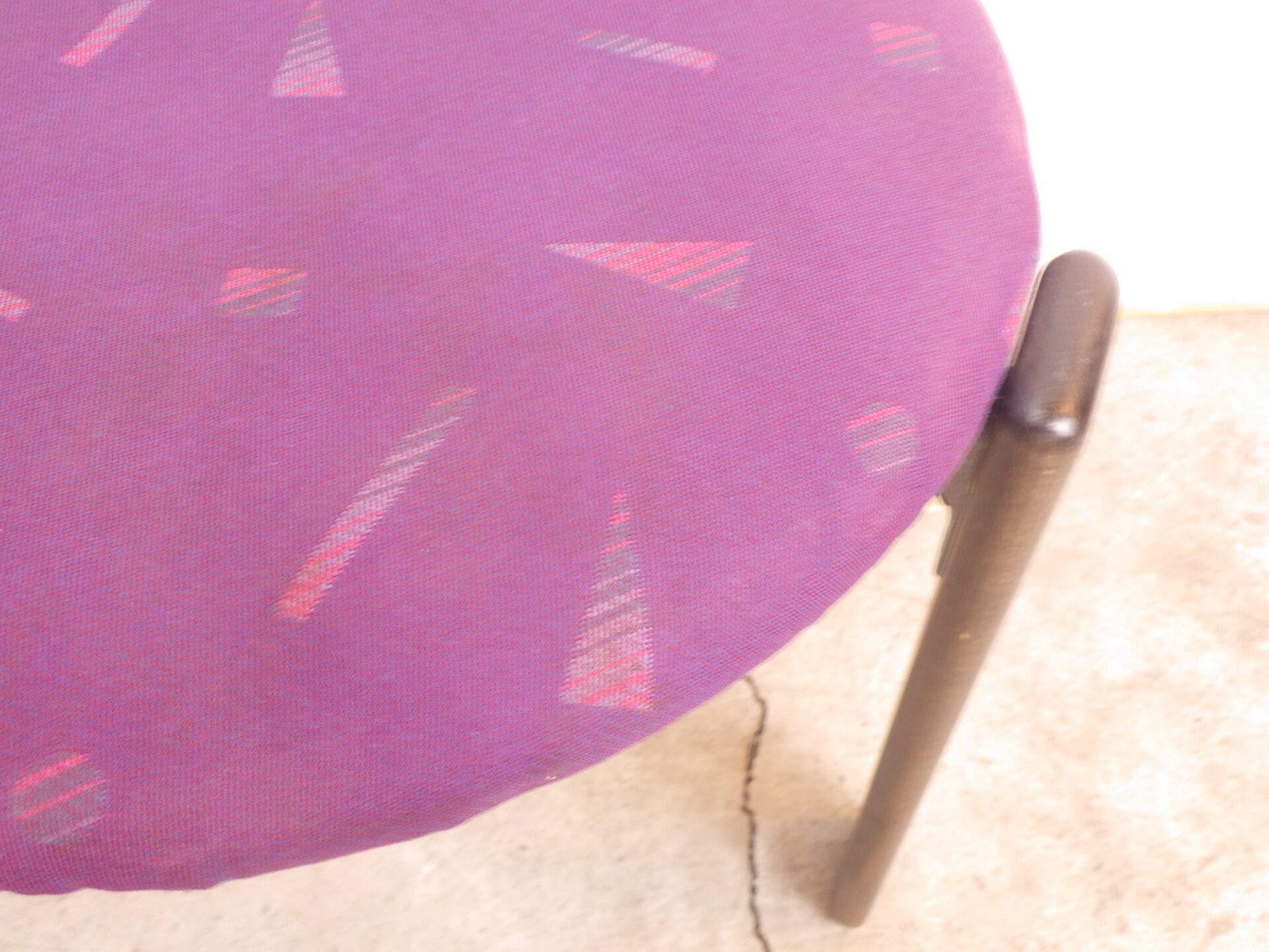 | ヨーロッパで買い付けました。 ドイツのKusch+Co製スタッキングスツールです。 デザイナーはスイスの工業デザイナーBruno Rey(ブルーノ・レイ)。 レイが1971年に発表したREY COLLECTIONは当時スイスで最も成功した椅子となりました。 ネジを使わない製造工程が高い評価を得ており、こちらのスツールもそれに違わず美しく頑丈な作りをしています。 生地は張り替えられているようですが、ポストモダンを思わせる幾何学模様と深みのあるパープルの生地がとても良い雰囲気で大人の可愛いを演出してくれるでしょう。 来客用に余分にストックしておくにも大変便利でおすすめしています。 |
