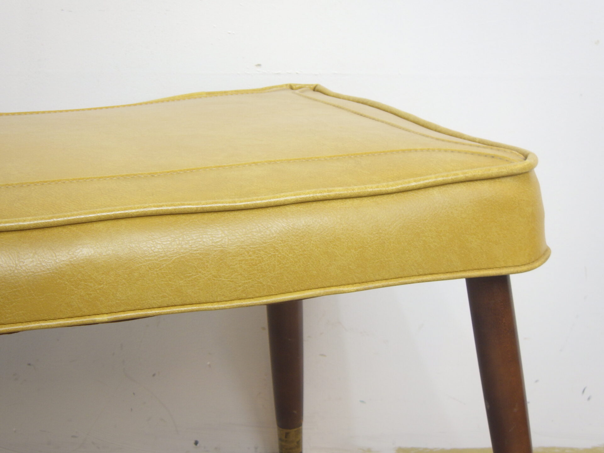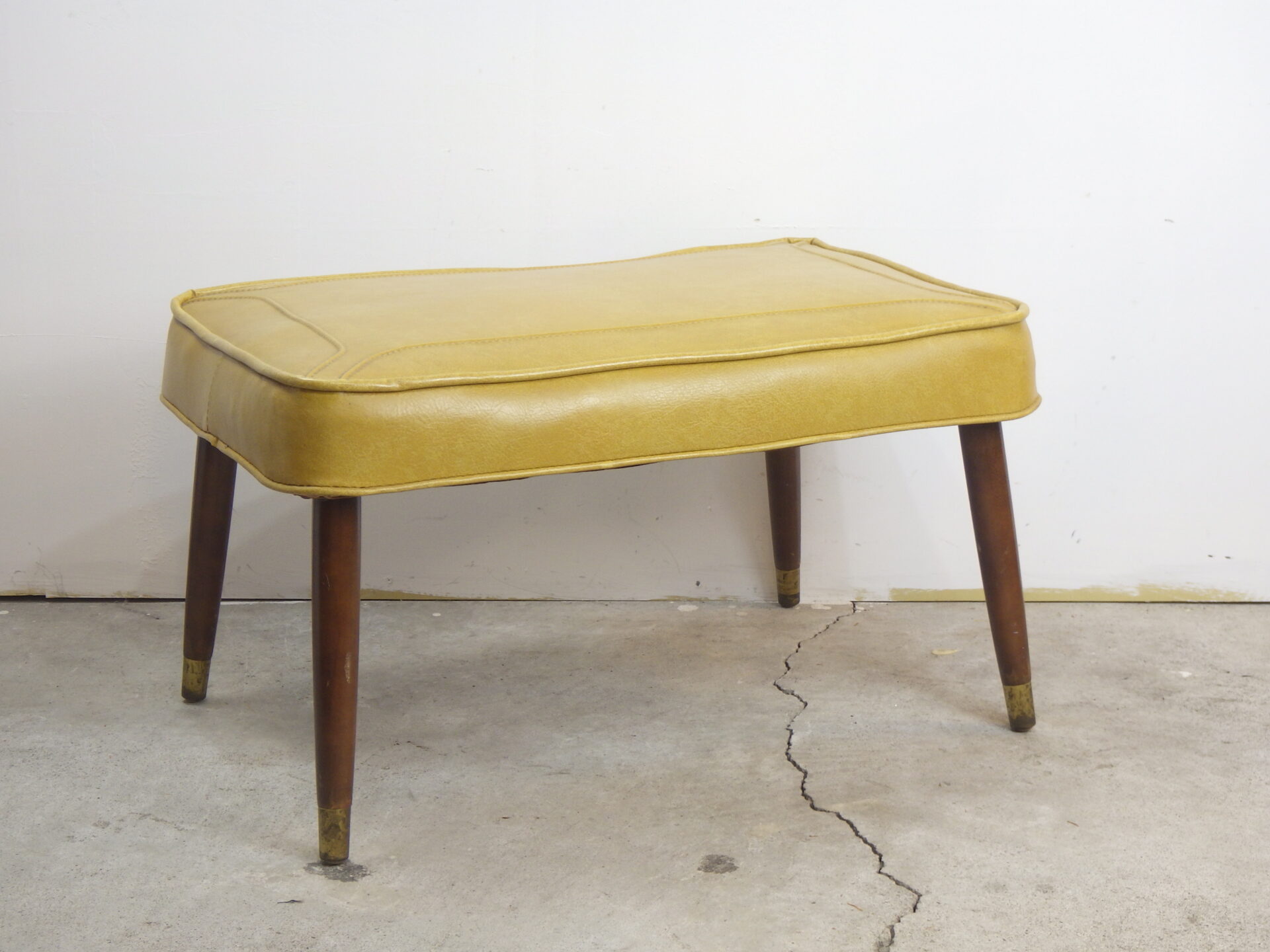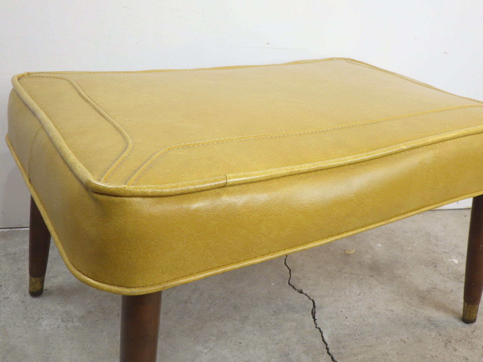 | アメリカで買い付けました。 ビンテージのオットマンです。 腰かけてスツール替わりにご使用いただいても、余裕のある座面の広さです。 ミッドセンチュリー家具は個性的なスタイルでありつつも、現代のアイテムと組み合わせても違和感なくレイアウト出来ます。 落ち着きのあるイエローが大変印象的なこちらのアイテム。空間のワンポイントとしてお部屋に招き入れたいアイテムですね。 ※脚部分はネジ式で取り外し可能です。 |
