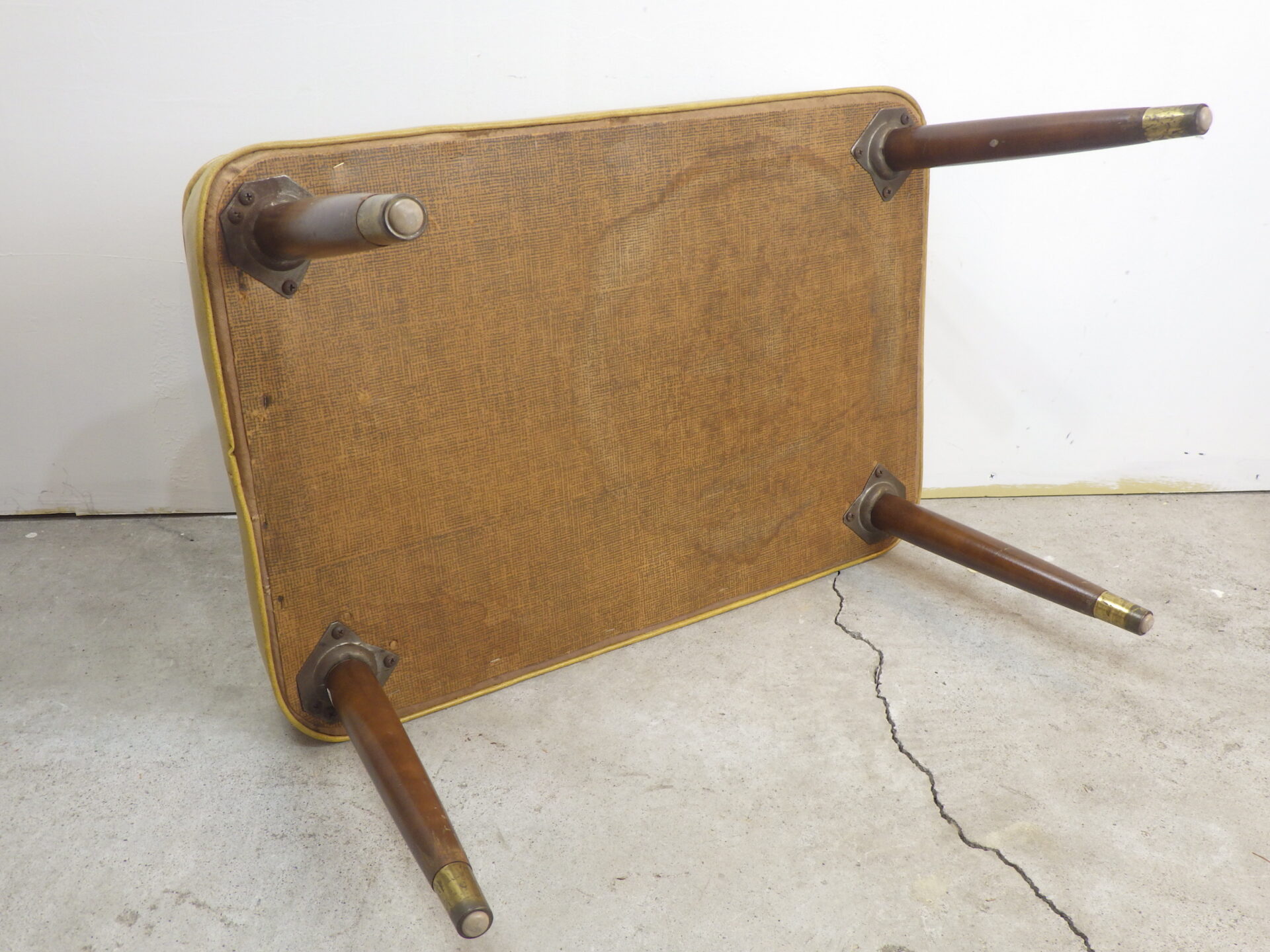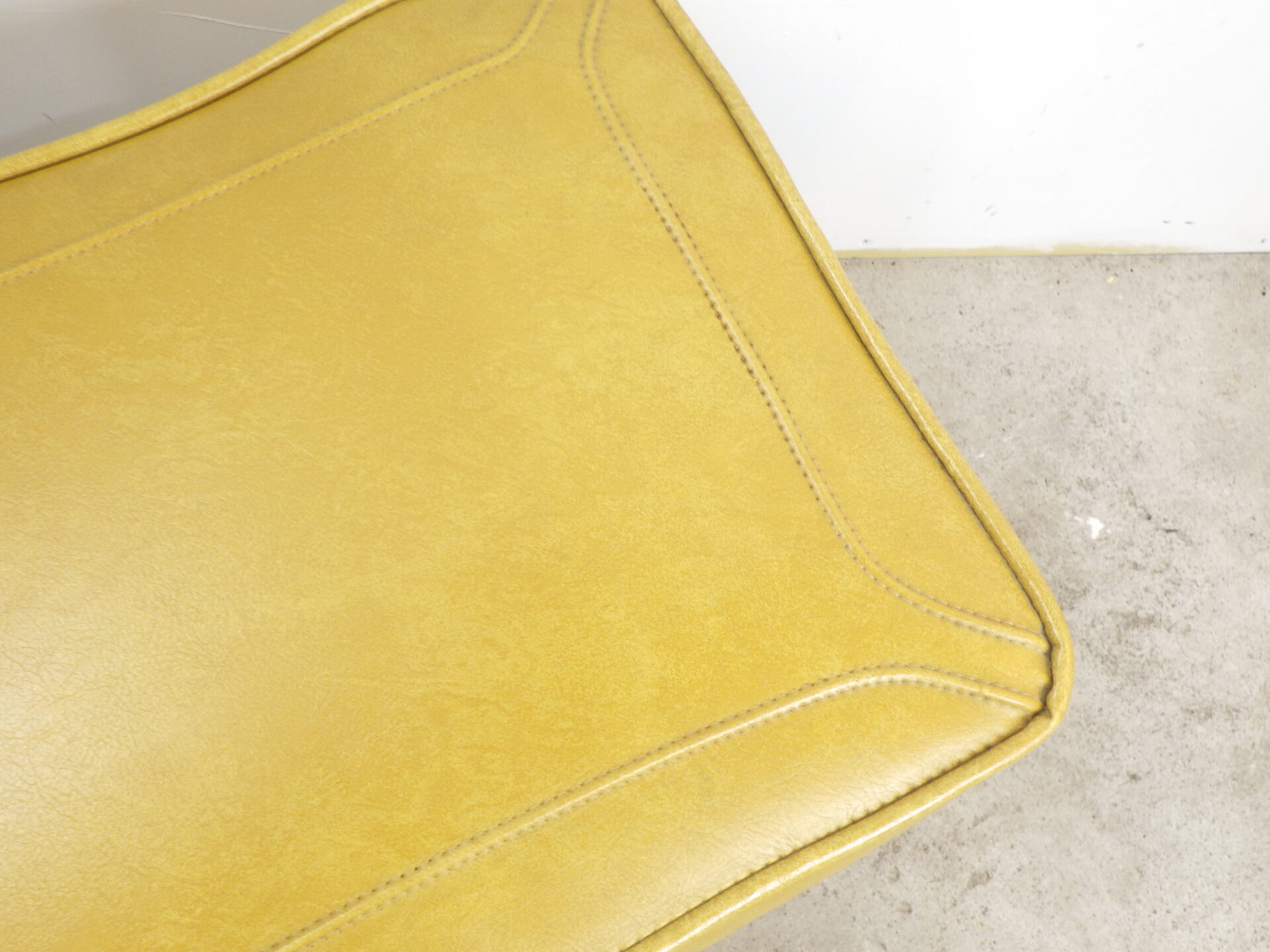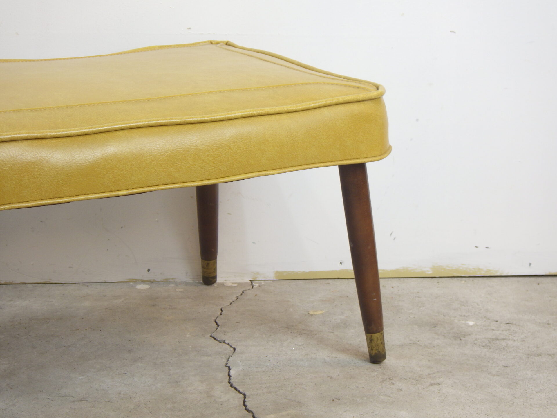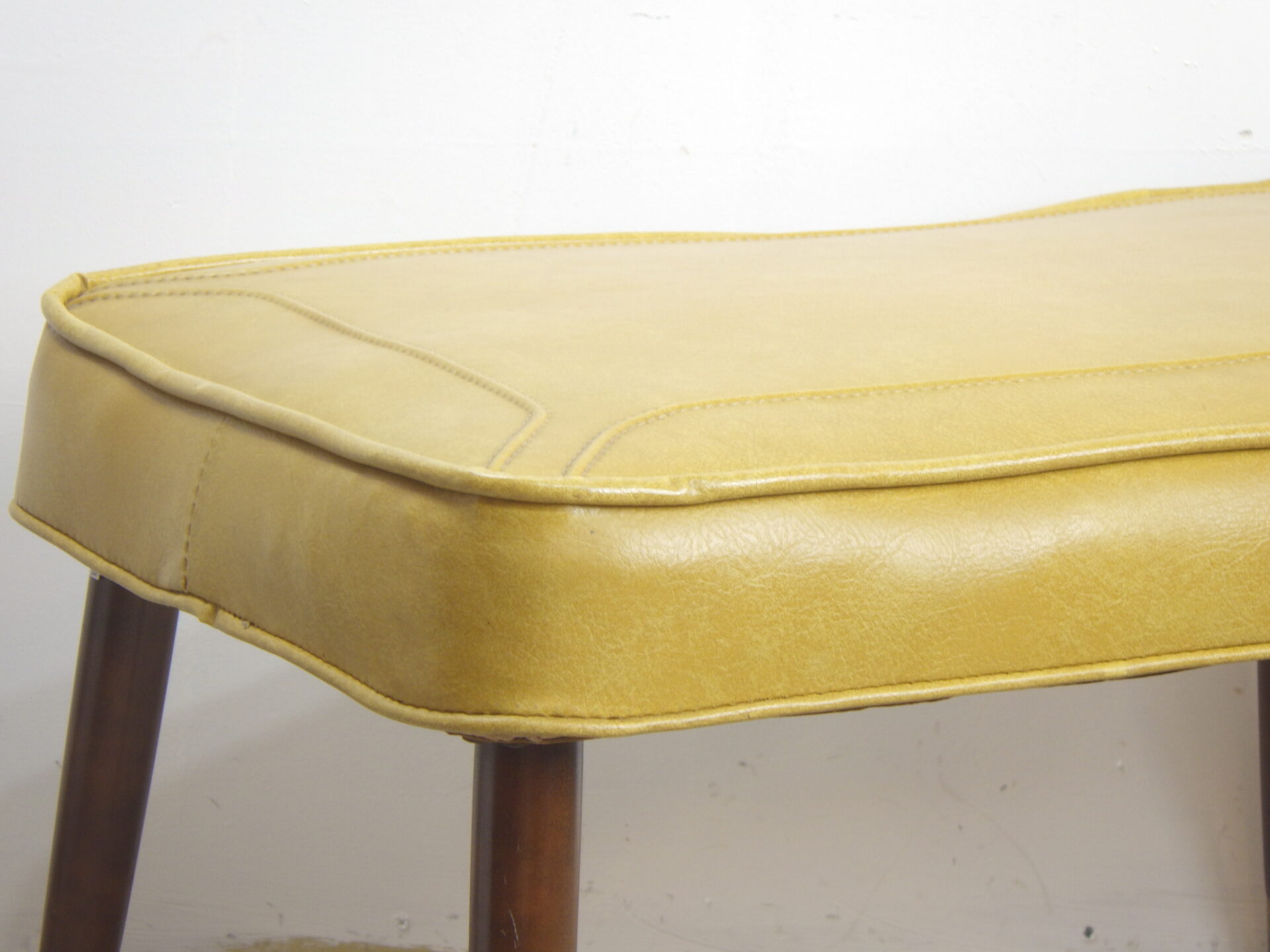 | アメリカで買い付けました。 ビンテージのオットマンです。 腰かけてスツール替わりにご使用いただいても、余裕のある座面の広さです。 ミッドセンチュリー家具は個性的なスタイルでありつつも、現代のアイテムと組み合わせても違和感なくレイアウト出来ます。 落ち着きのあるイエローが大変印象的なこちらのアイテム。空間のワンポイントとしてお部屋に招き入れたいアイテムですね。 ※脚部分はネジ式で取り外し可能です。 |