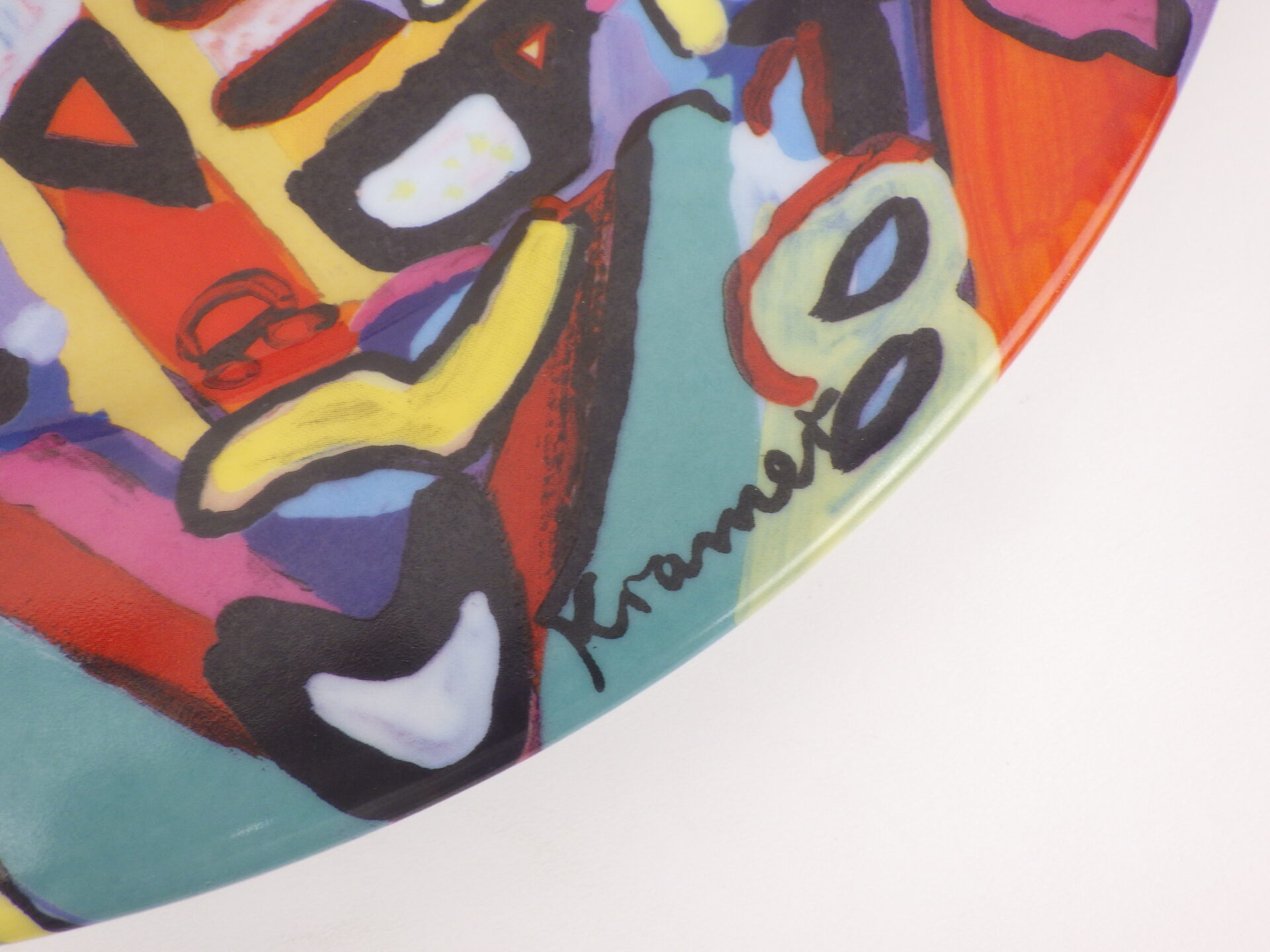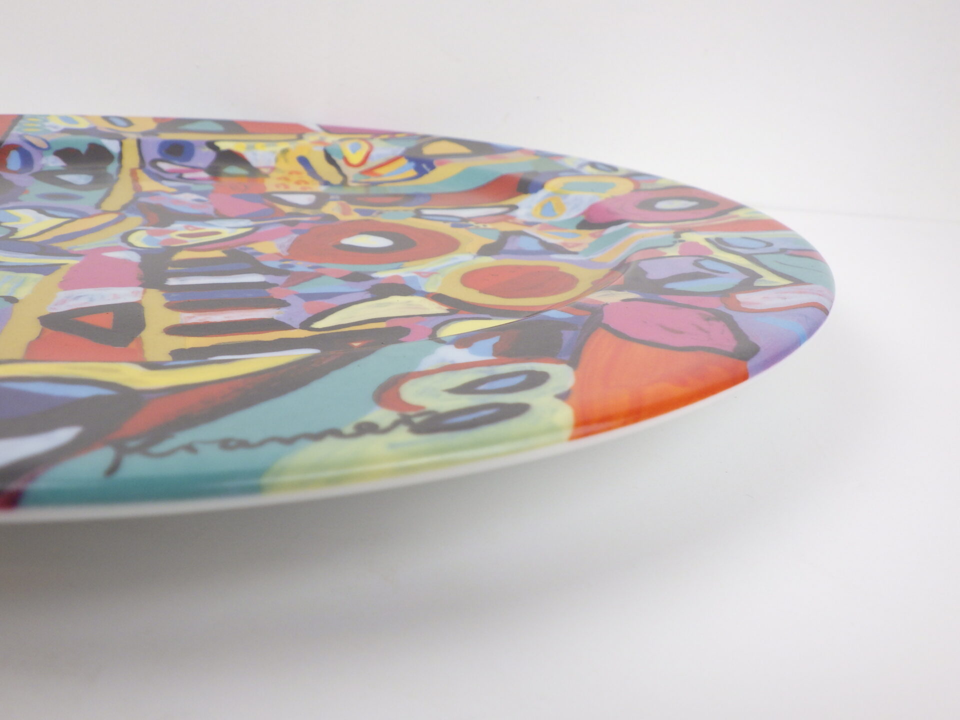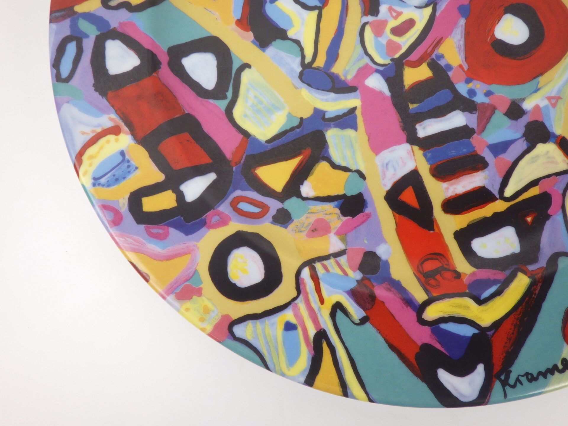 | アメリカで買い付けました。 スイスの老舗陶磁器メーカーLangenthal社のアートプレートです。 こちらは1947年生まれのスイス人アーティストSusi Kramerがデザインを手がけた限定プレートになります。 カラフルで独創的な作品の多い彼女らしいデザインですね。 絵画作品として飾ってもインテリアのアクセントになるアイテムです。 |