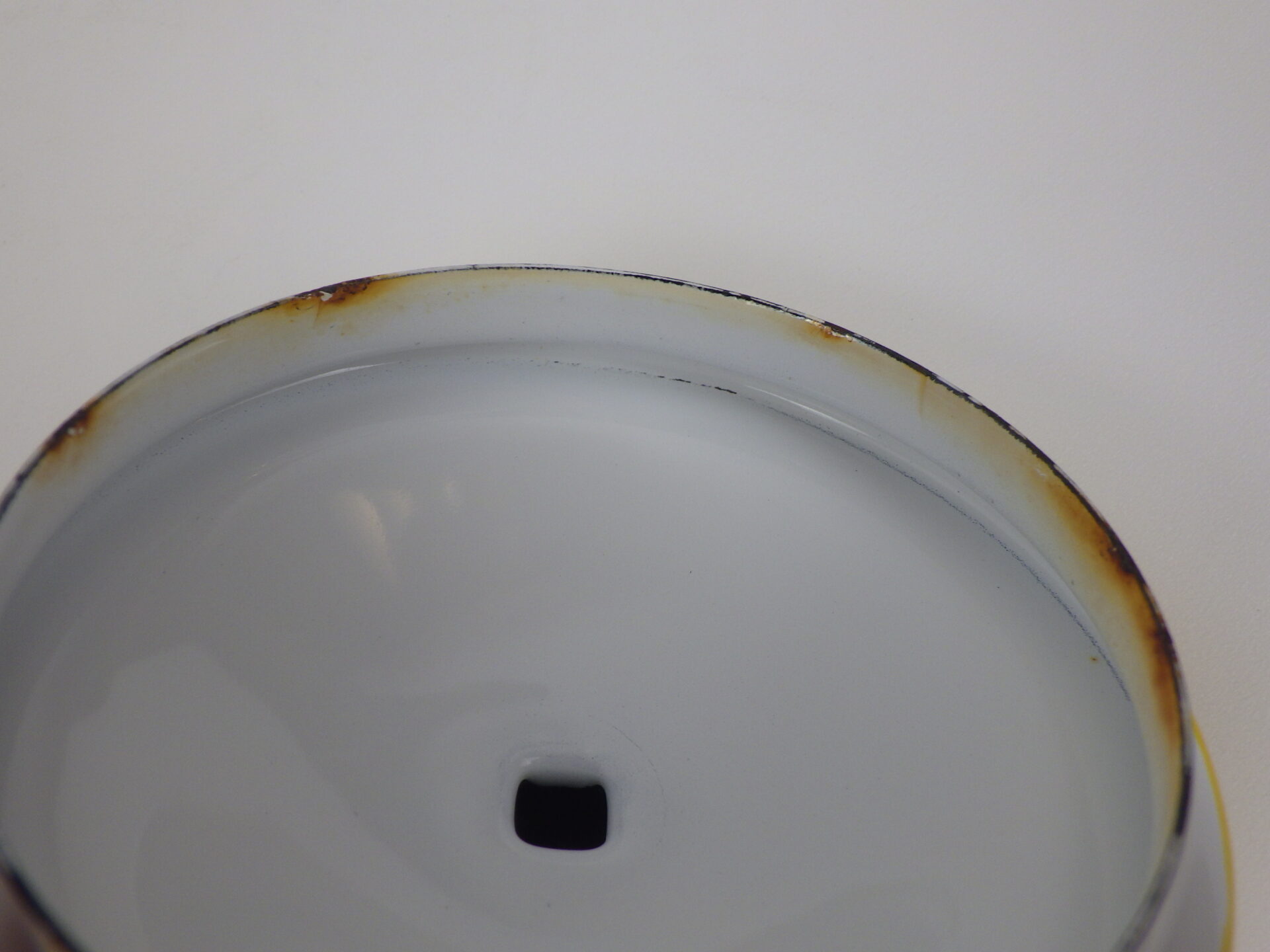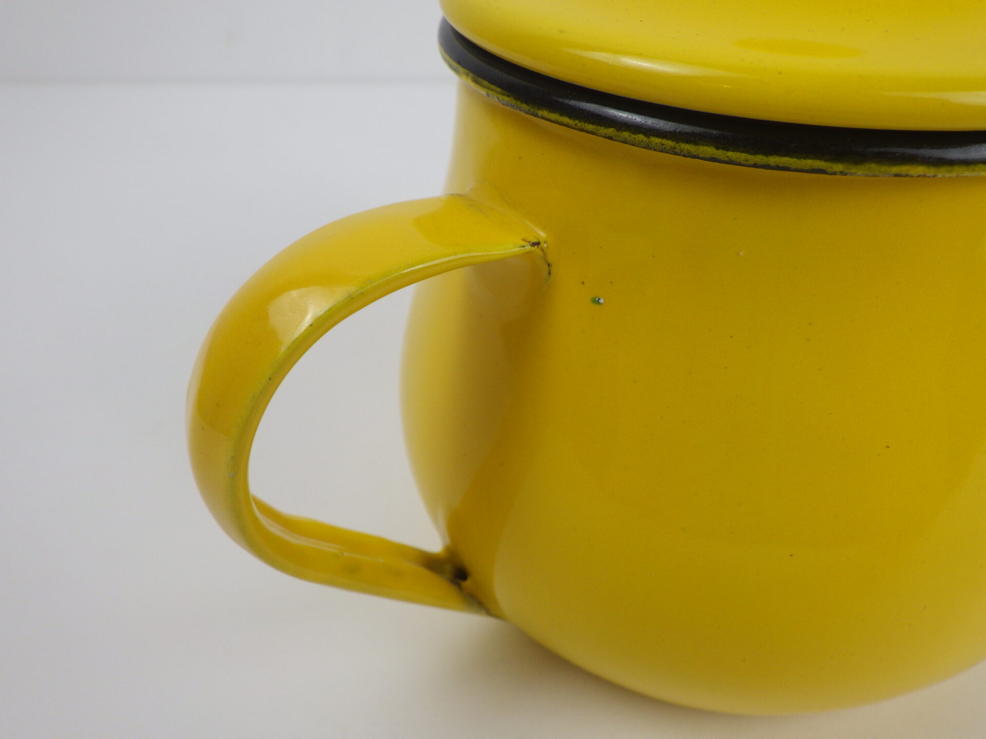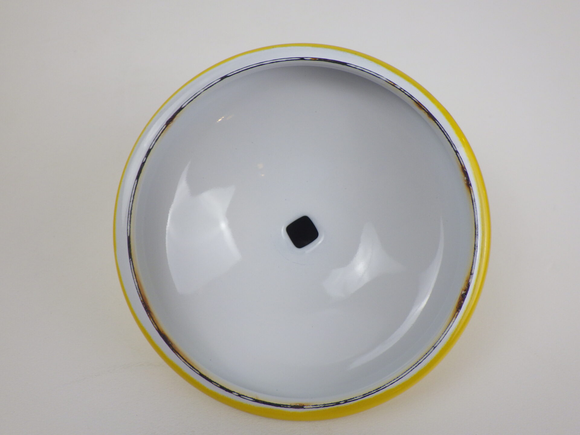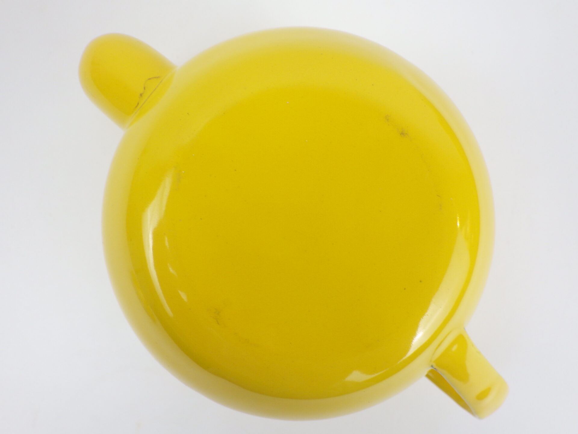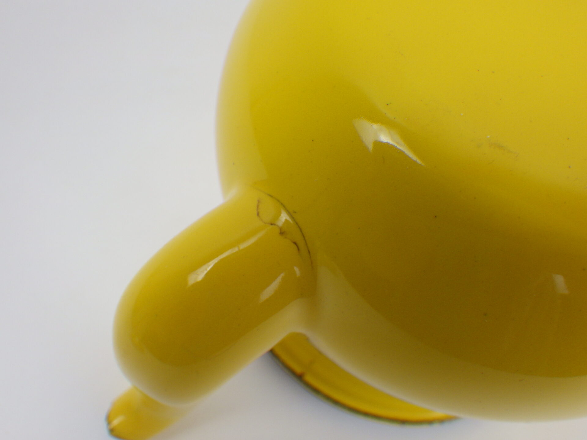 | アメリカで買い付けました。 ビンテージのエナメルティーポットです。 手のひらサイズの小ささと、発色の良いイエロー×ブラックのツートンカラーが可愛いですね。 昼下がりのティータイムに一人分の紅茶を沸かすのに良いサイズ感です。 ソロキャンプでも重宝しそう。 蓋をはずしてお花を生けてみたり、ディフューザースティックをさしてインテリアのアクセントにしてみても面白いかもしれません。 |