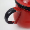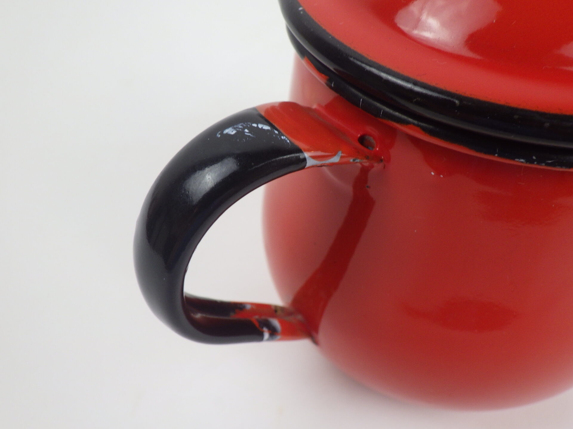 | アメリカで買い付けました。 ビンテージのエナメルティーポットです。 裏面に「JAPAN」の刻印がありますので、日本でアメリカ輸出向けに製造されていたもののようです。 手のひらサイズの小ささと、発色の良いレッドー×ブラックのツートンカラーが可愛いですね。 昼下がりのティータイムに一人分の紅茶を沸かすのに良いサイズ感です。 ソロキャンプでも重宝しそう。 蓋をはずしてお花を生けてみたり、ディフューザースティックをさしてインテリアのアクセントにしてみても面白いかもしれません。 |