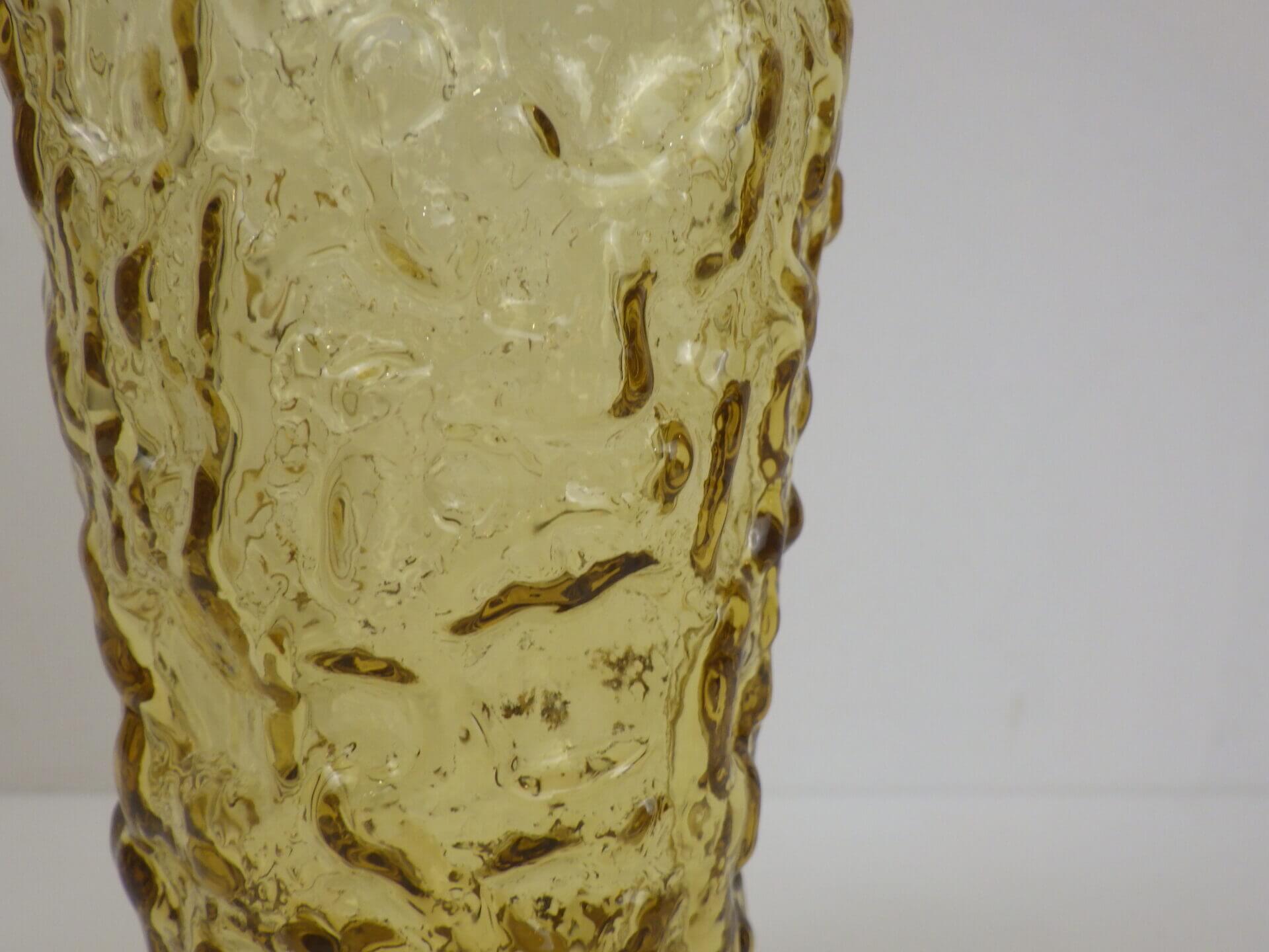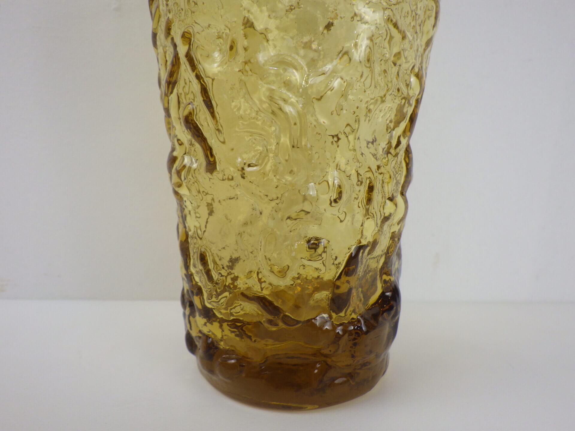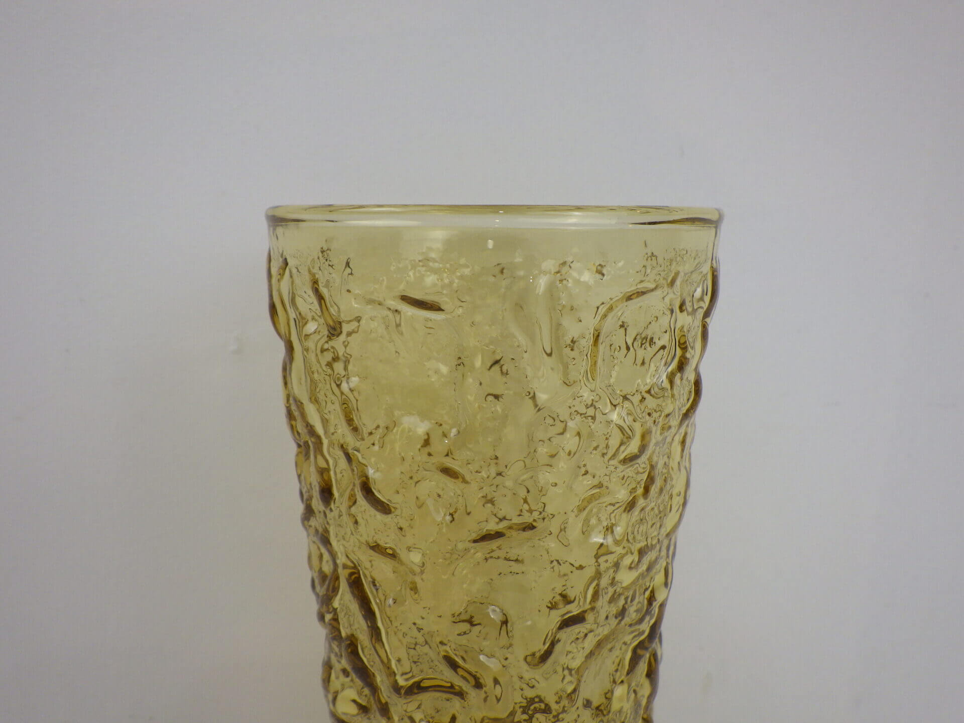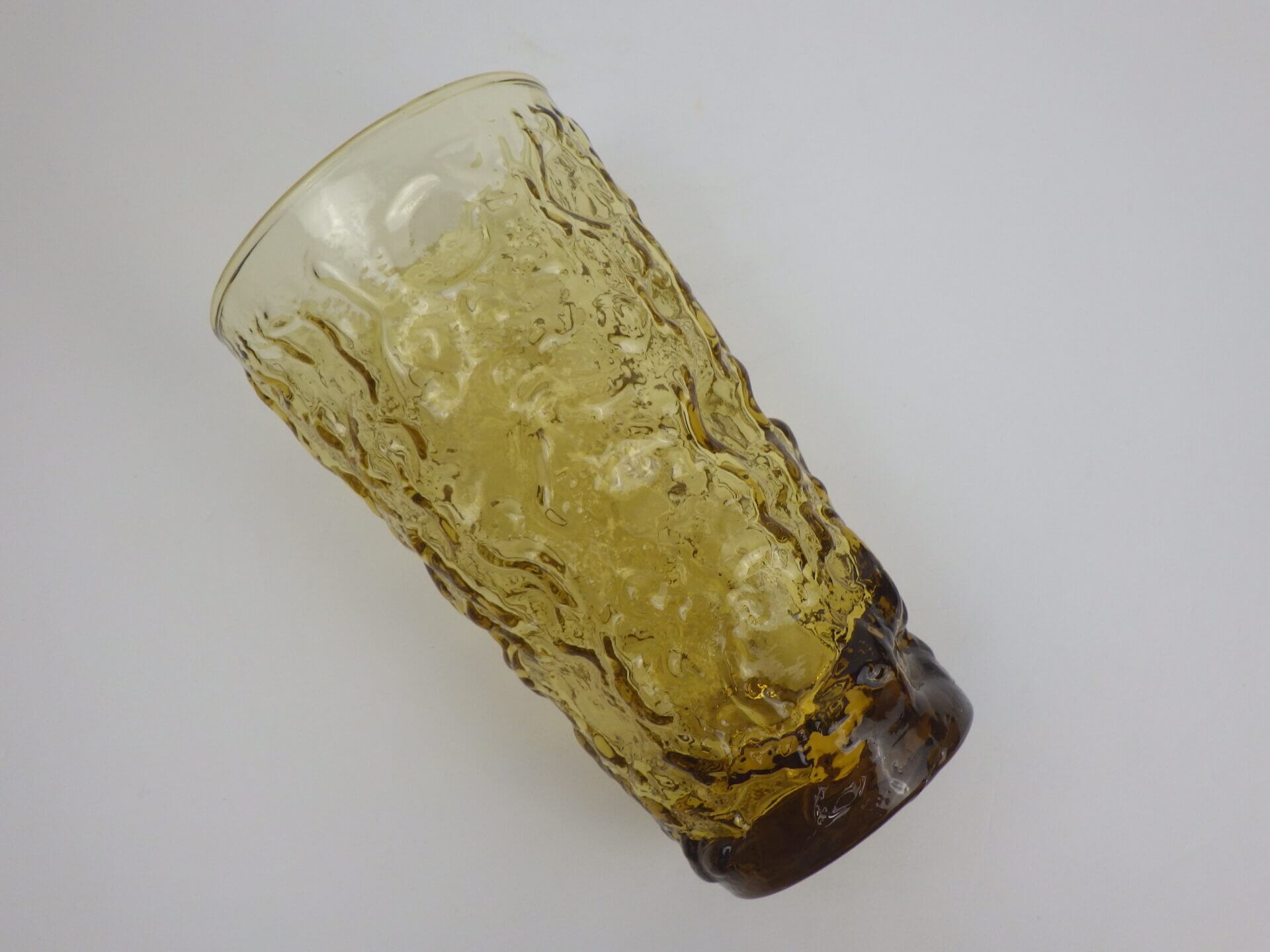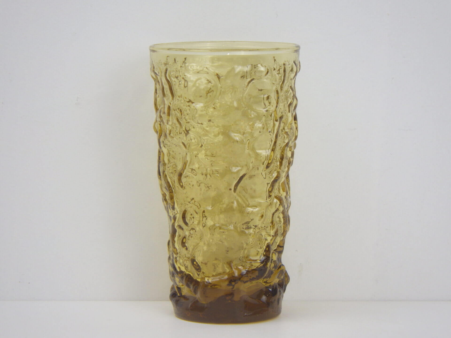 | アメリカで買い付けました。 ファイヤーキングでお馴染みのアンカーホッキング社製、ビンテージタンブラーです。 ゴツゴツしたテクスチャーによって、アンバーの濃淡が変わって見えます。 当時は「ハニーゴールド」というカラーで販売されていたようです。 名前の通り、蜂蜜がとろりと溶け出したような印象のグラスですね。 花瓶替わりにお花を生けたりしても可愛く使えそう。 レトロ好きさんにも人気のシリーズです。 |