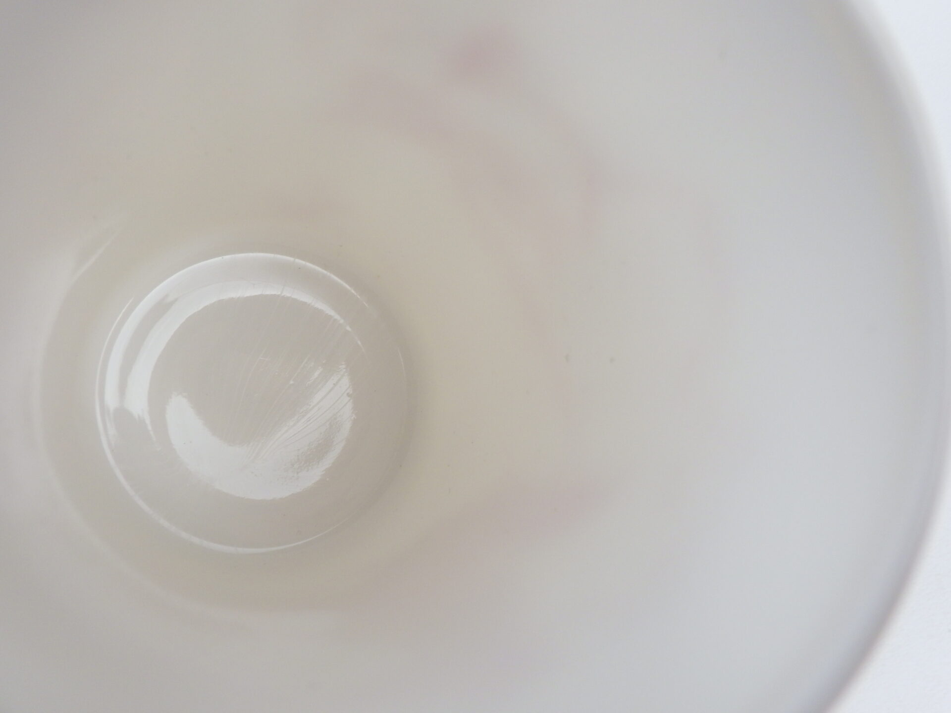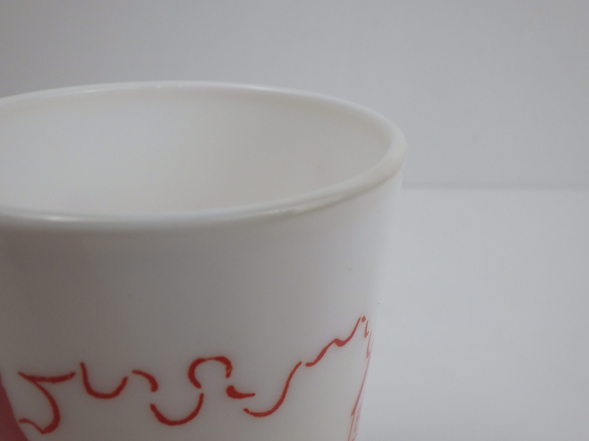 | condition | ミルクガラス特有の、製造時よりの劣化線、ヘアラインなどあります。 リム、ボトムにわずかなスレ、着色がありますが、ワレ、カケ等の目立ったダメージはなく、良い状態です。 |