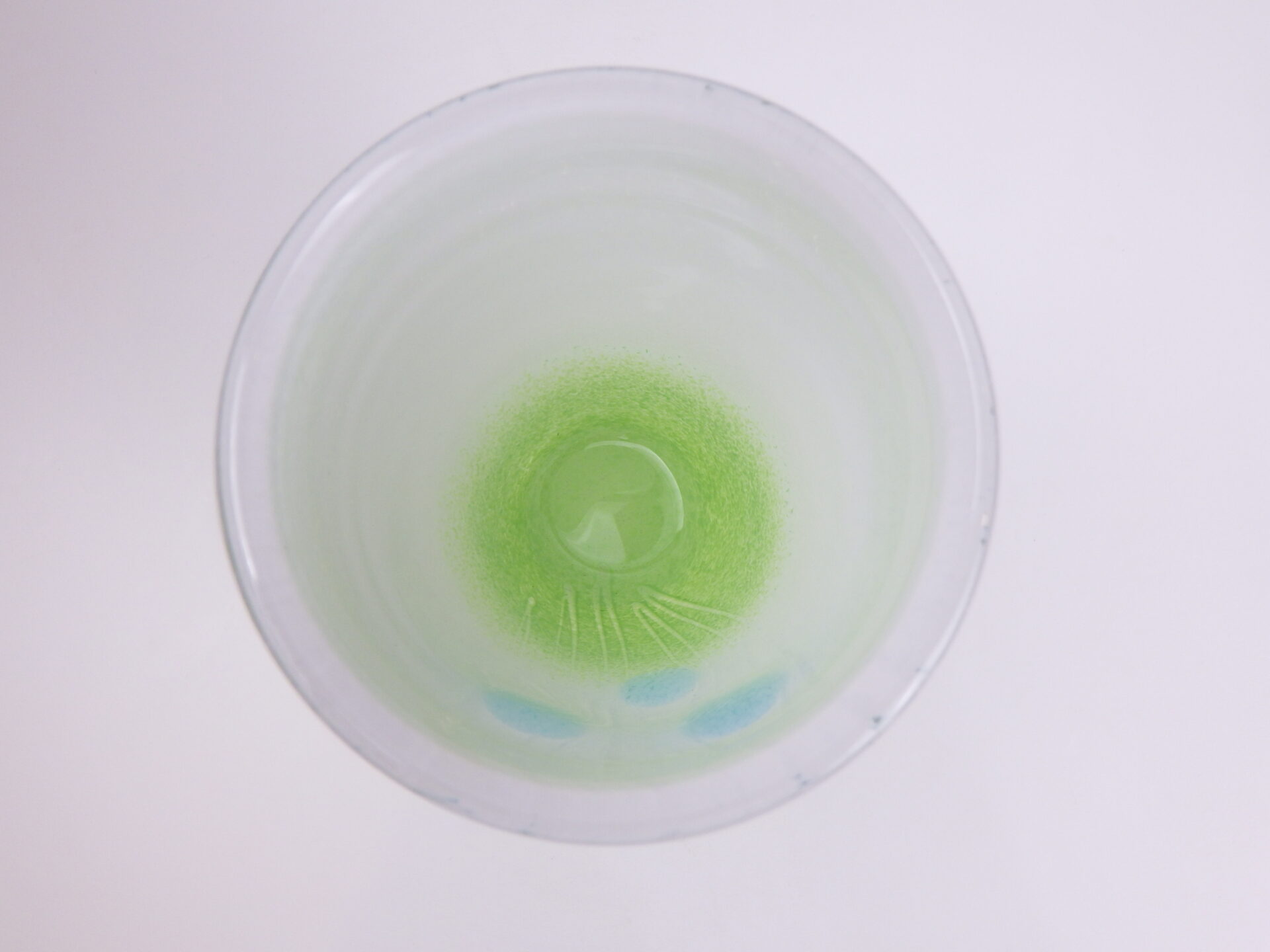 | アメリカで買い付けました。 淡いカラーリングの可愛いガラスのフラワーベースです。 ブルーの三つのドットが印象的ですが、良く見ると地のホワイトも模様として入っているため、見る角度によって様々な表情を見せてくれるアイテムです。 生花でもドライフラワーでも似合いますし、何も飾らずともこちらのアイテムだけで絵になるので、インテリアのアクセントとして、または店舗什器として、活躍してくれそうです。 |