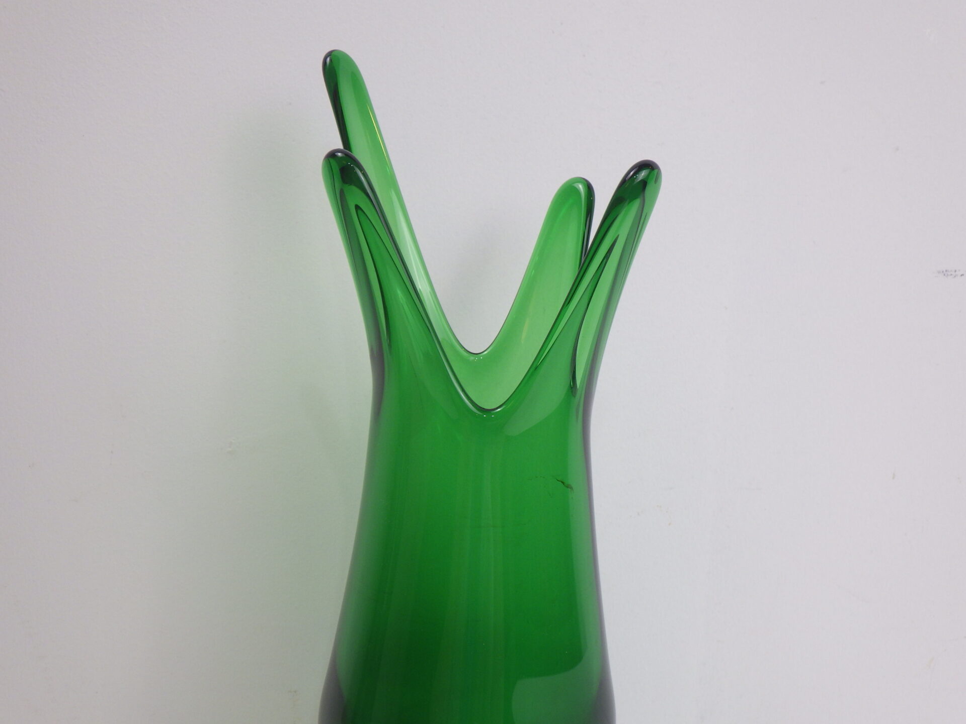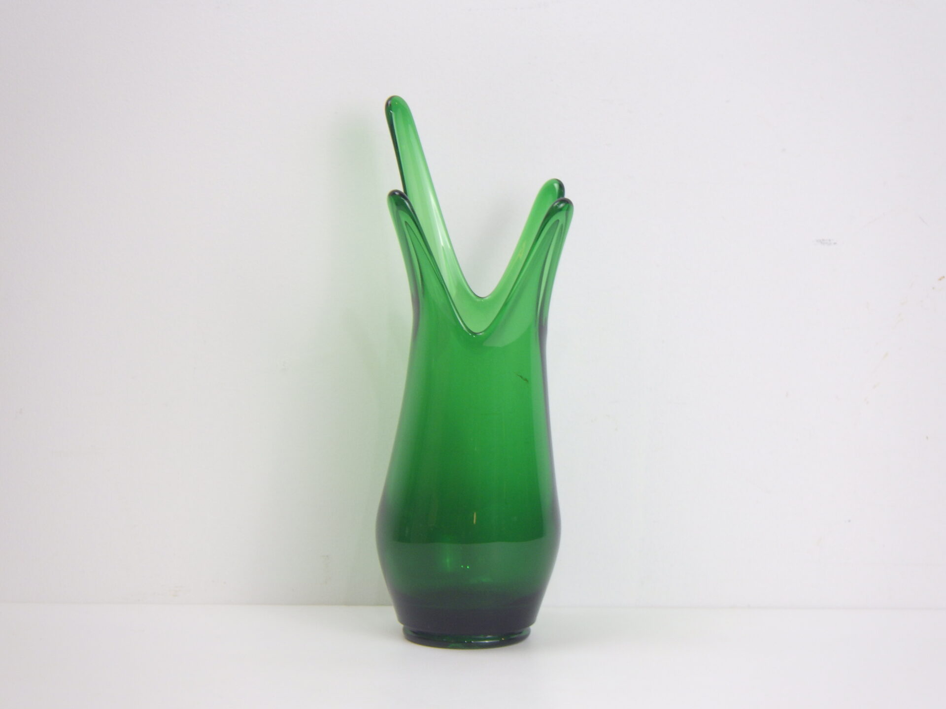 | アメリカで買い付けました。 鮮やかなグリーンが美しいビンテージのフラワーベースです。 まるで水が跳ねたようなアートなデザインで、見る角度によってかなり印象も変わってきます。 空間に合わせて置き方を変えてみるのも良さそう。 シンプルなお花でも華やかに演出してくれそうなので、どんなお花を飾るのか想像するのが楽しくなるアイテムです。 |