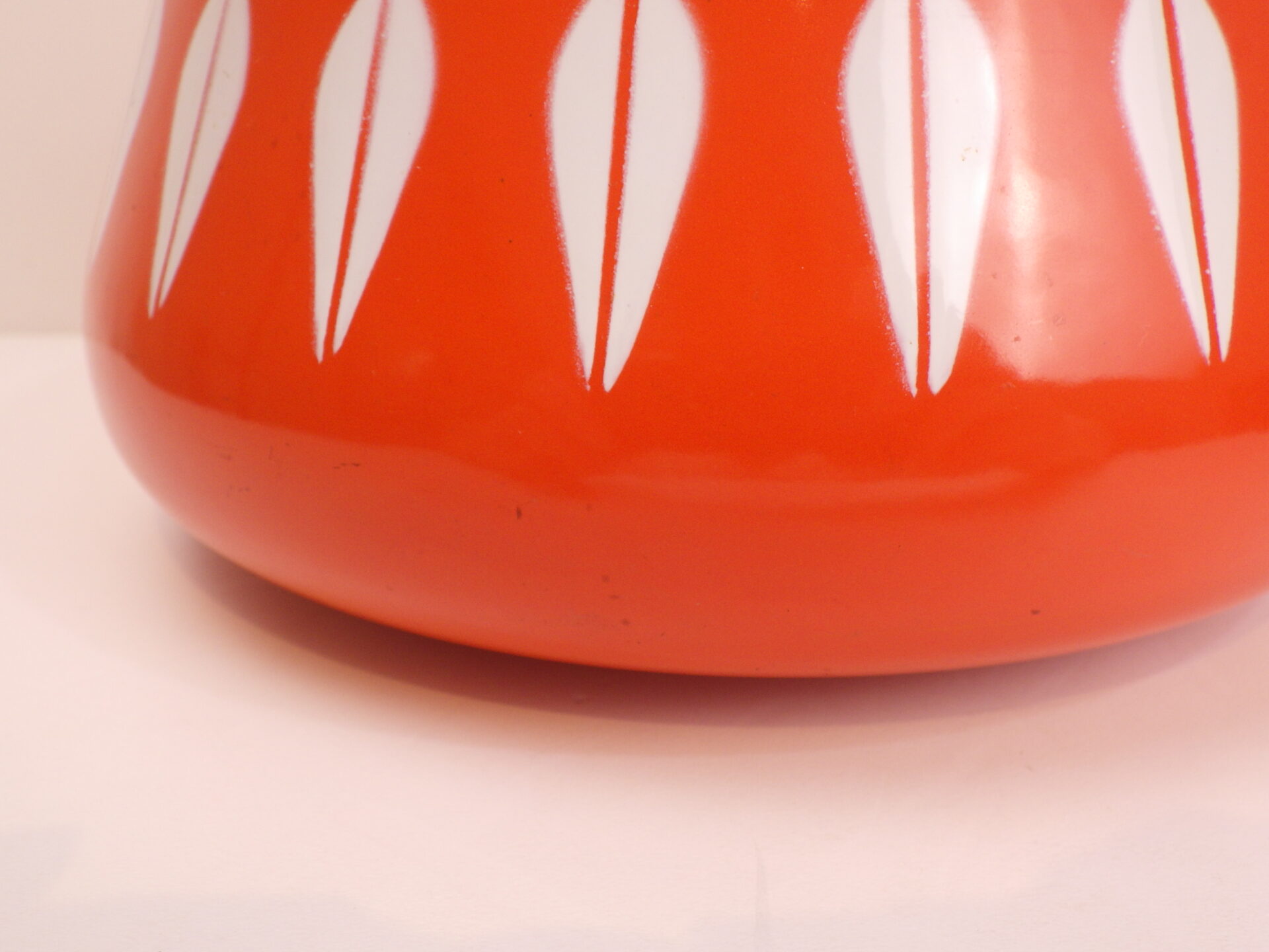 | キャサリンホルムはノルウェーで1827年創業、1907年にエナメル製のキッチン用品の生産をスタートしました。 キャサリンホルムの代表作、Lotus(ロータス)シリーズは、フォルムデザインを「Grete Prytz Kittelsen」が、デコレートデザインを「Arne Clausenn」が手掛けました。 今なお人気が高く、アメリカや日本にも多くのコレクターが存在します。 こちらはもともとフォンデュ鍋として作られ、ウォーマー(土台)が付いていたタイプです。 北欧らしいカラフルで可愛らしいデザインは、キッチンをパッと明るくしてくれるので、毎日のお料理が楽しくなりますね。 キャンプなどアウトドアに持ち出すのにもおすすめです。 |