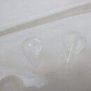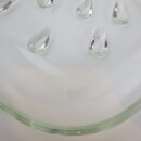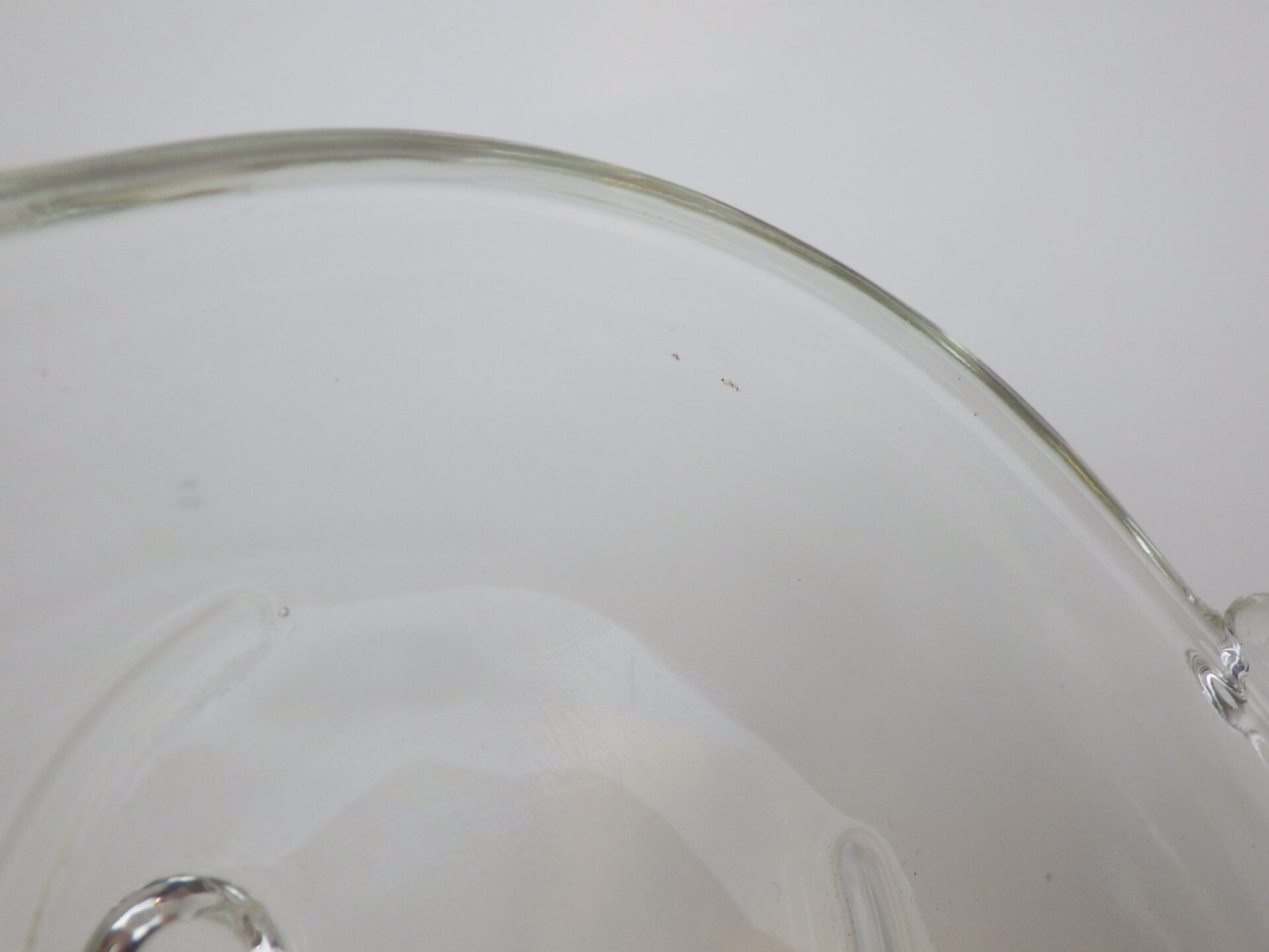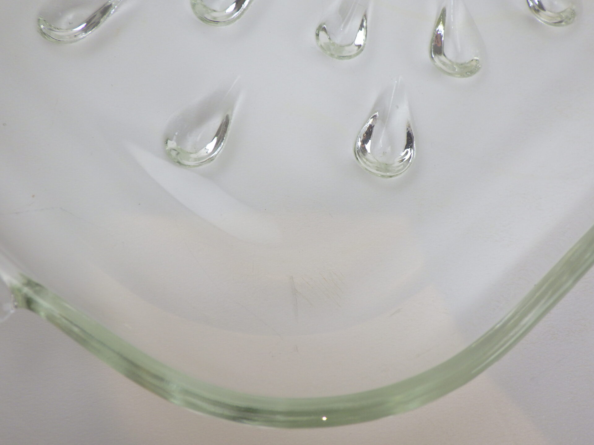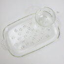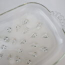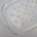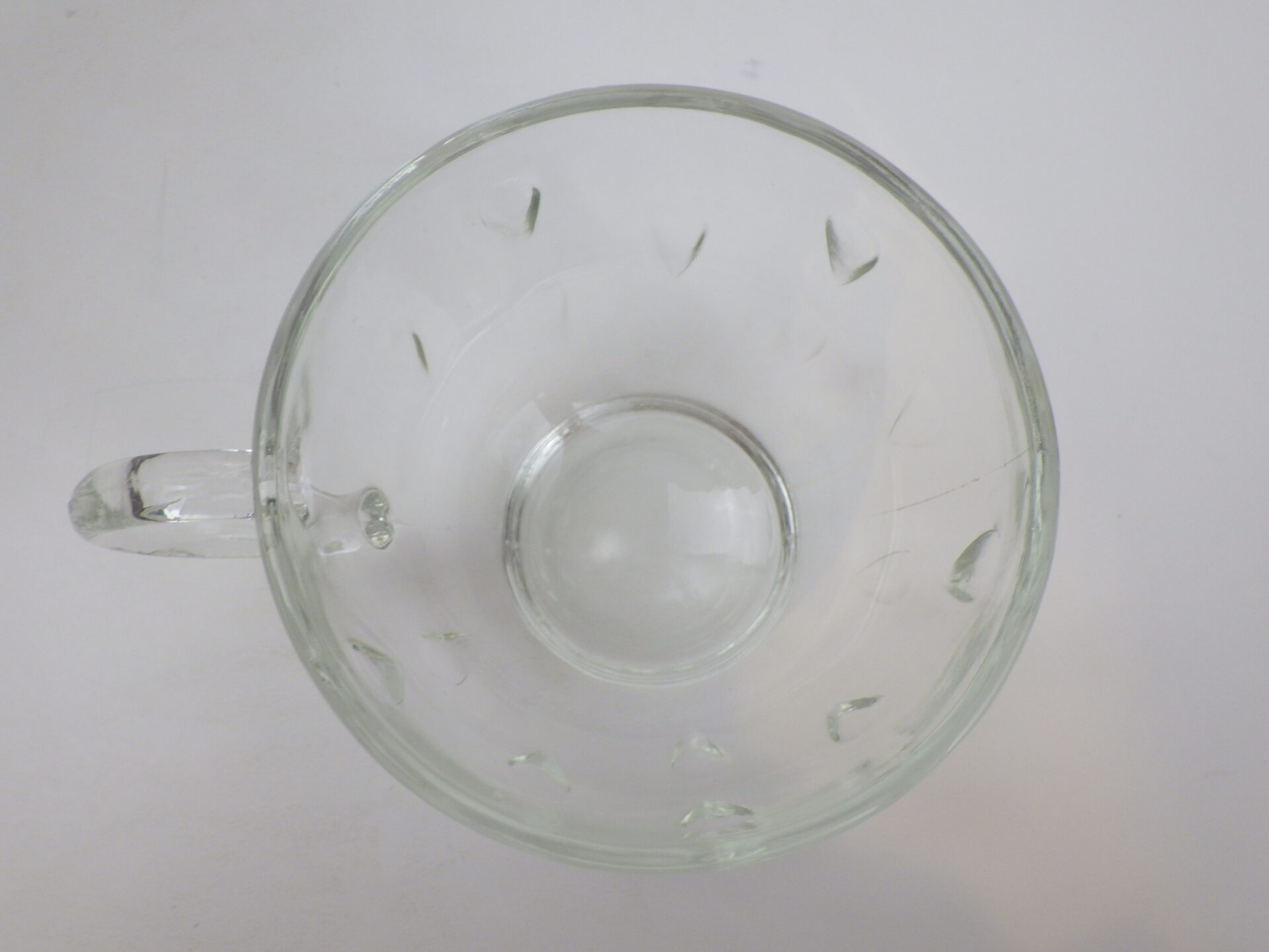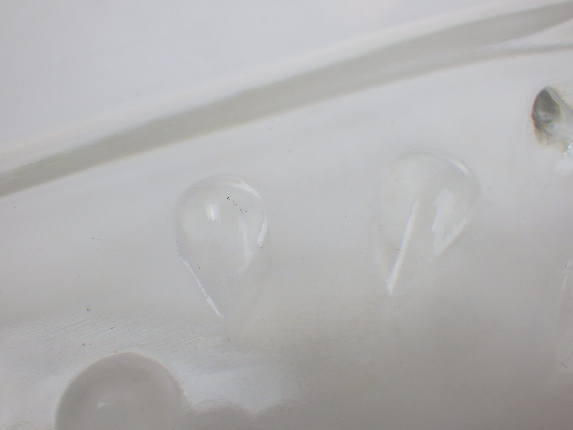 | ヘーゼルアトラス社のティアドロップ、スナックセットです。 ヘーゼルアトラスと言えばカラフルで可愛らしいプリントのミルクガラスを思い浮かべる方も多いかと思いますが、このようなクリアガラスのアイテムも沢山製造していました。 こちらはその名の通り、涙のしずくの形をしたエンボスが、カップ、プレートそれぞれに施されています。 サンドイッチなどの軽食の他、素麺などを盛り付けたり、ケーキとハーブティーでティータイムなんてのも良さそう。 プレートの両サイドに持ち手もついているので、テーブルに運ぶときに便利です。 日本ではあまり馴染みのないスナックセットですが、アレンジがきくので様々な場面で活躍してくれるアイテムです。 |