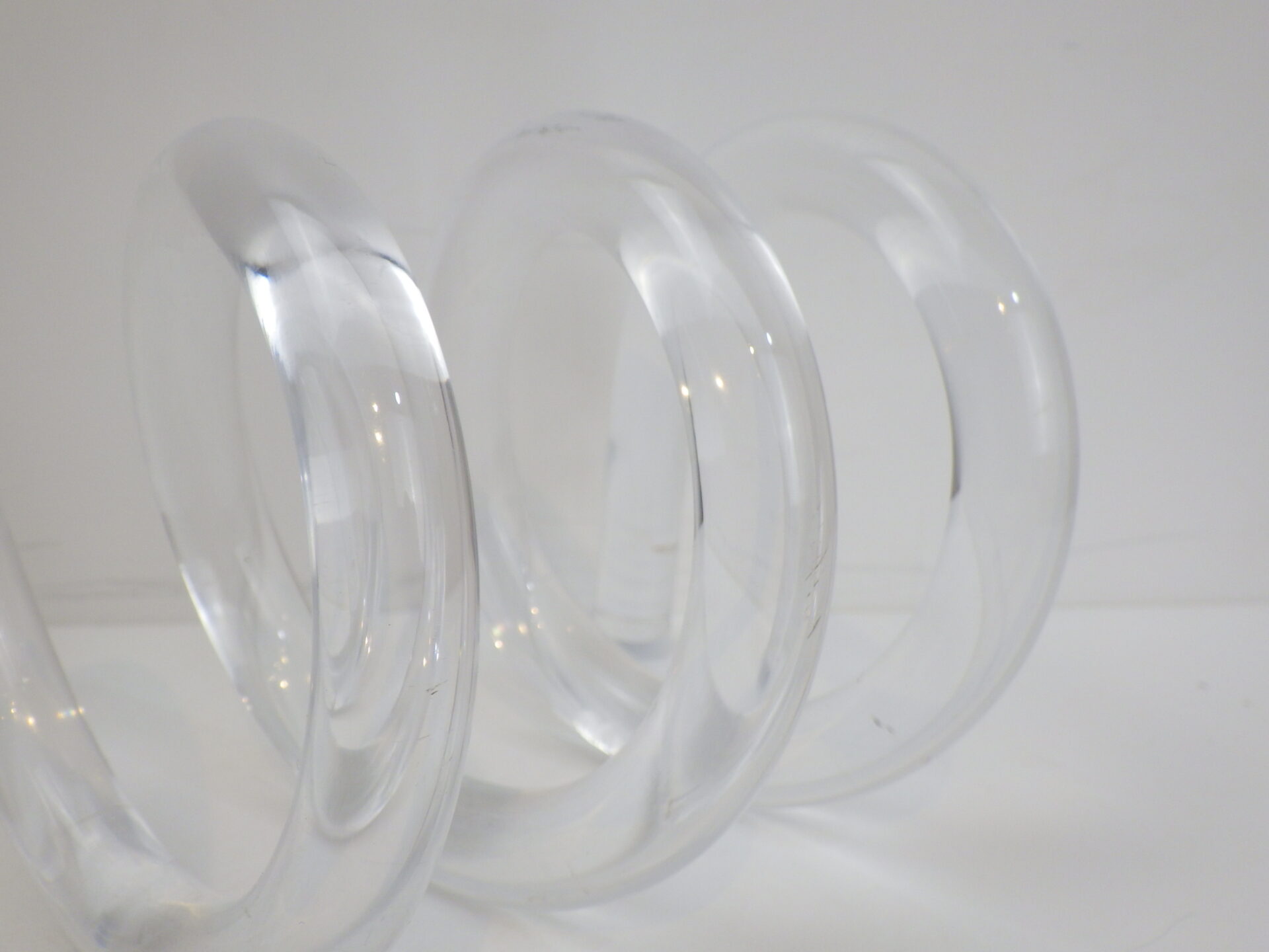 | アメリカで買い付けました。 ビンテージのレターホルダーです。 スパイラルデザインが斬新ですが、透け感のある素材感がイマドキで、様々なテイストの空間にマッチしそう。 手紙やはがきの他に、名刺やちょっとした書類などまとめておくのにも便利そう。 インテリアとしての存在感も抜群なので、個性的なアイテムをお探しの方におすすめなアイテムです。 |