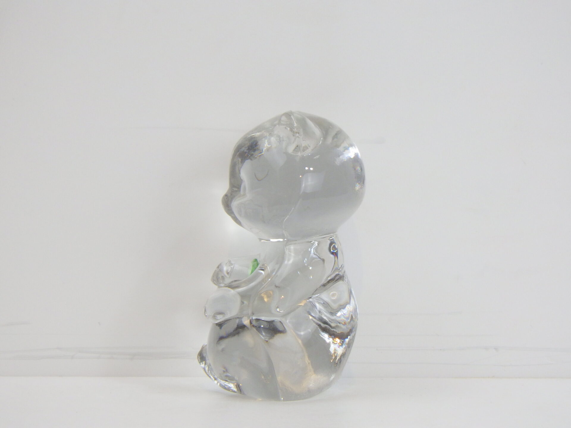 | アメリカで買い付けました。 Fentonの可愛いガラスのクマです。 胸には八月の誕生石であるペリドットに見立てたハート形のスワロフスキークリスタルがあしらわれています。 1905年に創業したFentonは、アメリカの老舗ガラスブランドです。 世界が機械による大量生産にシフトする中、手作りガラスに強いこだわりを持ち続け、世界中にコレクターが存在します。 こちらのクマはとても愛らしい表情をしており、むっちりしたボディも可愛いですね。 オリジナルのタグも付属しています。 手のひらサイズなので、ちょっとしたスペースでも楽しんでいただけるアイテムです。 |