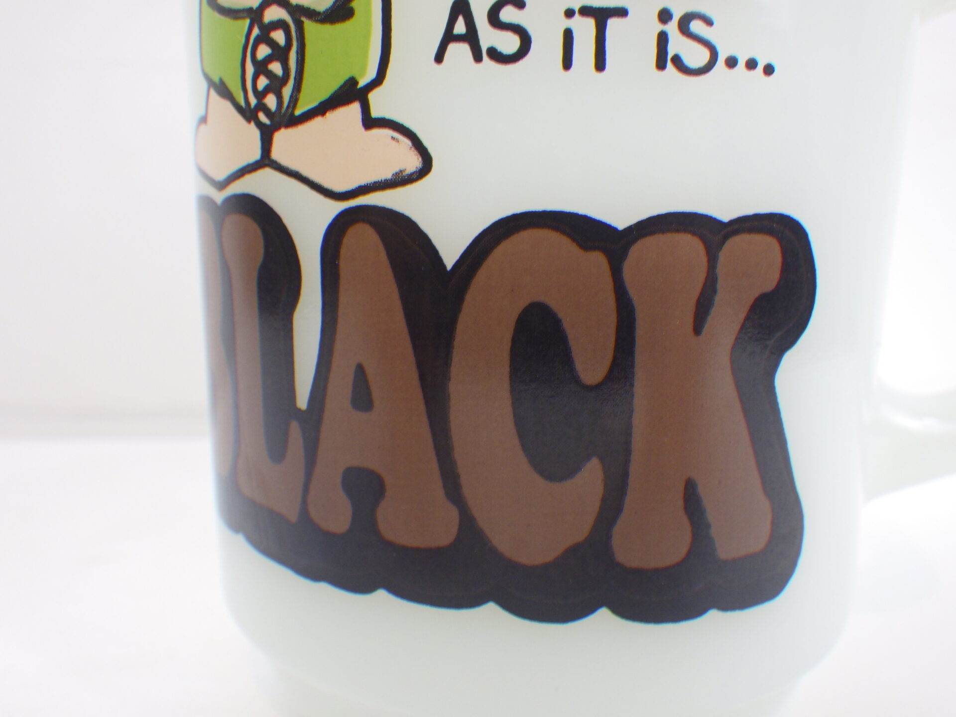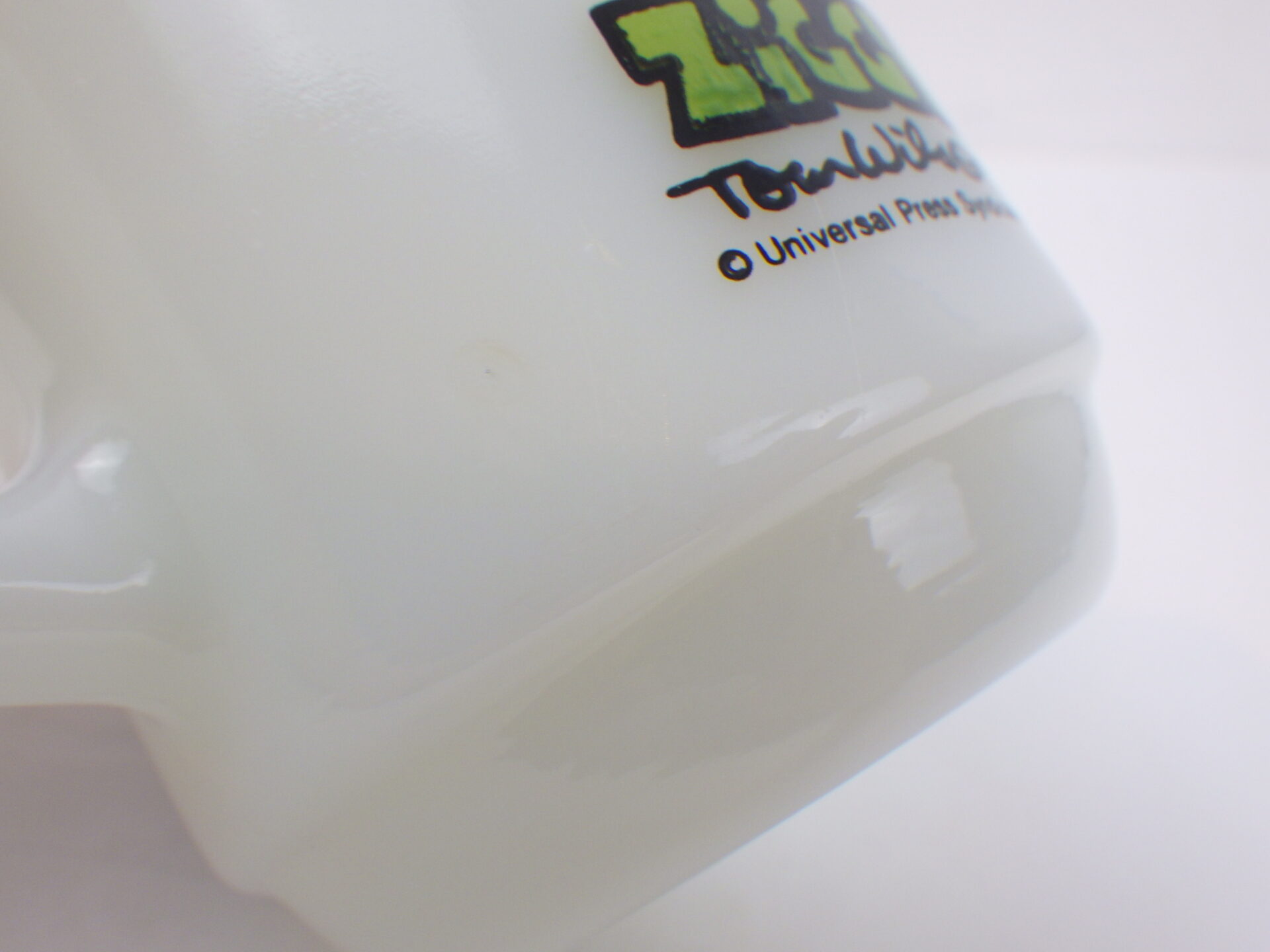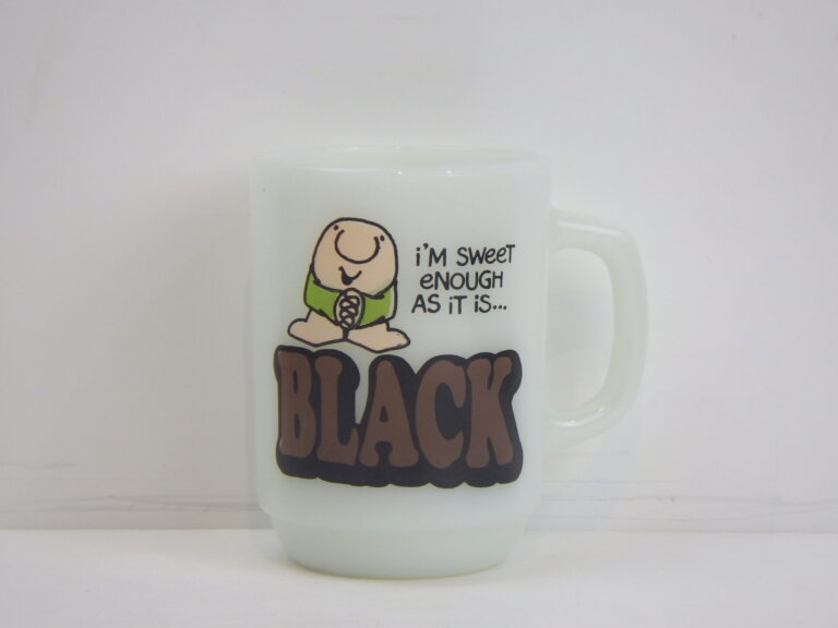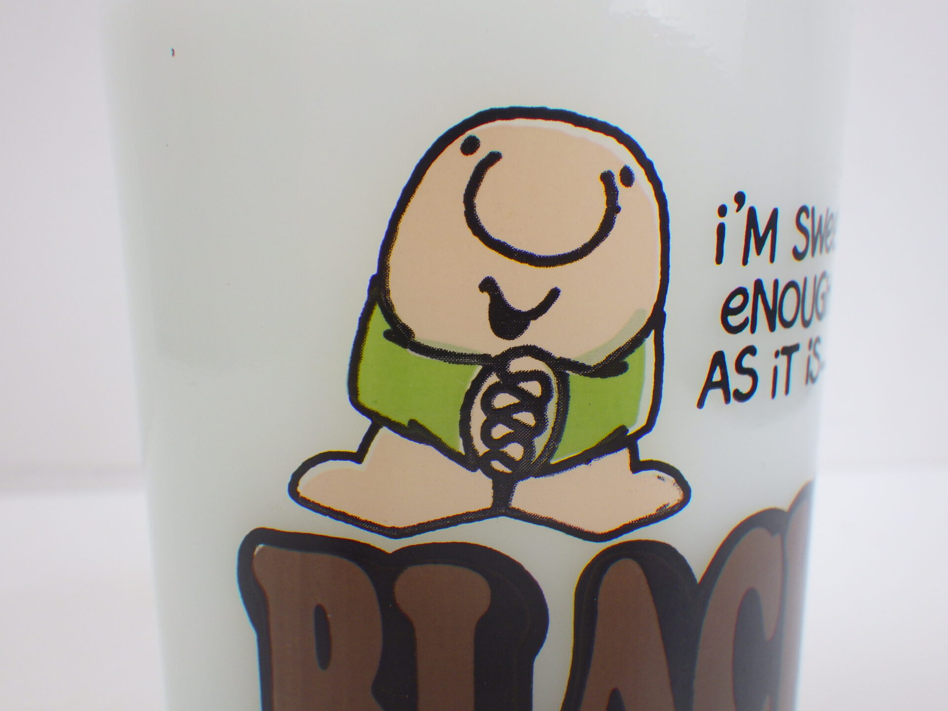 | アメリカで買い付けました。 1970年代に流行した、トム・ウィルソン作のアメリカの漫画のキャラクター「Ziggy」のマグです。 ファイヤーキングからは1979年に製造されました。 こちらのブラックの他に、シュガー、クリーム、クリーム&シュガーの全四種類があります。 お好みに合わせて選ぶのも良し、全部揃えるのも良しな可愛いマグです。 |