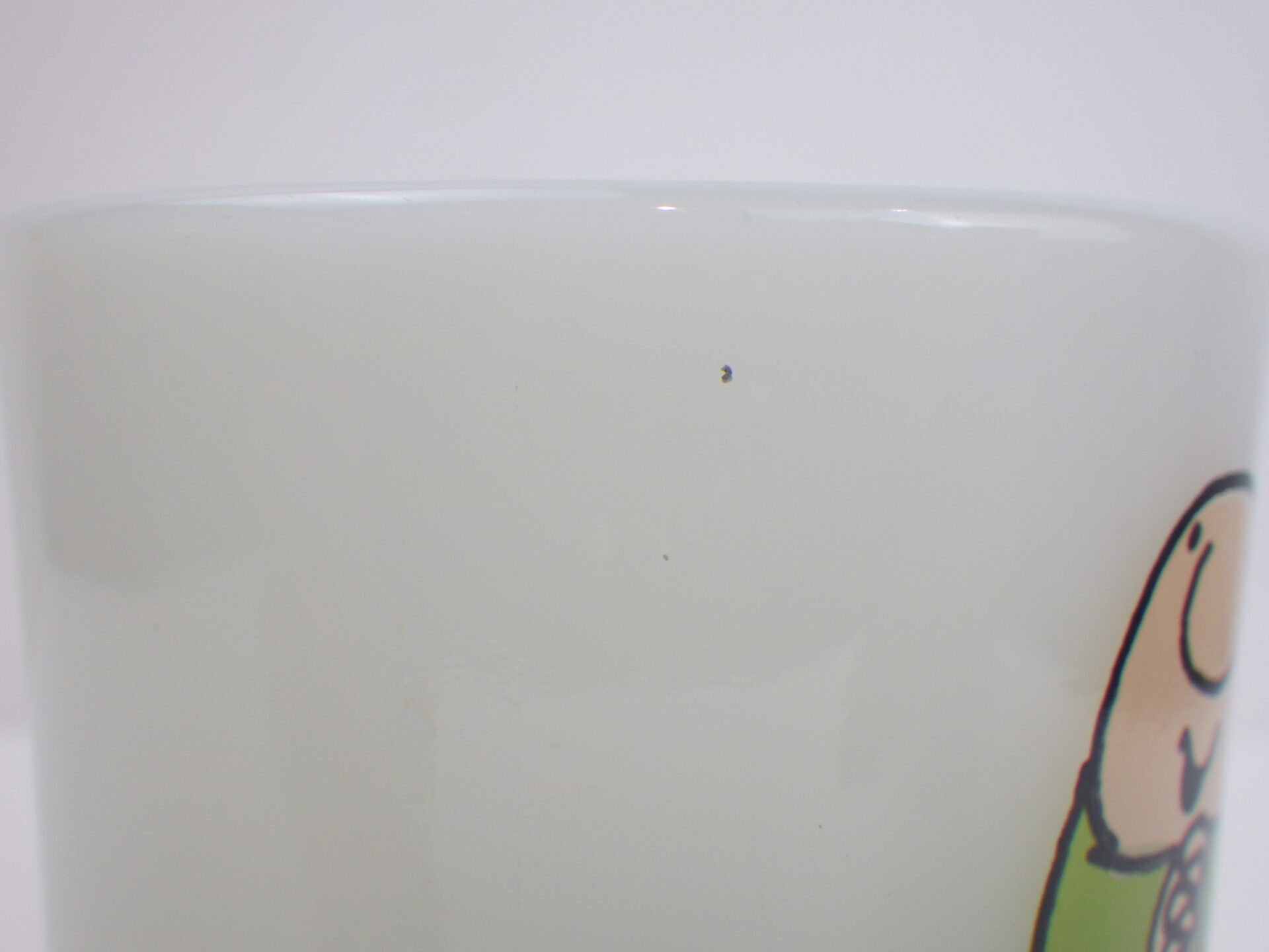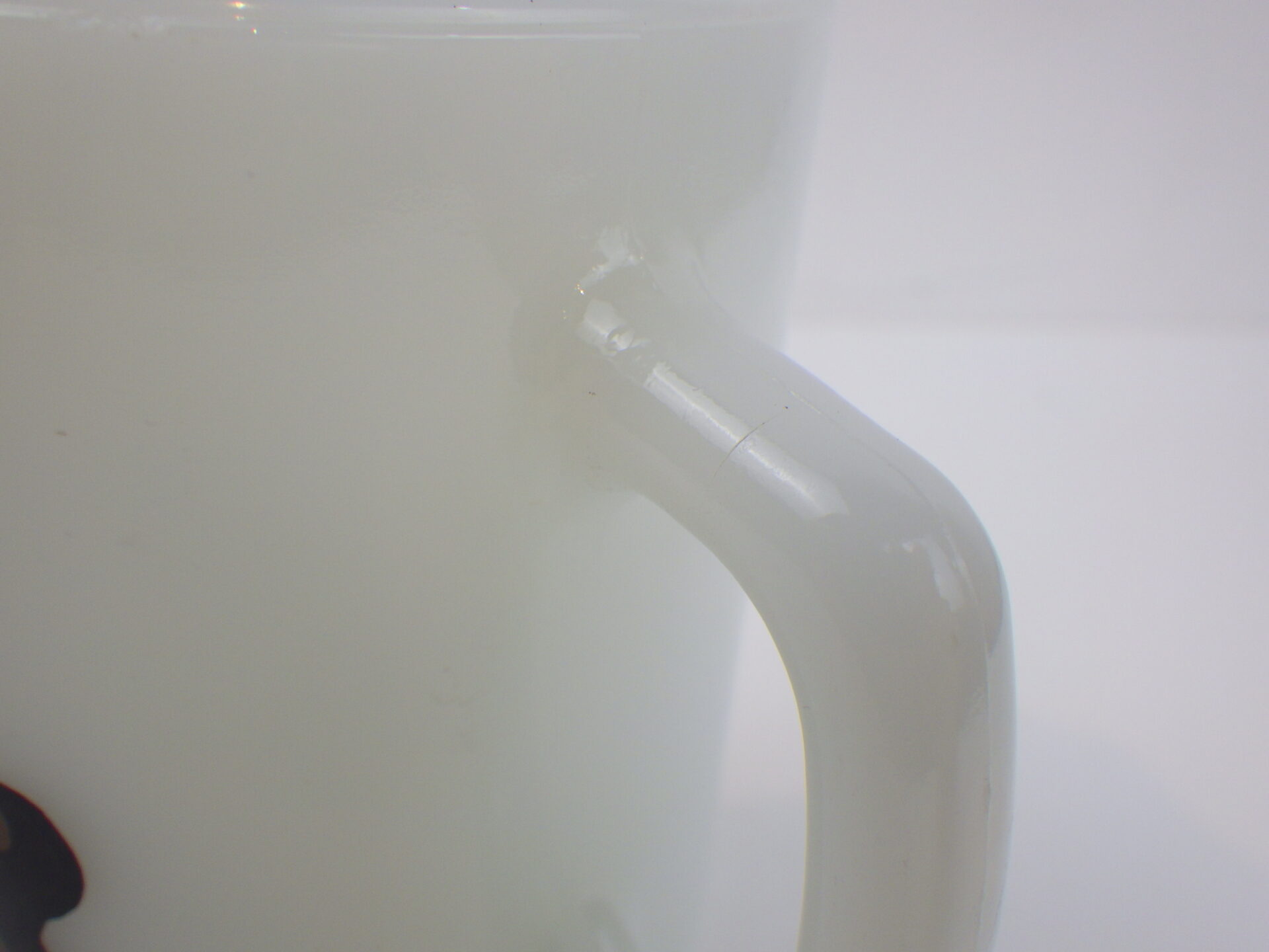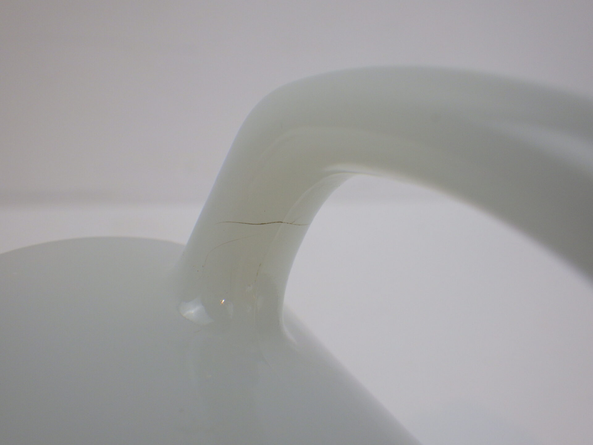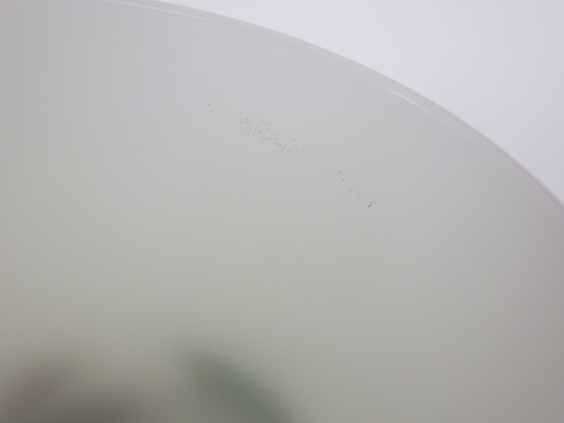 | condition | リム、ボトムにわずかな着色、スレがあります。 リムの縁に製造時よりのがたつきがあります。 製造時よりのホワイトスポット、劣化線、ヘアライン、ガラスのヨレがあります。 ハンドル上部に製造時よりの劣化線がありますが、ご使用に影響のない程度です。(写真でご確認下さい) |