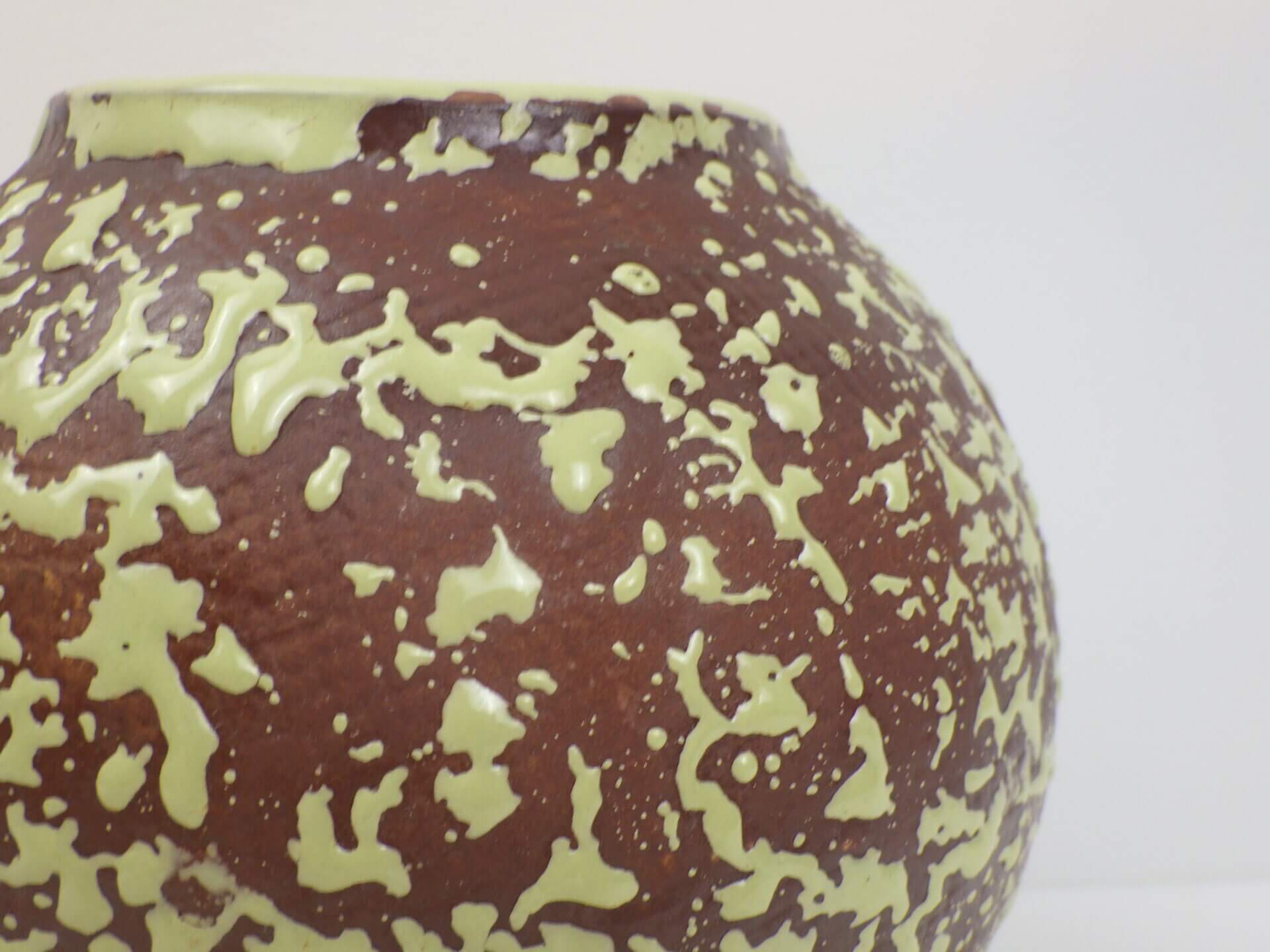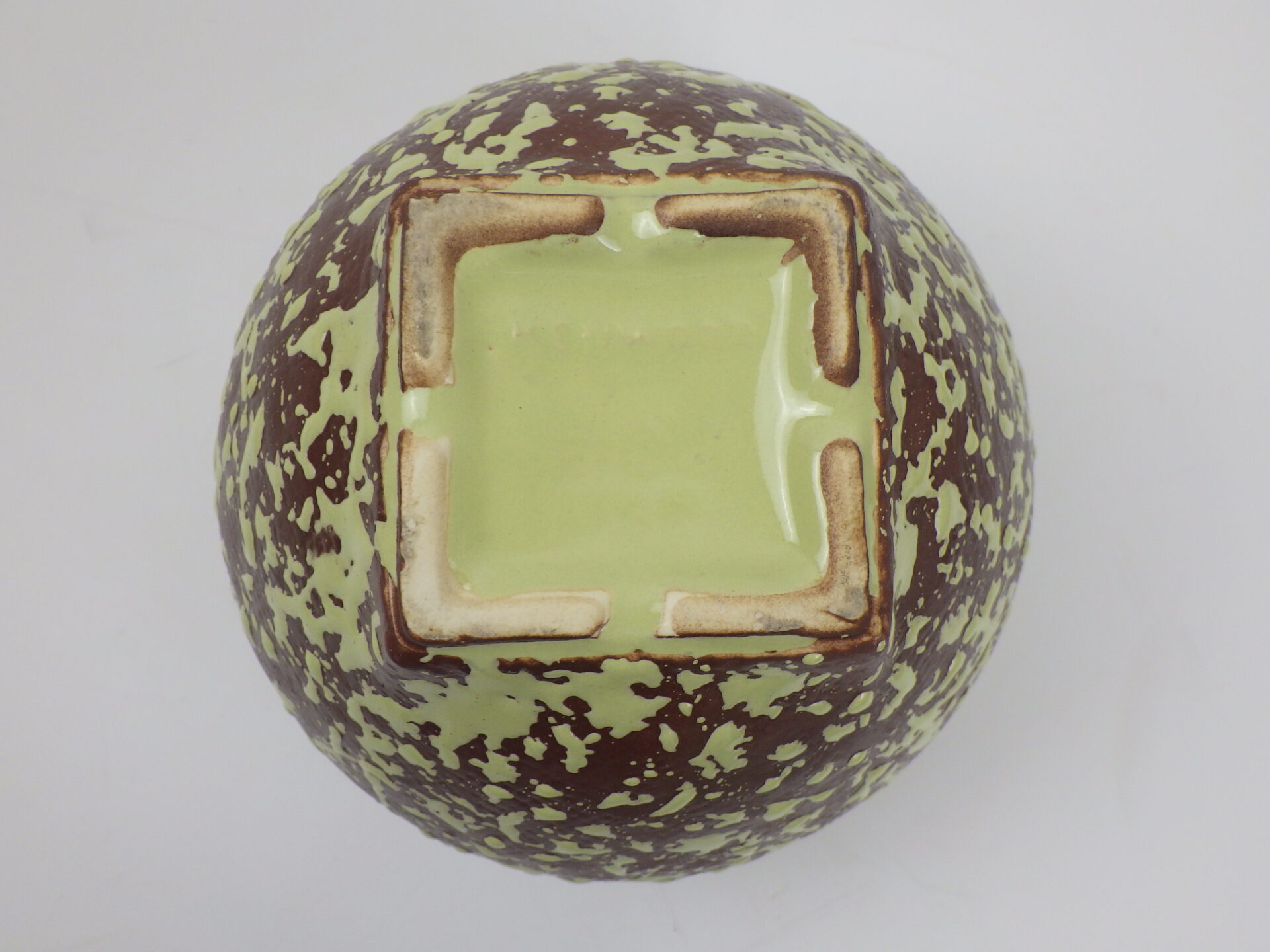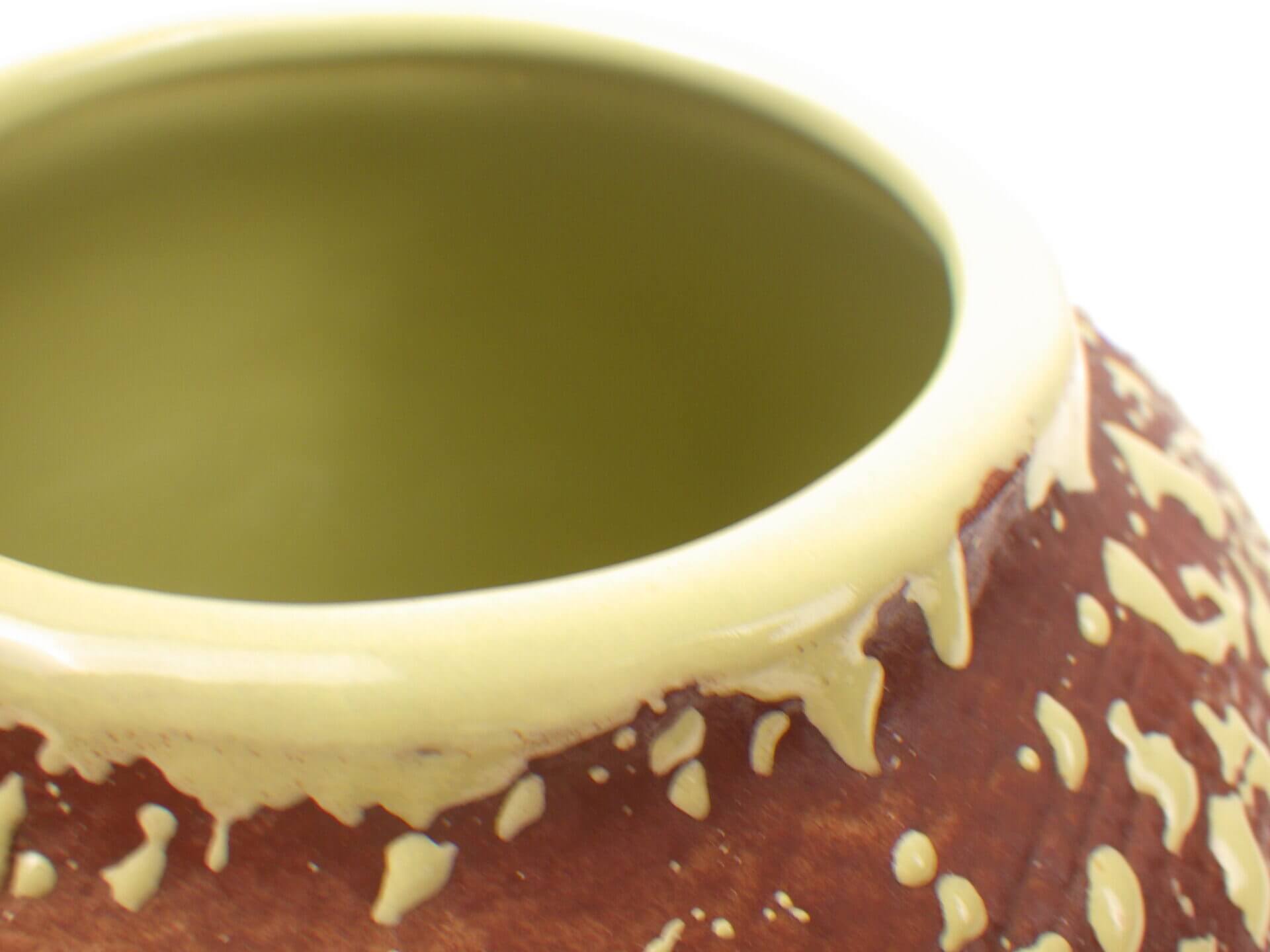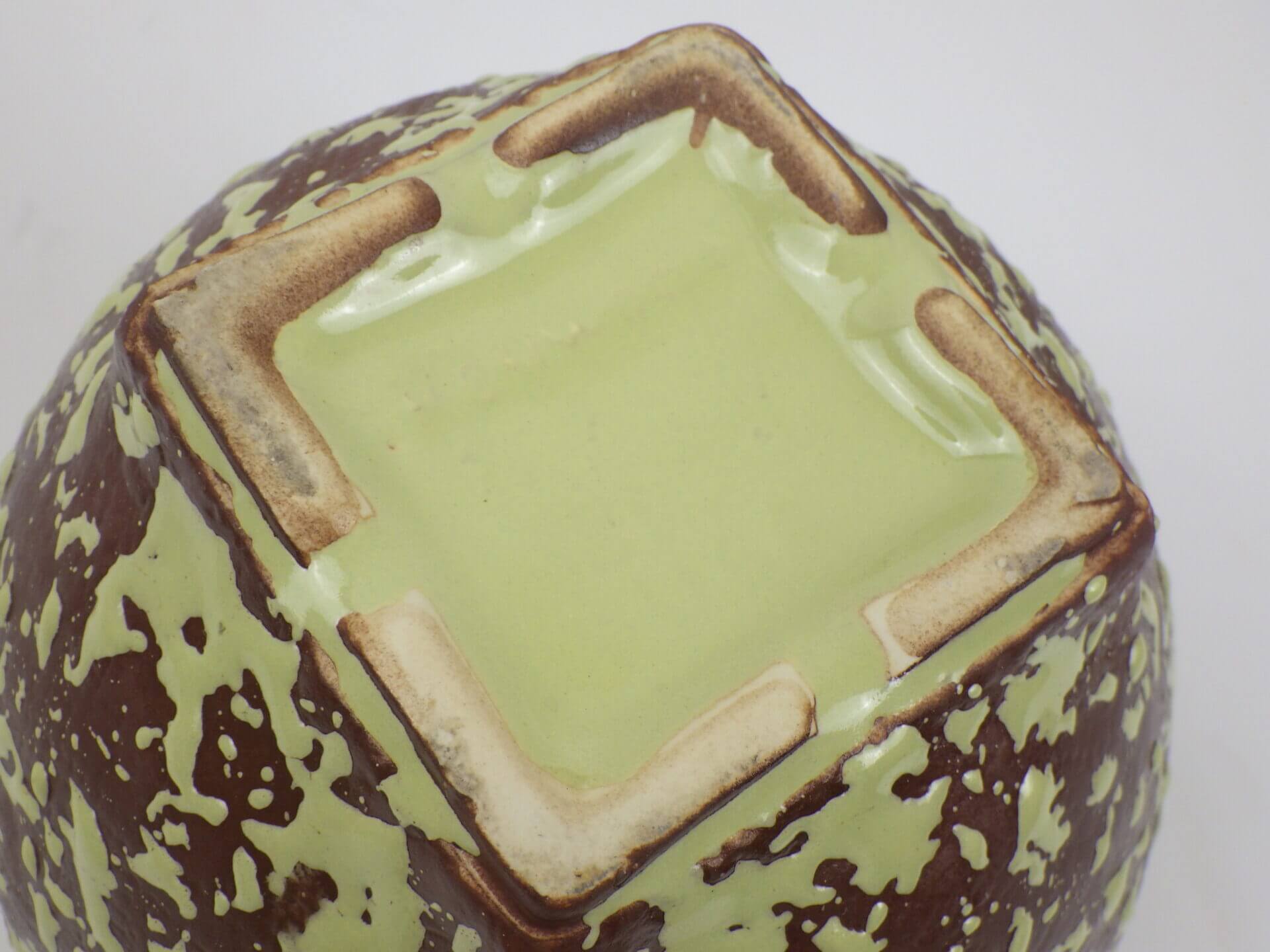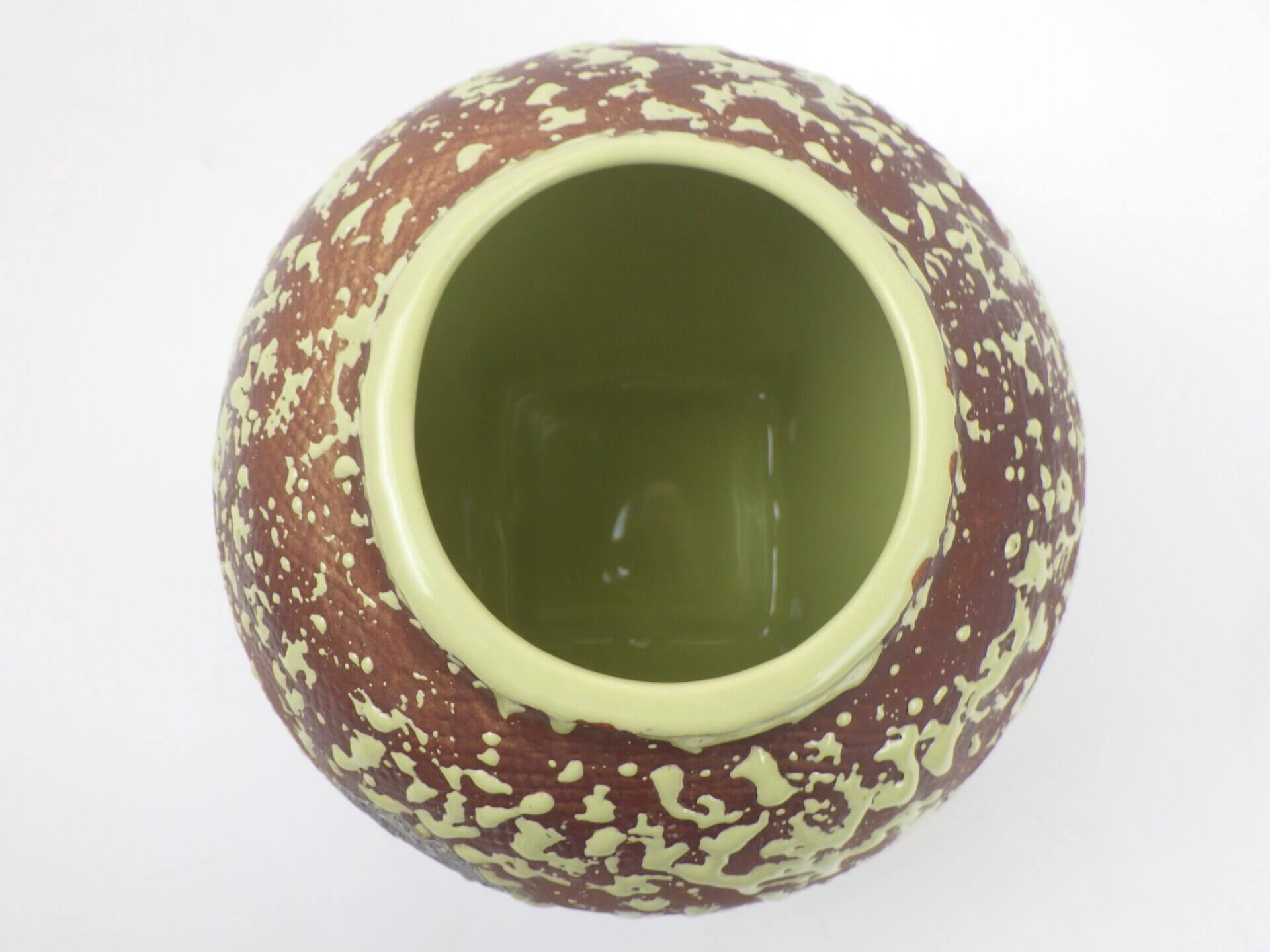 | アメリカで買い付けました。 Shawnee社のKENWOODと呼ばれるラインのフラワーベースです。 つるつるした部分とざらざらした部分の釉薬のコントラストが大変目を惹きます。 何だかお菓子みたいな可愛らしさもありますね。 落ち着いた淡いグリーンが内側にも施されているため、お花を生けていない時でもインテリアのアクセントとして活躍してくれそうです。 |