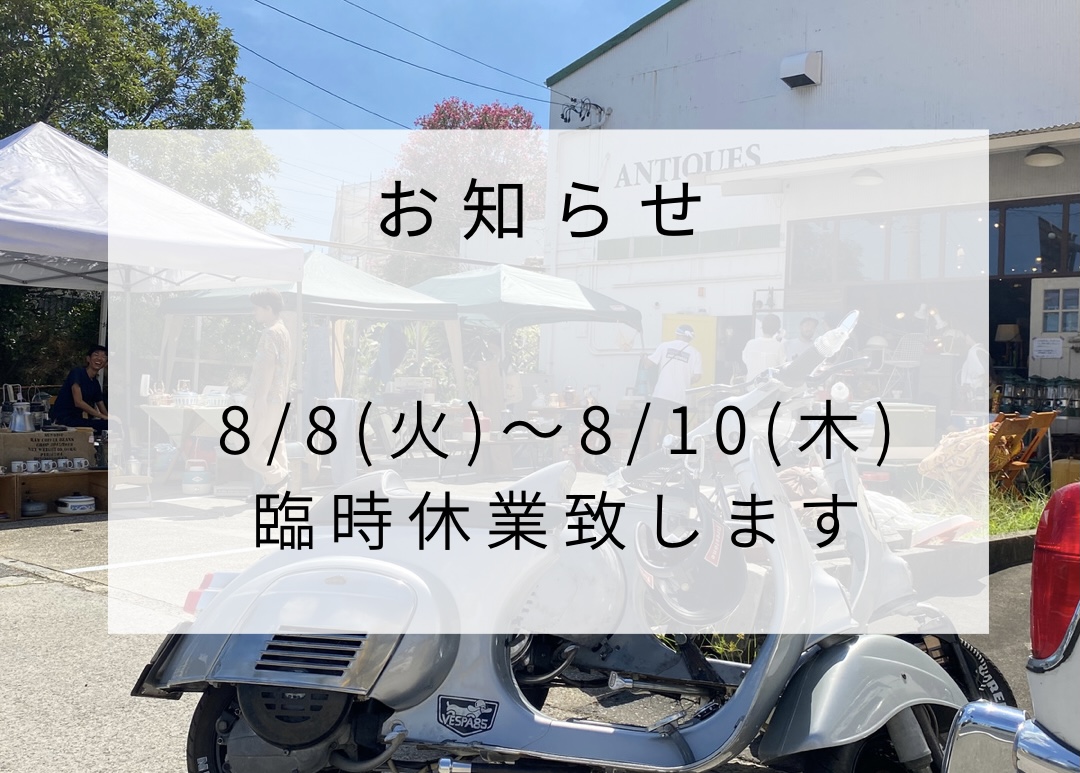 8/8(火)〜8/10(木)の3日間、臨時休業致します。